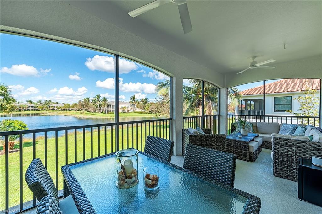 Soak in expansive, tranquil lake views from the comfort of your large, private screened lanai in this beautifully updated second-floor end-unit in Sonoma at Fiddler’s Creek. This light-filled, impeccably maintained residence offers three bedrooms, two full baths and a rare three-car tandem garage, providing ample space for bicycles, golf clubs, beach gear and more. Enjoy added privacy with no neighbors above or on one side, paired with serene surroundings and premium interior finishes. Hurricane-impact windows and doors offer peace of mind, while a smartly designed floor plan seamlessly blends comfort, functionality and style. Extensively updated, the home features new flooring in the main living areas, plush new carpeting in the bedrooms, custom closet systems for optimal storage and crown molding throughout. The gourmet kitchen showcases freshly painted white cabinetry with new hardware, granite countertops, a tile backsplash, recessed lighting and newer stainless steel appliances—including a natural gas range, microwave, dishwasher and refrigerator with icemaker. A sunny breakfast nook and elegant formal dining area offer flexible dining and entertaining options. The spacious living room is enhanced by wide sliding glass doors opening to the screened lanai, where new ceiling fans and a new screen enclosure invite outdoor relaxation in comfort. The luxurious primary suite captures calming lake views and offers private lanai access, a dual-sink granite vanity, full-width mirrors, soaking tub, separate walk-in shower with a new shower head and walk-in closet with custom built-ins. The two guest bedrooms share a beautifully appointed full bath with a shower-tub combo and updated fixtures. Additional upgrades include a newer washer and dryer, a 2021 HVAC system and an extra-long driveway accommodating up to six vehicles. Residents of Fiddler’s Creek enjoy world-class amenities at the award-winning, 24,000-square-foot club and spa, including fine and casual poolside dining, a full-service fitness center with personal training and group classes, resort-style pools with waterfalls and slides, spa services, sauna, steam room, active tennis and pickleball programs, bocce, and a vibrant calendar of social events. Exciting renovations to the club are scheduled for 2025. Optional memberships are available at The Tarpon Club for beach and marina access, and The Golf Club at Fiddler’s Creek, featuring a newly renovated course and clubhouse. Ideally near Publix, salons, urgent care and the executive airport, and just minutes from Marco Island and downtown Naples beaches, dining, art galleries, yoga and outdoor recreation. This is your extraordinary opportunity to live the resort lifestyle every day.