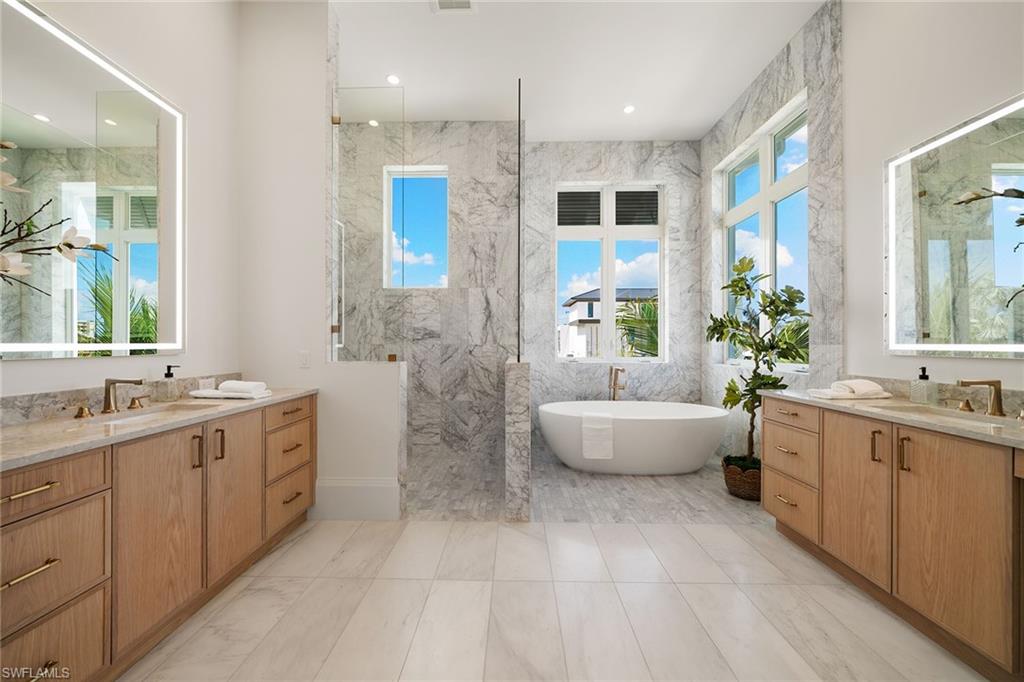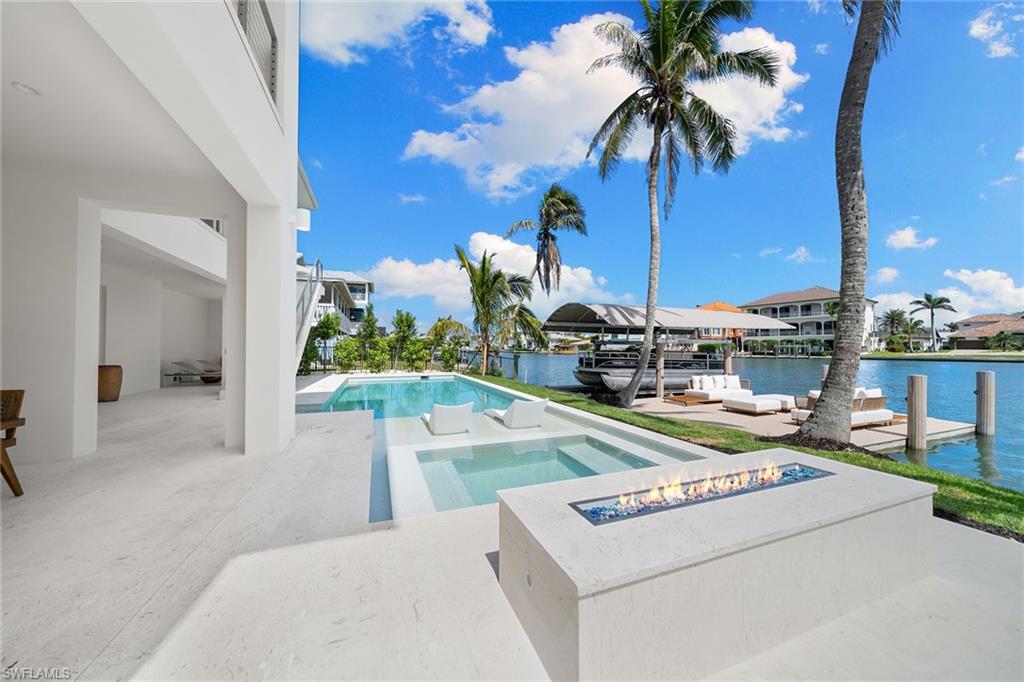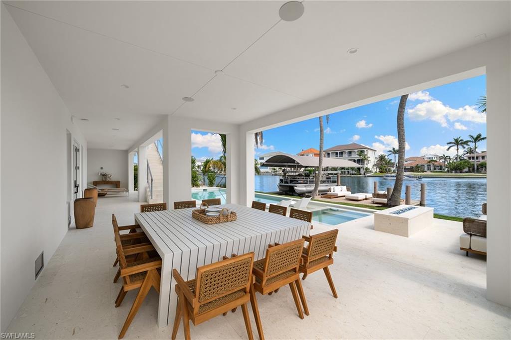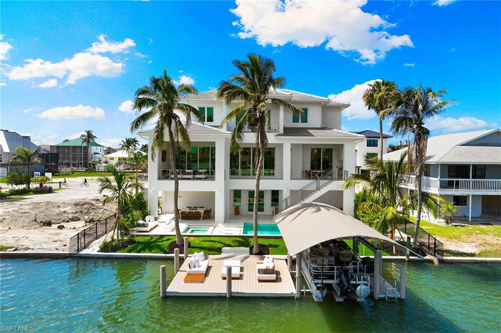 Panoramic bayfront living along Vanderbilt Beach. Positioned along the centerline of Conners Bay, this new construction estate-crafted by Milestone Development with interior selections by Tye Interior Design offers mile-long water views and refined living in one of Naples desirable coastal settings. The residence reflects a balance of timeless design and modern luxury. The main living level features 12-foot ceilings, custom ceiling treatments and wide-plank hardwood floors that frame sweeping views of the bay. A chef's kitchen anchors the space, highlighted by a quartzite waterfall island, professional-grade appliances, and a discreet butler's pantry designed with functionality and elegance in mind. Seamless transitions lead to nearly 500 square feet of covered outdoor living with a summer kitchen, fireplace and unobstructed bay views ideal for year-round alfresco entertaining. The primary suite is a private retreat, complete with a dedicated coffee bar and dual custom wardrobes. A separate study on the main floor offers versatile use as a library, office or media room. The third-floor loft provides an additional gathering area or private lounge for three guest en-suite bedrooms, all opening to a covered balcony with commanding water views. Additional features include a heated saltwater pool and spa, a four-plus-car garage, a recreation room and a newly constructed dock with boat lift. With direct access to the Gulf in just seven minutes by water, this is an exceptional opportunity to own a waterfront lifestyle residence distinguished by superior craftsmanship and design pedigree.