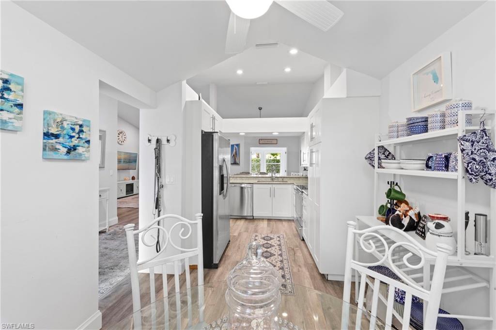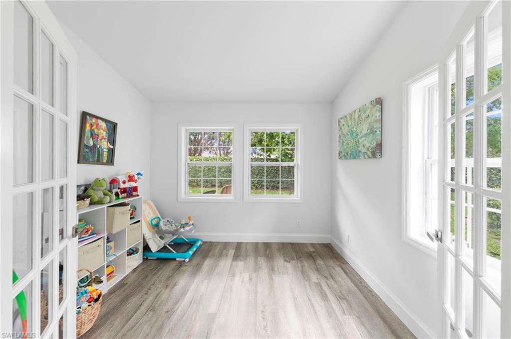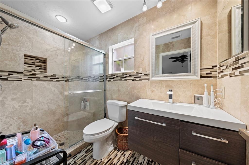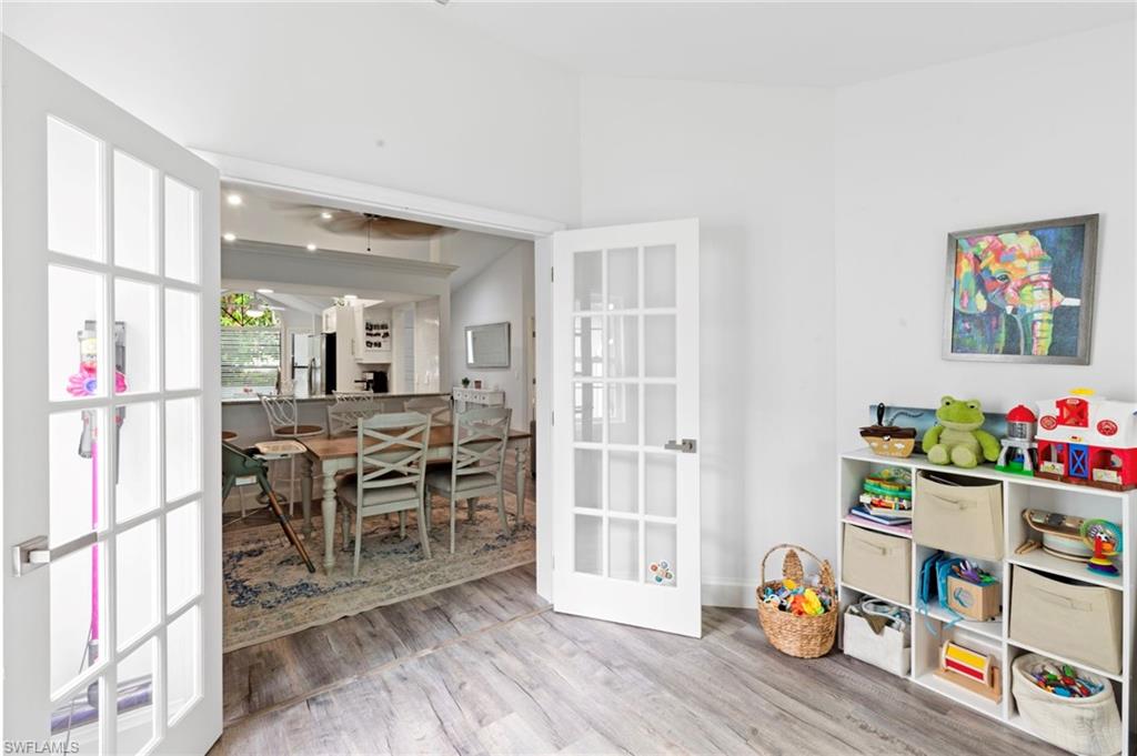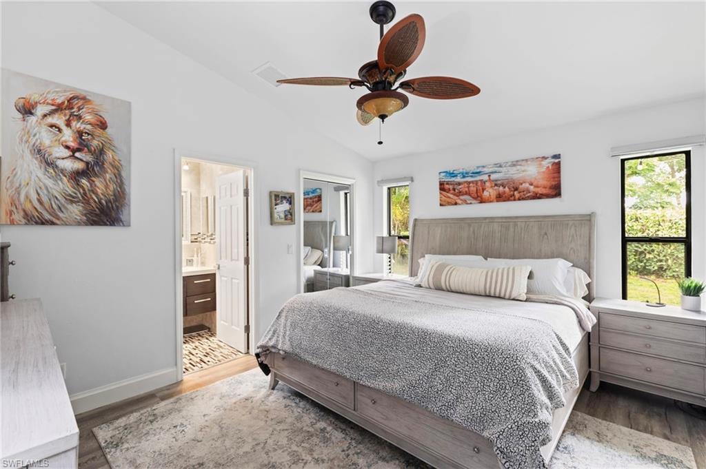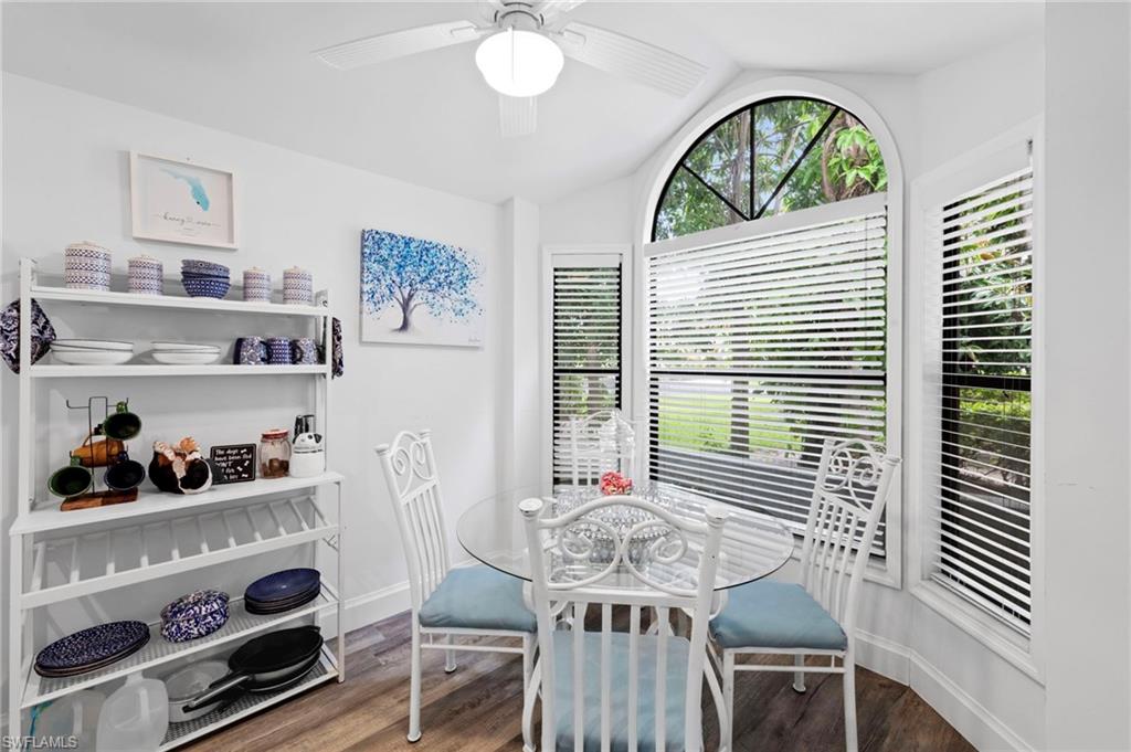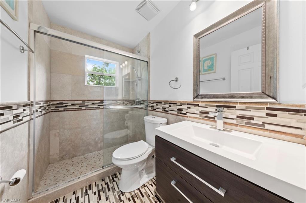 Discover this stunningly renovated 3-bedroom, 2-bath residence, complete with a DEN or private office space. This home features stylish vinyl flooring, along with marble finishes in the bathrooms. The master suite is a highlight, offering an en-suite bath and a generous walk-in closet. The modern eat-in kitchen is designed for culinary enthusiasts, equipped with stainless steel appliances, beautiful granite countertops, and a chic glass backsplash. Natural light floods the spacious living room through sliding glass doors that lead to an enclosed lanai, which boasts skylights for added brightness. Additional features include a sizable 2-car garage, 2023 AC, and an extended driveway for extra parking. Situated in a peaceful cul-de-sac within the Regent Park community in North Naples, this property provides convenient access to I-75 and comes with low HOA fees. Enjoy community perks like a swimming pool and tennis courts. Located in the esteemed Pelican Marsh school district, this home is also a short drive from numerous shopping, dining, and beach destinations. Seize the opportunity to make this exquisite home your own!