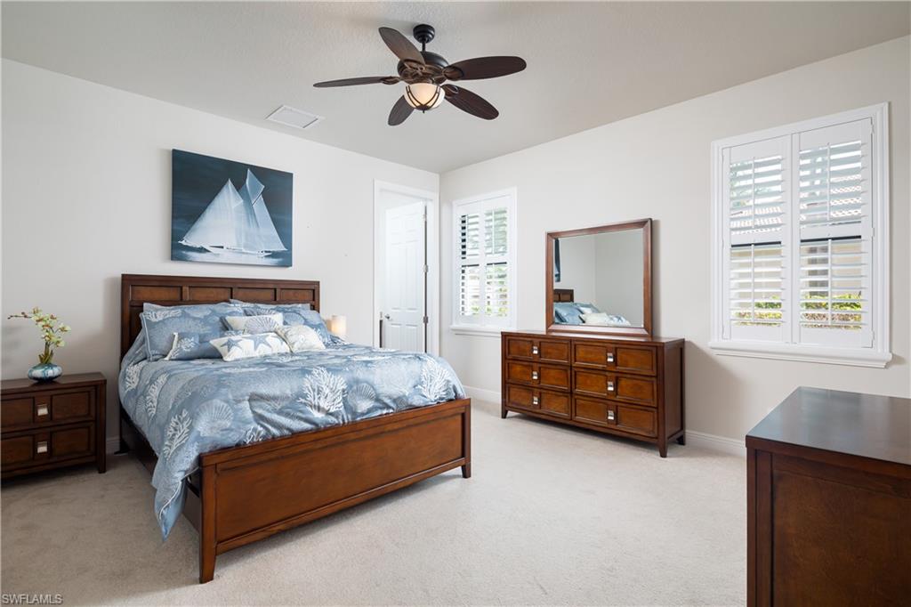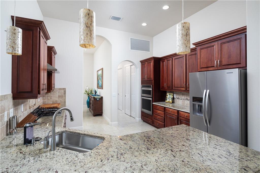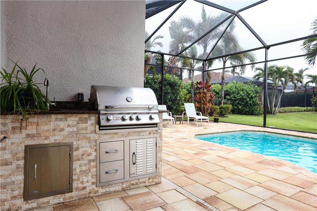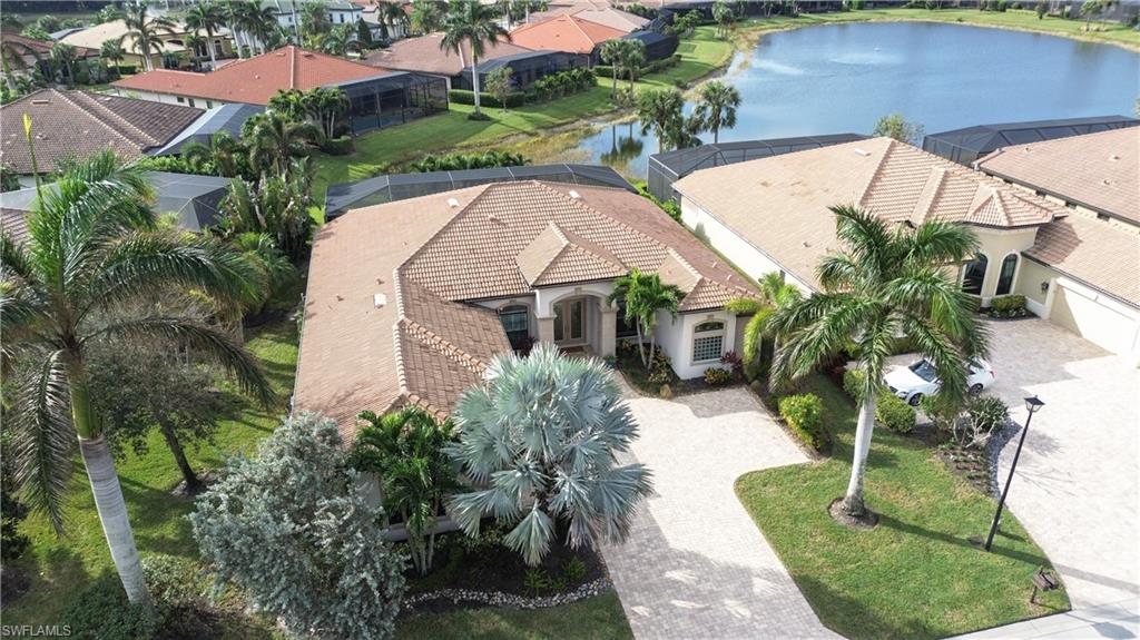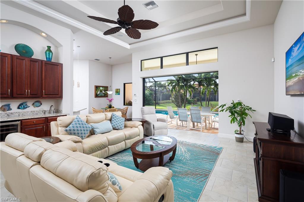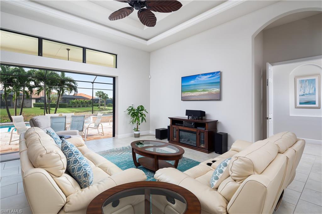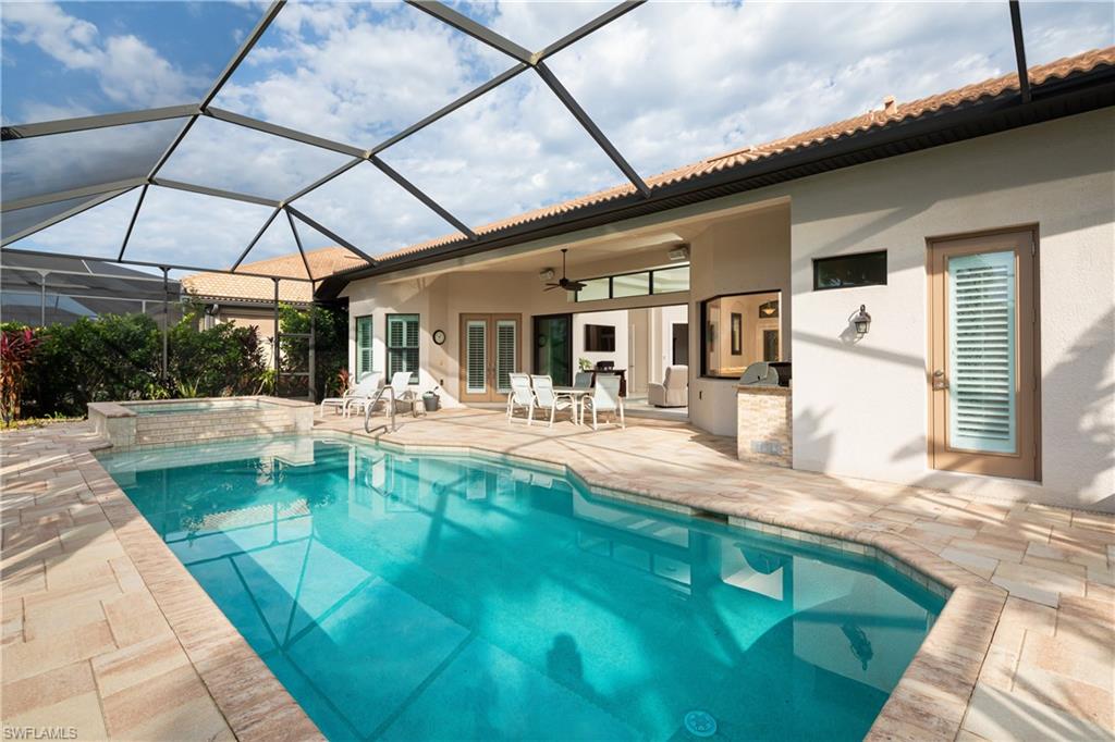 Welcome to 23083 Sanabria Loop, a beautiful residence nestled within the Bonita Lakes gated community. This 2722 sq ft, luxurious 3-bedroom, 3-bathroom home, complete with a den, is a true gem, built with high-quality construction in 2014. With only one owner and being offered turn-key, this home is perfect for a seamless transition into your new Florida lifestyle. As you enter, you’ll be captivated by the soaring 12-foot recessed tray ceilings and an abundance of natural light flooding through the rated impact windows and doors. This south-facing home boasts stunning views of the serene lake, creating an idyllic backdrop for outdoor living. The property features a whole-house automatic generator system and a spacious three-car garage/ workshop with AC. The interior is adorned with neutral coastal colors, tile flooring and granite countertops, combining style with functionality. The massive primary suite features lanai access, dual walk-in closets, and an expansive en suite bath. Enjoy the spa soaker tub, walk in tile shower and private vanity spaces. With a split floor plan, guests will have space and privacy. The hall bath offers pool access with an exterior door. The heart of this home is the stunning outdoor oasis, featuring a heated pool complete with beautiful lighting, a fountain water feature, and a shelf for those sun-soaked afternoons. Enjoy entertaining or unwinding in the expansive screened-in lanai, equipped with an outdoor kitchen and surrounded by lush tropical landscaping. Bonita Lakes offers wonderful amenities, including a community pool and fitness center, along with the peace of mind of a gate attendant for added security. Conveniently located just 30 minutes from Fort Myers Airport and 10 miles from a local hospital with ER, shops and restaurants, this home provides easy access to everything you need. Plus, you’re only 20 miles from the beautiful beaches of the Gulf Coast. Don’t miss your chance to own this exquisite property for $965,000 - where luxury meets comfort in the heart of Bonita Springs!