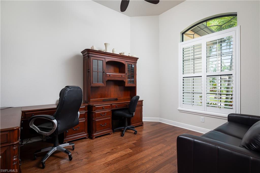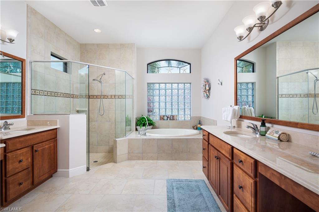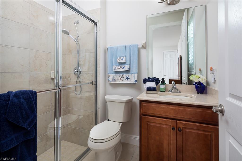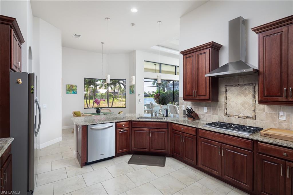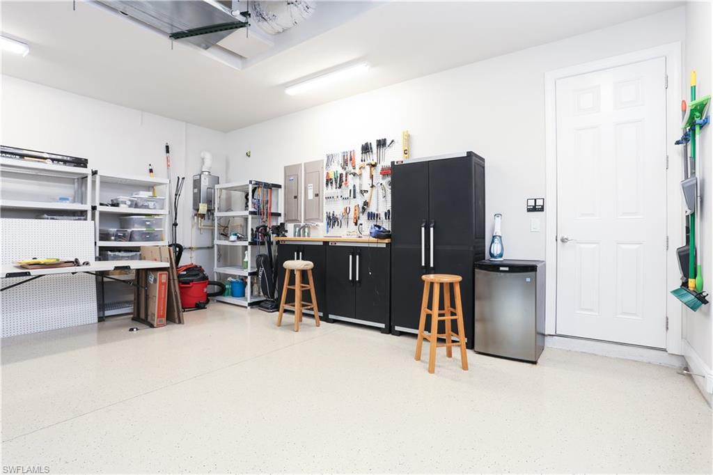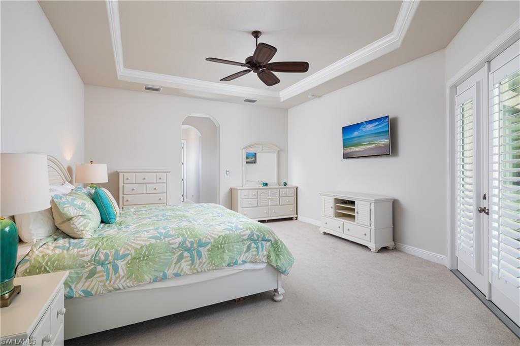 Welcome to 23083 Sanabria Loop, a beautiful residence nestled within the Bonita Lakes gated community. This 2722 sq ft, luxurious 3-bedroom, 3-bathroom home, complete with a den, is a true gem, built with high-quality construction in 2014. With only one owner and being offered turn-key, this home is perfect for a seamless transition into your new Florida lifestyle. As you enter, you’ll be captivated by the soaring 12-foot recessed tray ceilings and an abundance of natural light flooding through the rated impact windows and doors. This south-facing home boasts stunning views of the serene lake, creating an idyllic backdrop for outdoor living. The property features a whole-house automatic generator system and a spacious three-car garage/ workshop with AC. The interior is adorned with neutral coastal colors, tile flooring and granite countertops, combining style with functionality. The massive primary suite features lanai access, dual walk-in closets, and an expansive en suite bath. Enjoy the spa soaker tub, walk in tile shower and private vanity spaces. With a split floor plan, guests will have space and privacy. The hall bath offers pool access with an exterior door. The heart of this home is the stunning outdoor oasis, featuring a heated pool complete with beautiful lighting, a fountain water feature, and a shelf for those sun-soaked afternoons. Enjoy entertaining or unwinding in the expansive screened-in lanai, equipped with an outdoor kitchen and surrounded by lush tropical landscaping. Bonita Lakes offers wonderful amenities, including a community pool and fitness center, along with the peace of mind of a gate attendant for added security. Conveniently located just 30 minutes from Fort Myers Airport and 10 miles from a local hospital with ER, shops and restaurants, this home provides easy access to everything you need. Plus, you’re only 20 miles from the beautiful beaches of the Gulf Coast. Don’t miss your chance to own this exquisite property for $965,000 - where luxury meets comfort in the heart of Bonita Springs!