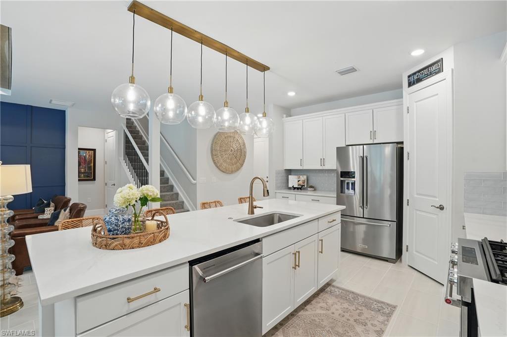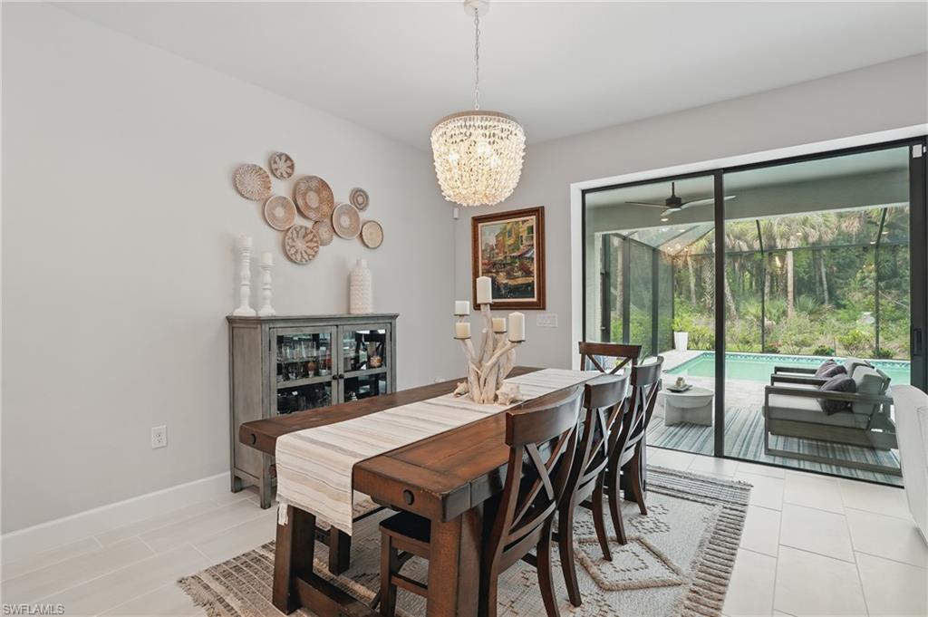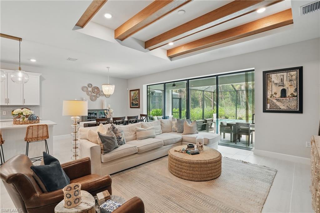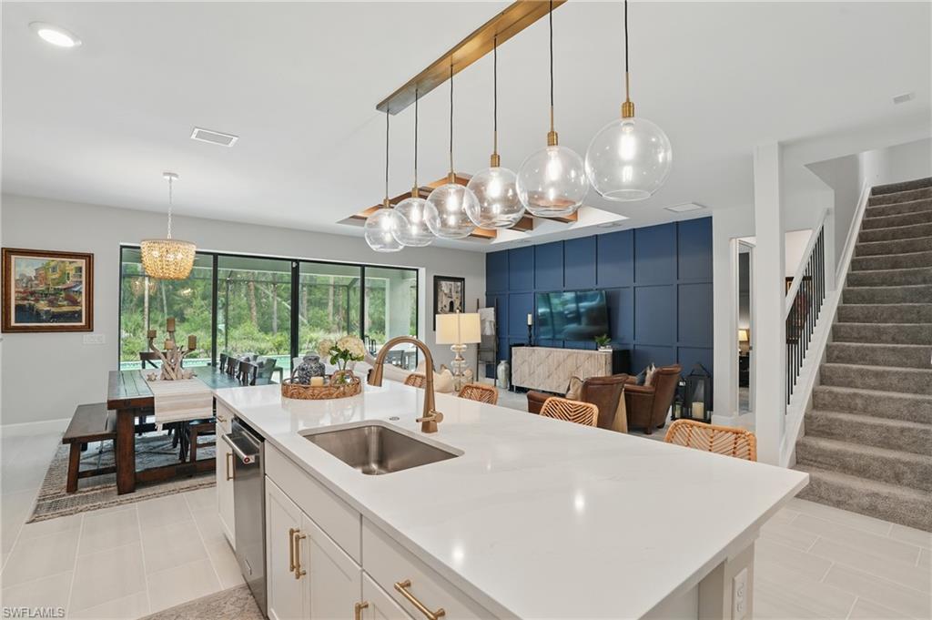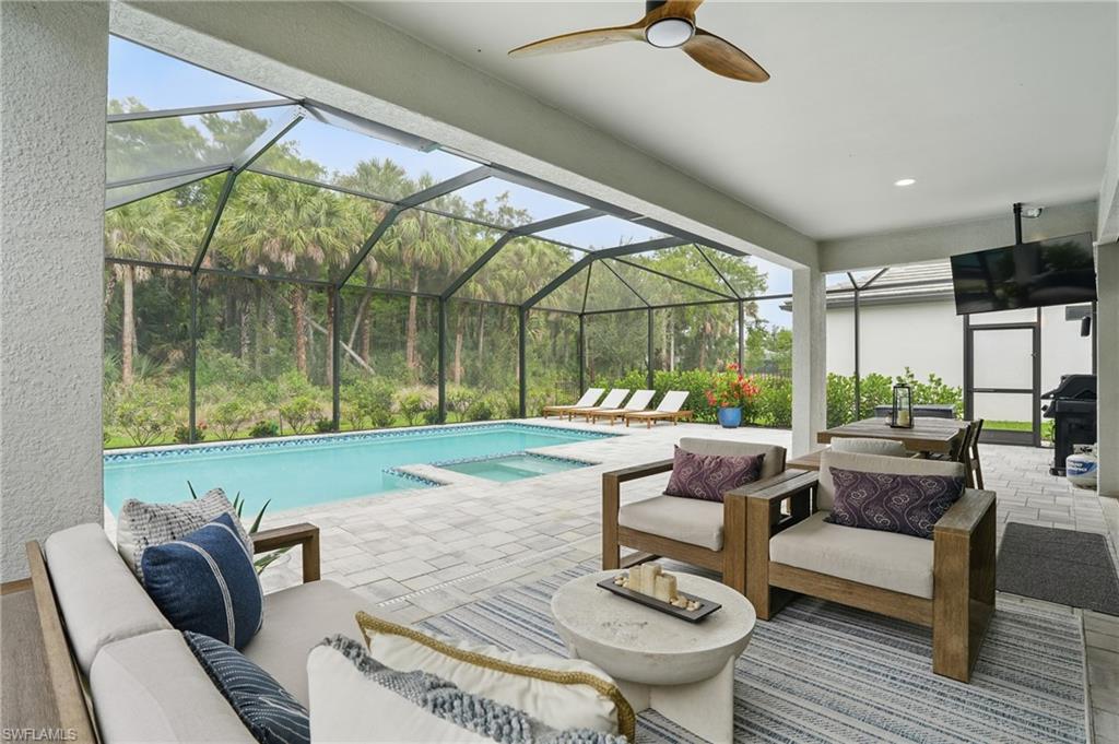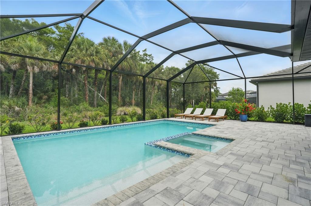 Welcome to this beautifully designed 4-bedroom, 3.5-bathroom + den home in the desirable gated community of Ventana Pointe, ideally located in North Naples with no CDD fees. Built in 2022, this residence offers the feel of brand-new construction—without the wait—and features over $150,000 in thoughtful upgrades. Situated on a premium preserve lot with 100 yards of protected land behind it, this two-story home offers complete privacy and serene natural views. The smart floor plan includes a main-floor primary suite for everyday convenience, a versatile den or home office, and an open-concept living area accented by tray ceilings, a welcoming foyer, and elegant finishes throughout. Upstairs, a spacious loft provides flexible living—ideal for a playroom, media room, or guest retreat. At the heart of the home is a stunning chef’s kitchen, complete with a natural gas stove (Teco line), a large central island, designer backsplash, modern rectangular tile flooring, updated lighting and hardware, and custom feature walls, ceiling beams, and staircase upgrades. Step outside to your private oasis: an oversized screened-in lanai with a saltwater heated pool and spa, fully controlled by the OmniLogic Smart App. The professionally landscaped backyard was completed in 2023 with lush greenery and new sod—part of a $125,000 outdoor upgrade package—and features no rear neighbors for ultimate tranquility. Located just minutes from top-rated schools, world-class shopping, dining, entertainment, and the white-sand beaches of Southwest Florida, this home delivers the perfect blend of luxury, location, and lifestyle.