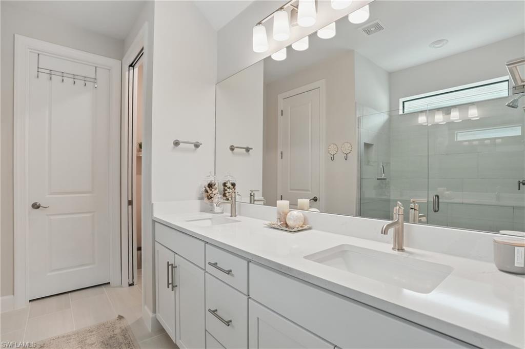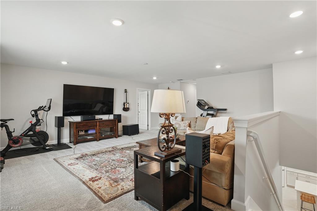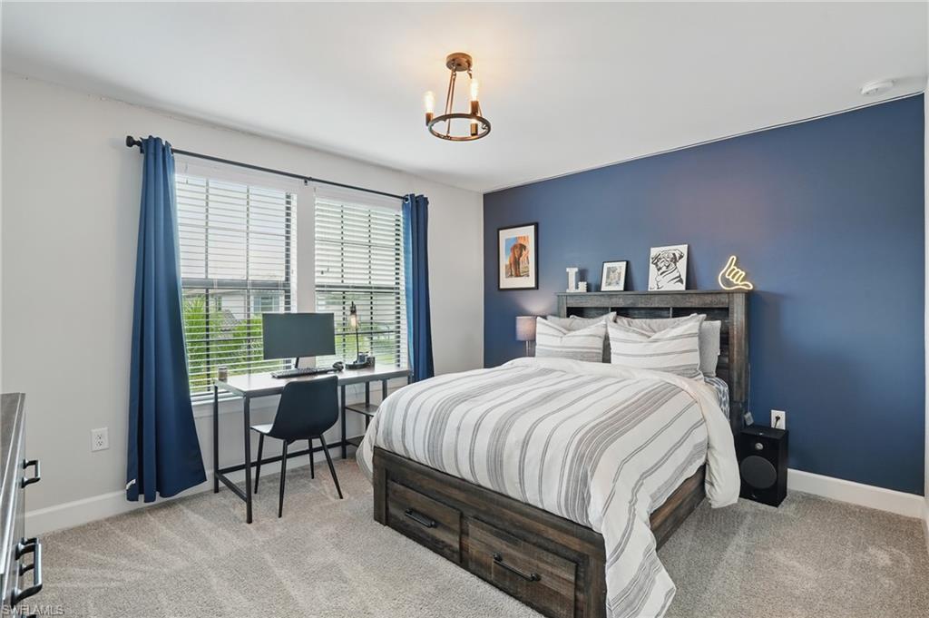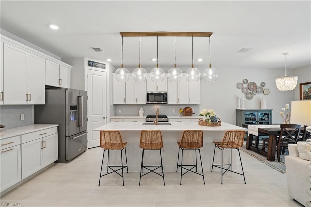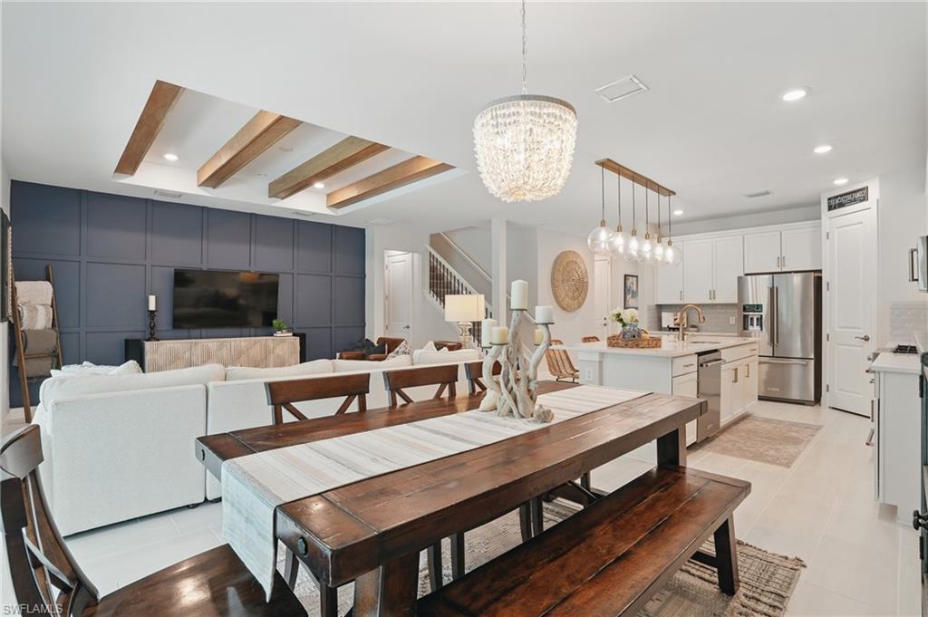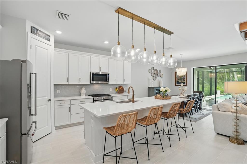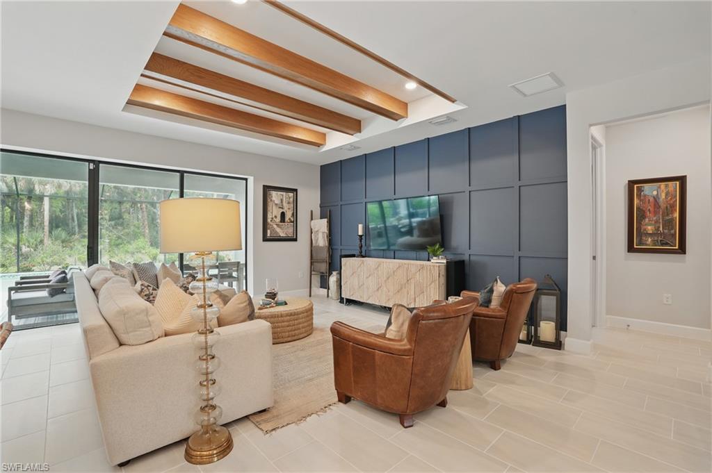 Welcome to this beautifully designed 4-bedroom, 3.5-bathroom + den home in the desirable gated community of Ventana Pointe, ideally located in North Naples with no CDD fees. Built in 2022, this residence offers the feel of brand-new construction—without the wait—and features over $150,000 in thoughtful upgrades. Situated on a premium preserve lot with 100 yards of protected land behind it, this two-story home offers complete privacy and serene natural views. The smart floor plan includes a main-floor primary suite for everyday convenience, a versatile den or home office, and an open-concept living area accented by tray ceilings, a welcoming foyer, and elegant finishes throughout. Upstairs, a spacious loft provides flexible living—ideal for a playroom, media room, or guest retreat. At the heart of the home is a stunning chef’s kitchen, complete with a natural gas stove (Teco line), a large central island, designer backsplash, modern rectangular tile flooring, updated lighting and hardware, and custom feature walls, ceiling beams, and staircase upgrades. Step outside to your private oasis: an oversized screened-in lanai with a saltwater heated pool and spa, fully controlled by the OmniLogic Smart App. The professionally landscaped backyard was completed in 2023 with lush greenery and new sod—part of a $125,000 outdoor upgrade package—and features no rear neighbors for ultimate tranquility. Located just minutes from top-rated schools, world-class shopping, dining, entertainment, and the white-sand beaches of Southwest Florida, this home delivers the perfect blend of luxury, location, and lifestyle.
