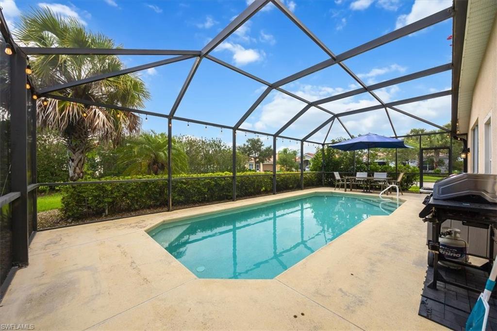 Beautiful remolded pool home in Ave Maria! Durham floor plan with 4 bedrooms and 2 bathrooms. This amazing home in Emerson Park features an upgraded large kitchen with top of the line stainless steel appliances, granite counter tops, plenty of cabinets for storage, pantry, updated fixtures, tile flooring throughout, private screened-in, heated pool, a large backyard, and low HOA fees! Custom landscaping on a corner lot. The community offers multiple parks, sports fields, basketball, tennis, pickleball courts, grocery store, restaurants, bars, gas station, car wash, dog park, run/bike trails, town fitness center, and more. Residents also have access to the Ave Maria Water Park for a nominal fee. So much to see, so much to do!