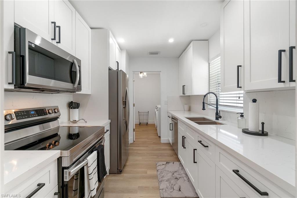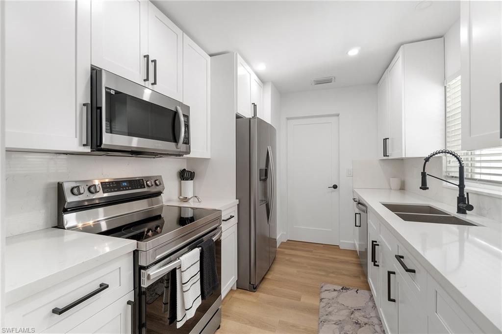 The address 4126 Belair Lane #C6 is a diamond among pearls. Close to shops, restaurants and tree-lined streets that all lead to the beach. Furnished as seen and ready to move in. This two-bedroom, two-bath condominium in Park Shore, west of U.S. 41 is nicely updated. The kitchen and baths have updated cabinets, quartz counters and kitchen appliances are all new. The in-house laundry room with full-size washer and dryer offers a generous amount of additional storage. The design is fresh, neutral and comfortable. Enjoy your lanai year-round and when you are not home, the electric hurricane shutters offer security and protection. This intimate 55-plus community of just 22 residences includes one covered assigned parking spot, community swimming pool and grilling area. Residents have the option to join the private, members-only Park Shore Beach with parking, baths and outdoor showers. The Naples lifestyle is all near your front door.