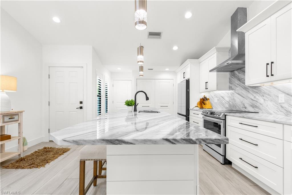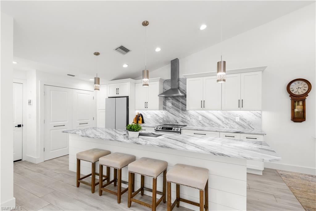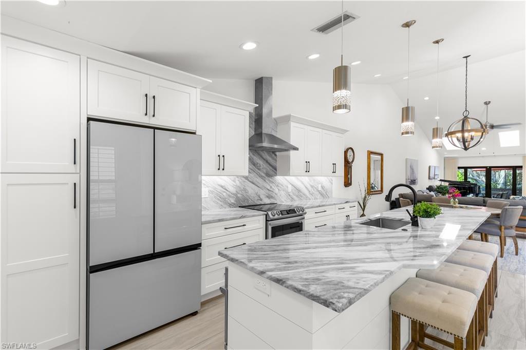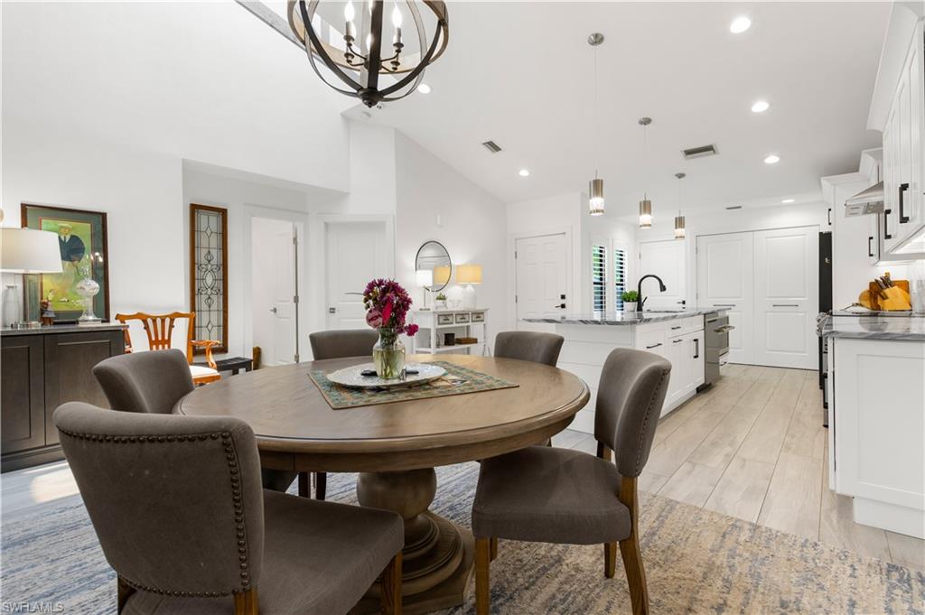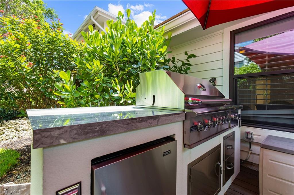 Step into the ultimate Naples lifestyle with this beautifully upgraded 2 bed, 2 bath villa located just two blocks from the private Park Shore Beach. Enjoy sun-soaked days, postcard-worthy sunsets, and peaceful walks along pristine white sand—all just steps from your door. Only one block away, Venetian Village offers world-class dining and boutique shopping in a stunning waterfront setting. Tucked in a pet-friendly community, this open-concept villa blends laid-back tropical style with modern upgrades and everyday functionality. Post-Hurricane Ian renovations brought the opportunity to reimagine the space—now showcasing a brand-new outdoor kitchen with built-in grill and refrigeration, a serene Zen-inspired entry with custom stonework, and a smartly designed flex laundry/butler’s pantry to keep your kitchen clutter-free. Enjoy soaring vaulted ceilings with wood architectural accents and skylights, an improved kitchen layout with custom cabinetry, abundant storage, and striking natural stone countertops with a matching designer backsplash. Impact windows and doors, a full home security system, custom closets, and a sleek dry bar enhance both convenience and comfort. This villa is more than just a home—it’s your gateway to the best of coastal Naples. Don’t miss your chance to own a slice of Park Shore paradise.