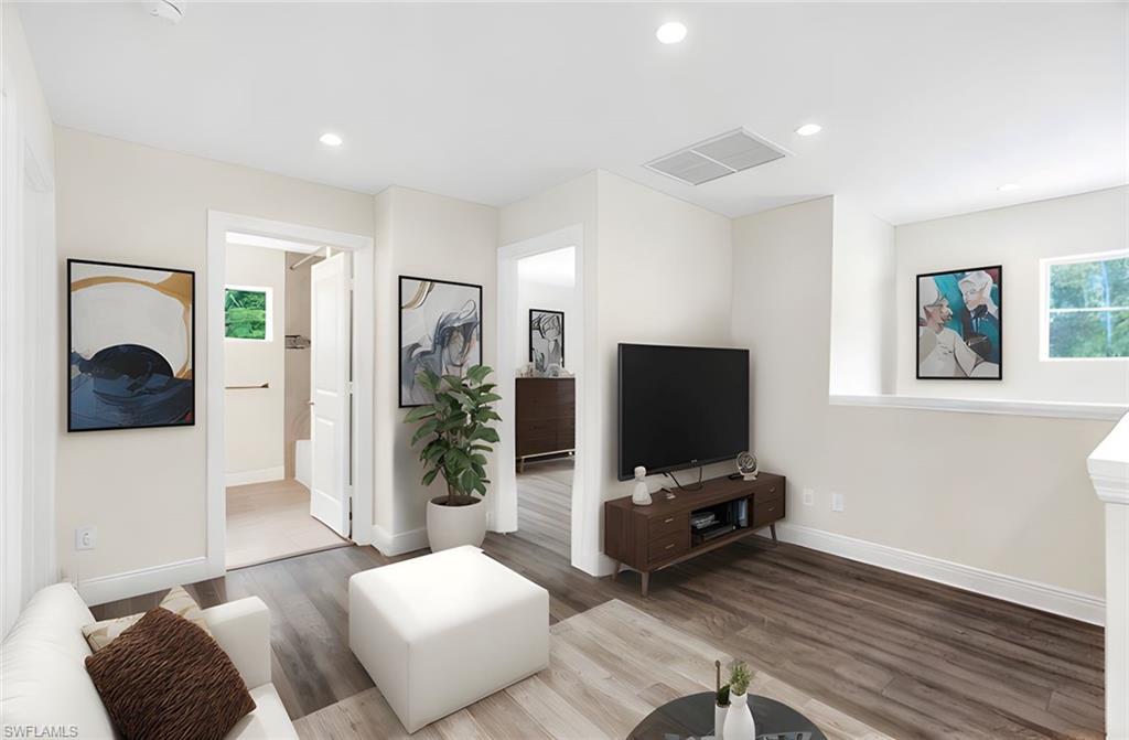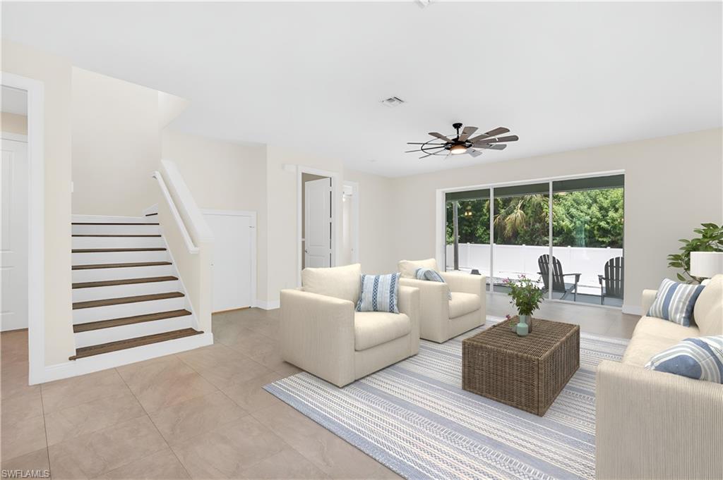 Nestled in the dynamic and ever-evolving Bayshore Arts District, this meticulously crafted two-story home offers the perfect blend of style, comfort, and investment potential. Built in 2019, this 4-bedroom, 2.5-bath residence spans 2,104 square feet of thoughtfully designed living space.The spacious primary suite is conveniently located on the first floor, offering ample closet space, privacy and ease of access, while three additional bedrooms and a versatile loft occupy the second floor—ideal for families, guests, or a home office setup. The Chef-Inspired Kitchen is Equipped with quartz countertops, 48" solid wood cabinetry, stainless steel appliances, and a spacious breakfast bar that seamlessly connects to the great room—perfect for entertaining. Step outside to the covered lanai and enjoy a fully fenced yard that backs onto a serene nature preserve owned by the Naples Botanical Garden, ensuring ultimate privacy and room for a pool. With no HOA fees and flexibility for short-term rentals, this property is well-suited for a variety of lifestyles, whether you're searching for a full-time residence, a seasonal retreat, or a high-performing rental opportunity. Located just minutes from downtown Naples, fabulous dining, entertainment, shopping, and the beautiful Gulf beaches, this home places you at the center of one of Naples' most exciting and up-and-coming neighborhoods.