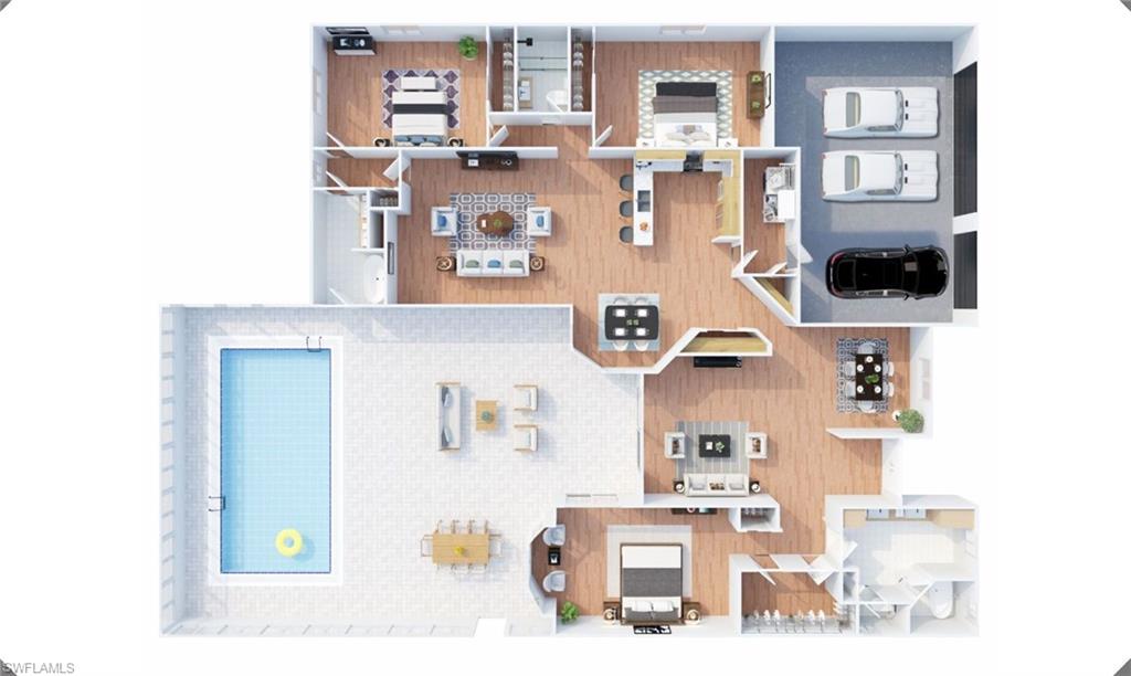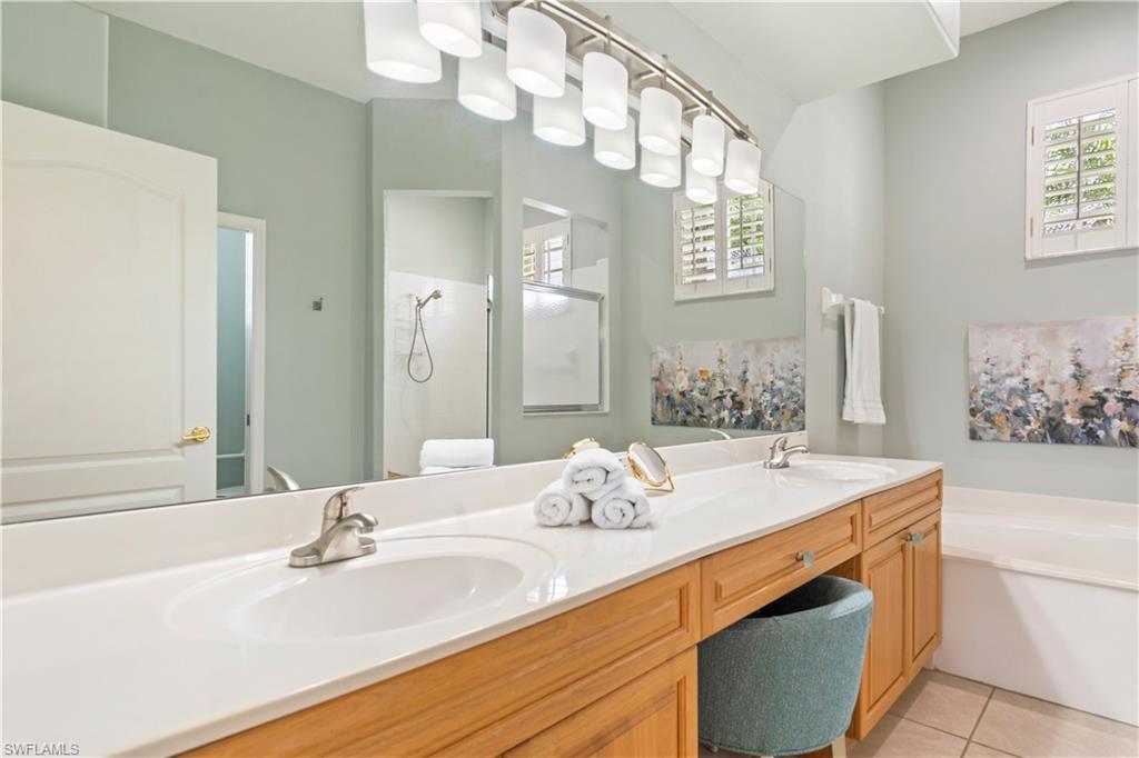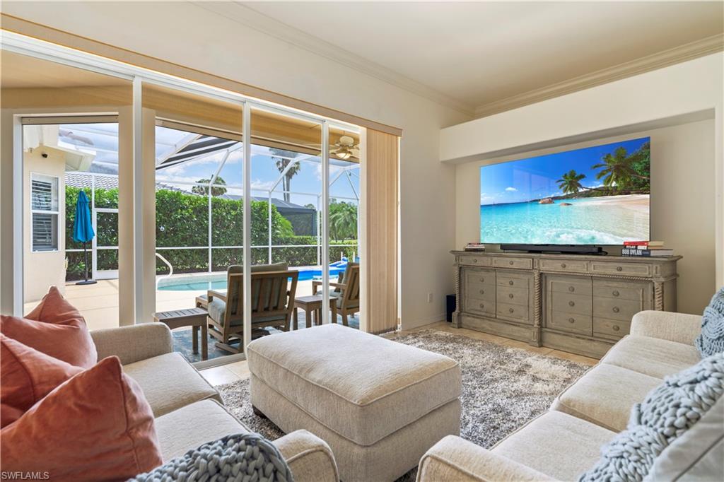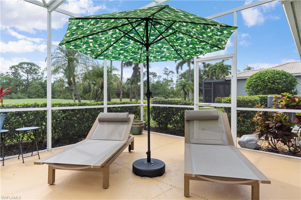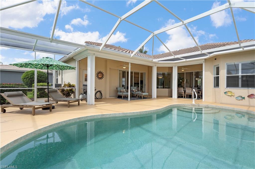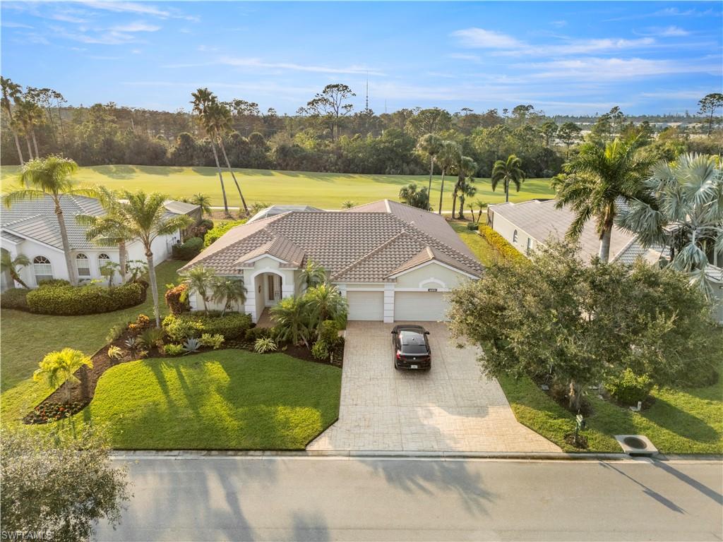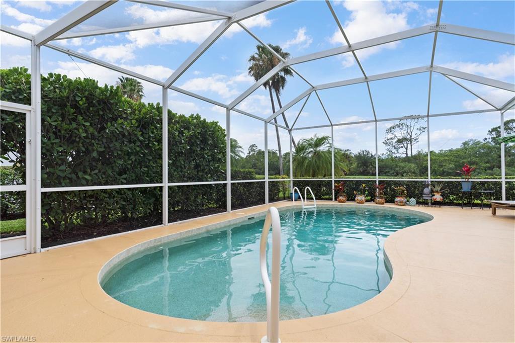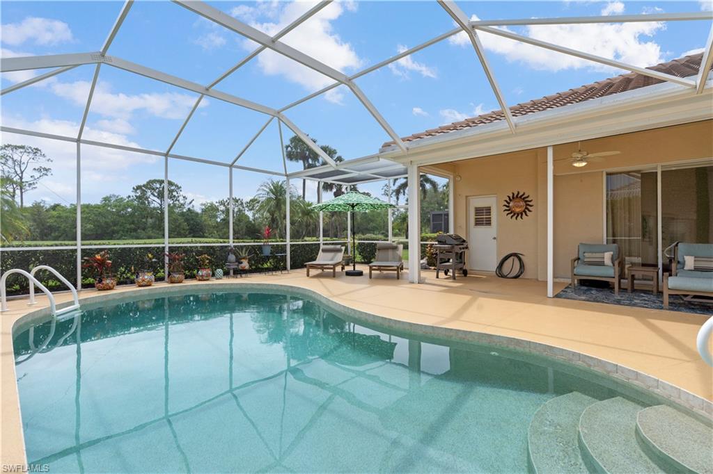 Welcome to this stunning home in Naples Heritage, where elegance, space, and breathtaking golf course views come together beautifully. From the moment you step inside, you’ll be captivated by the expansive, light-filled open floor plan designed for both everyday living and effortless entertaining. The spacious primary suite is privately located on one side of the home and features bay windows, a generous walk-in closet, and a luxurious bath with dual vanities, a soaking tub, walk-in shower, and private water closet. Two guest suites are positioned on the opposite side, each offering privacy and their own en-suite bathrooms, one of which conveniently serves as a pool bath. The living and dining areas flow seamlessly into the family room, while large windows and sliding doors throughout showcase sweeping western exposure and picturesque fairway views, perfect for enjoying Florida’s signature sunsets. The oversized lanai invites indoor-outdoor living with its large pool, ample covered space, and plenty of room for dining and lounging. The upgraded, open kitchen features quartz countertops, newer cabinetry, and stainless steel appliances, ideal for the home chef. Additional highlights include a highly desired three-car garage with new cabinetry and recent upgrades such as a newer roof, A/C, pool pump and heater, storm-smart shades, hot water heater, newer bedroom carpets, and a refurbished lanai cage. The home is being offered furnished and turnkey, so all you need to bring is your clothes and a toothbrush! As a resident of Naples Heritage, you'll enjoy access to a full golf membership to this premier bundled golf community. The 18-hole, Gordon Lewis-designed course offers a variety of golf leagues, clinics, and tournaments. But the amenities don't stop at golf! Naples Heritage also features four pickleball courts, six tennis courts, a fitness center with a wide range of classes, bocce, and poolside dining at the Palm Terrace overlooking the resort-style pool. The main clubhouse offers additional dining options, and there are countless social events throughout the season to keep you connected with the vibrant community. The location couldn’t be more convenient—just 15 minutes to downtown Naples, with quick access to I-75 for easy trips to the airport or south to Marco Island. Don’t miss out on this incredible opportunity to own your slice of paradise. Come see this exceptional home today!