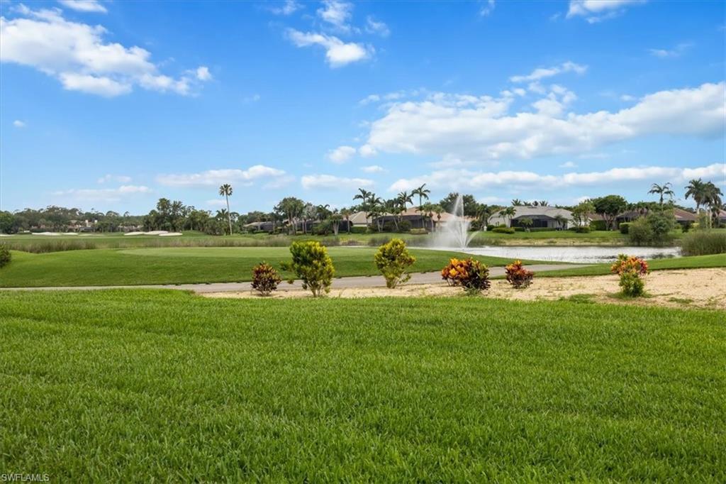 Welcome to this stunning first floor property in North Naples. This home offers the pinnacle of luxury living with 24-hour security, three 9-hole golf courses, a newly renovated fitness center, multiple dining facilities, and a vibrant clubhouse for social activities. Overlooking a picturesque golf course and serene lake with a fountain, the outdoor space includes a screened lanai with hurricane shutters. The renovated kitchen and bathrooms boast custom cabinets, granite countertops, and a newly painted living/dining area, while a new dining light fixture adds a touch of elegance. Conveniently located near the Strand/Publix shopping center and just a stone's throw from breathtaking beaches and outstanding restaurants, this property is offered turnkey, making it a standout choice for your next move. BRAND NEW AC INSTALLED SEPT 2025!