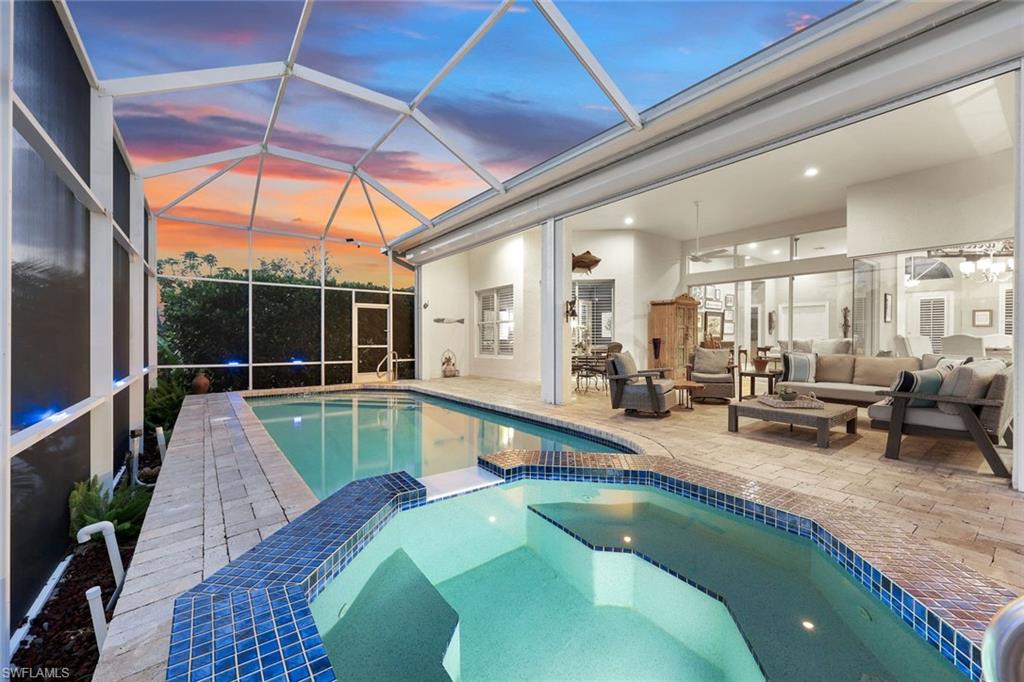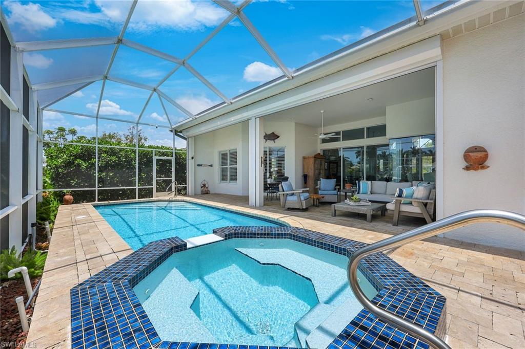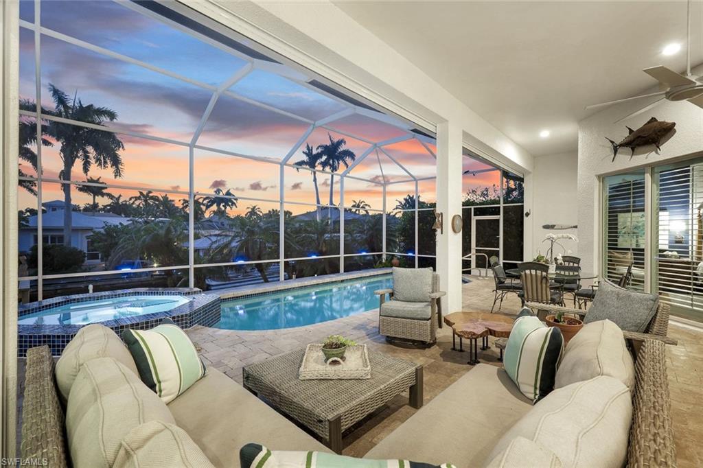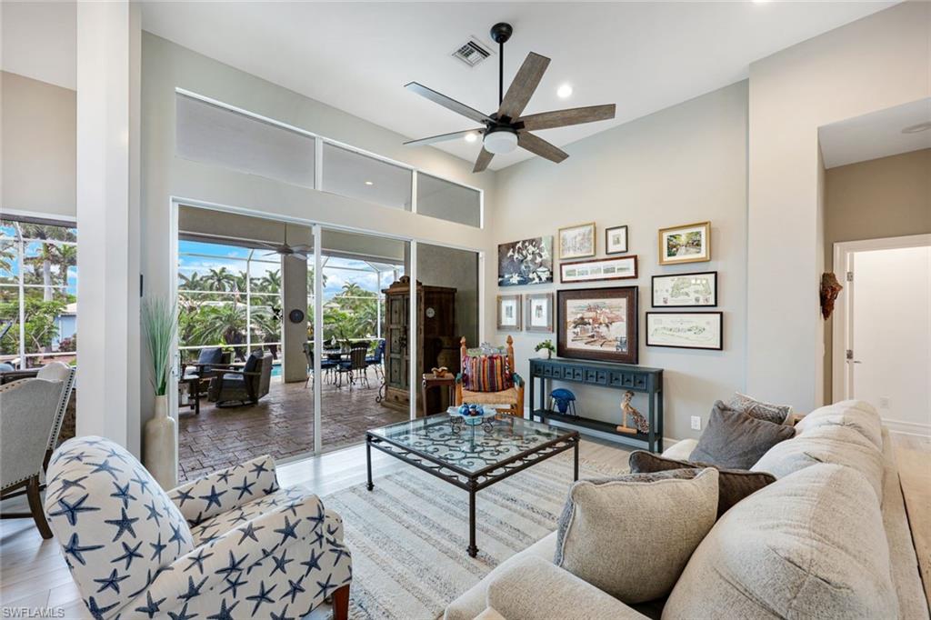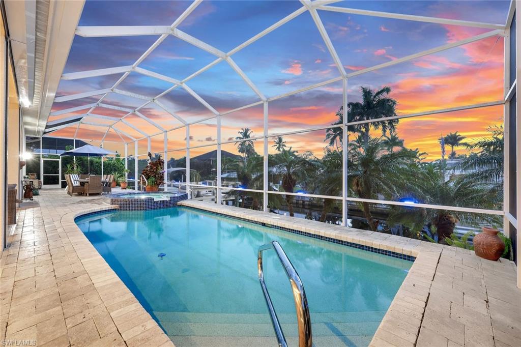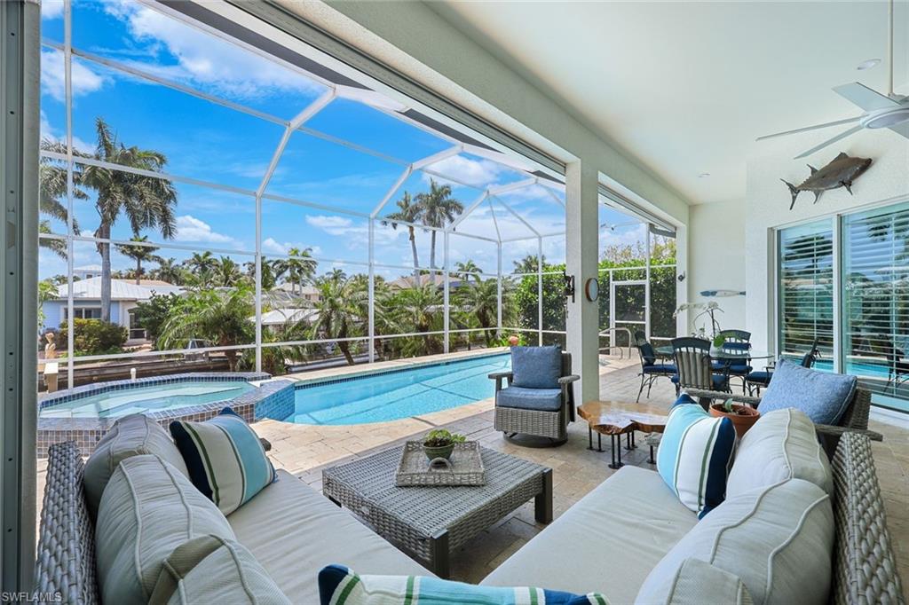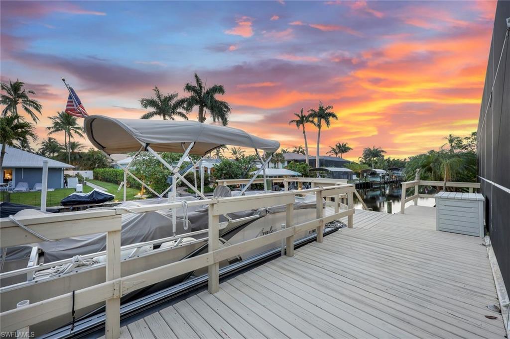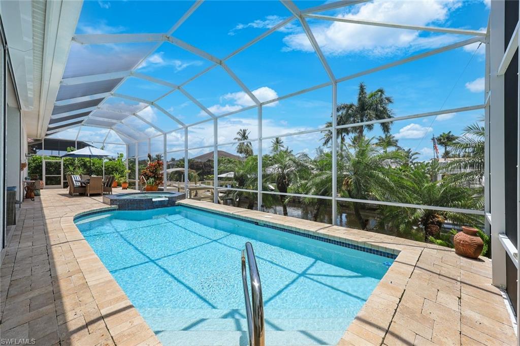 Welcome to this EXCEPTIONAL 3-bedroom plus den/office, 3.5-bathroom WATERFRONT home. This exquisitely remodeled GULF ACCESS POOL home is the epitome of indoor/outdoor living. Perfectly positioned on an oversized lot on one of Bonita Springs’ most exclusive canal streets, this home is just minutes to historic downtown Bonita Springs AND NEVER FLOODED. Home, garage, pool and boat dock are all on the same level, making it ideal for everyone in the family – no stairs or elevators needed! Upon entering the home, you will be wowed by the open floor plan, its soaring 12-foot ceilings and panoramic canal views thanks to its abundance of glass doors and windows. COMPLETELY REMODELED IN 2023, the home features wide-plank luxury vinyl flooring throughout, a stunning new chef’s kitchen with Thermador stainless steel appliances and range, marble countertops and GAS cooktop, show stopping designer wet bar with wine fridge and glass wine display, tastefully updated ensuite bathrooms, hurricane-rated windows, doors, electric shutters on lanai, two 120-gallon propane tanks fueling both kitchen and outdoor BBQ and so much more! Guest suites are privately tucked away on the southern side of the home for ultimate privacy, each with its own ensuite bathroom and private outdoor access. The primary suite is a retreat of its own, with breathtaking water views and lanai access. Step outside to your private west-facing lanai to soak in the iconic Southwest Florida sunsets. As the sun sets each evening, the Western sky is awash with spectacular colors! Lounge by the pool and spa, dine al fresco, or enjoy visits from dolphins and manatees from your dock. Your 10,000 POUND BOAT LIFT awaits just steps from the pool. Launch into open water with no bridges and no delays. Harbor Drive is non-gated with NO HOA FEES. This is what SWFL living is all about! Harbor Drive is one of Bonita’s best kept secrets as it is so well maintained and so private! Bring your boat and head to the Gulf, waterfront restaurants, private beaches and more! The arts are alive in Bonita Springs, with plenty of festivals, artist cottages, music in the downtown amphitheater - all just a short bike ride or boat ride from this home. DO NOT MISS your opportunity to experience all that Bonita Springs has to offer, not only in a community but especially in this ONE-OF-A-KIND home – a rare find offering the ULTIMATE Florida lifestyle!