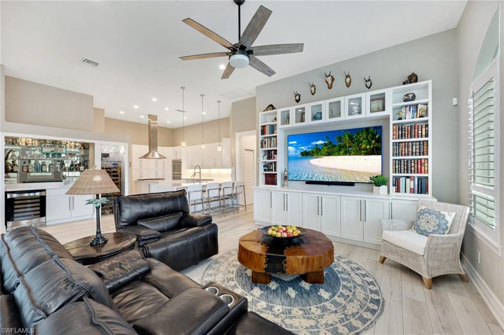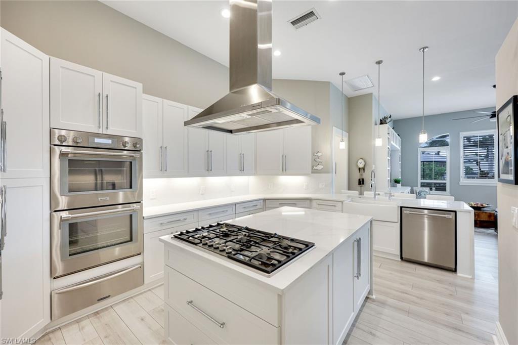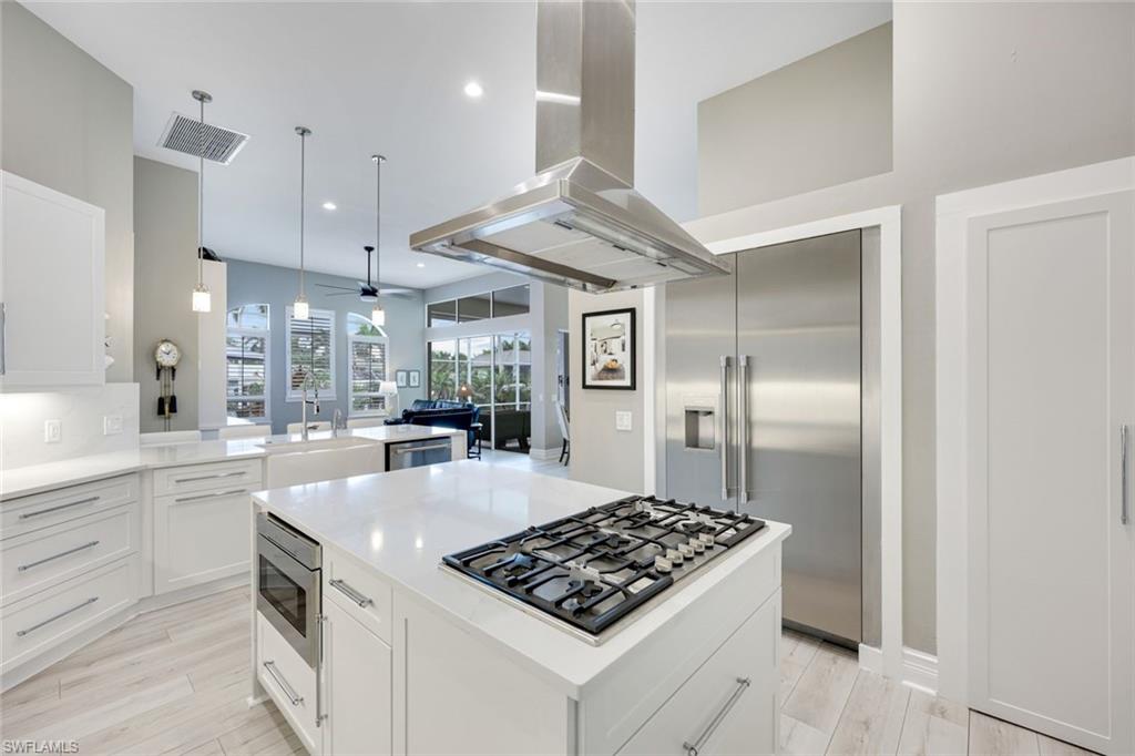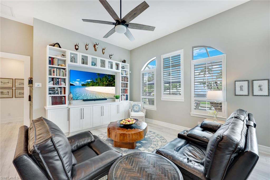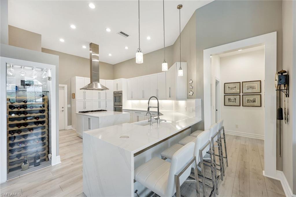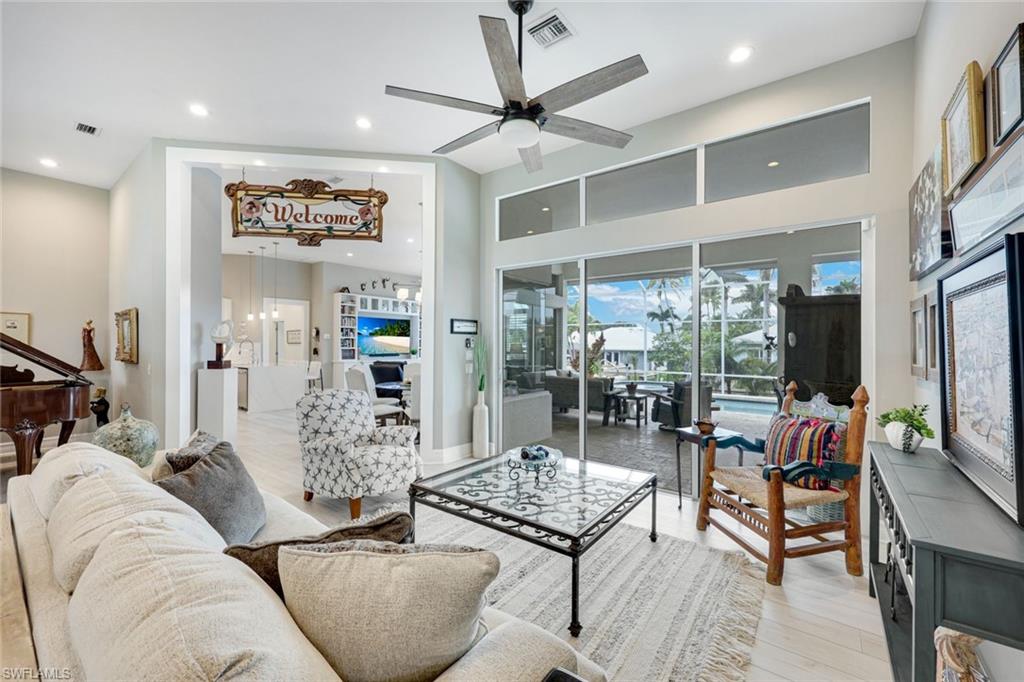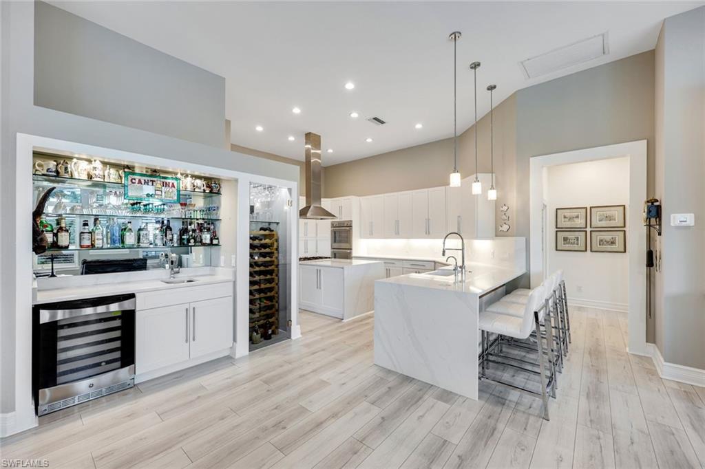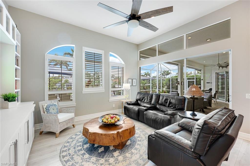 Welcome to this EXCEPTIONAL 3-bedroom plus den/office, 3.5-bathroom WATERFRONT home. This exquisitely remodeled GULF ACCESS POOL home is the epitome of indoor/outdoor living. Perfectly positioned on an oversized lot on one of Bonita Springs’ most exclusive canal streets, this home is just minutes to historic downtown Bonita Springs AND NEVER FLOODED. Home, garage, pool and boat dock are all on the same level, making it ideal for everyone in the family – no stairs or elevators needed! Upon entering the home, you will be wowed by the open floor plan, its soaring 12-foot ceilings and panoramic canal views thanks to its abundance of glass doors and windows. COMPLETELY REMODELED IN 2023, the home features wide-plank luxury vinyl flooring throughout, a stunning new chef’s kitchen with Thermador stainless steel appliances and range, marble countertops and GAS cooktop, show stopping designer wet bar with wine fridge and glass wine display, tastefully updated ensuite bathrooms, hurricane-rated windows, doors, electric shutters on lanai, two 120-gallon propane tanks fueling both kitchen and outdoor BBQ and so much more! Guest suites are privately tucked away on the southern side of the home for ultimate privacy, each with its own ensuite bathroom and private outdoor access. The primary suite is a retreat of its own, with breathtaking water views and lanai access. Step outside to your private west-facing lanai to soak in the iconic Southwest Florida sunsets. As the sun sets each evening, the Western sky is awash with spectacular colors! Lounge by the pool and spa, dine al fresco, or enjoy visits from dolphins and manatees from your dock. Your 10,000 POUND BOAT LIFT awaits just steps from the pool. Launch into open water with no bridges and no delays. Harbor Drive is non-gated with NO HOA FEES. This is what SWFL living is all about! Harbor Drive is one of Bonita’s best kept secrets as it is so well maintained and so private! Bring your boat and head to the Gulf, waterfront restaurants, private beaches and more! The arts are alive in Bonita Springs, with plenty of festivals, artist cottages, music in the downtown amphitheater - all just a short bike ride or boat ride from this home. DO NOT MISS your opportunity to experience all that Bonita Springs has to offer, not only in a community but especially in this ONE-OF-A-KIND home – a rare find offering the ULTIMATE Florida lifestyle!
