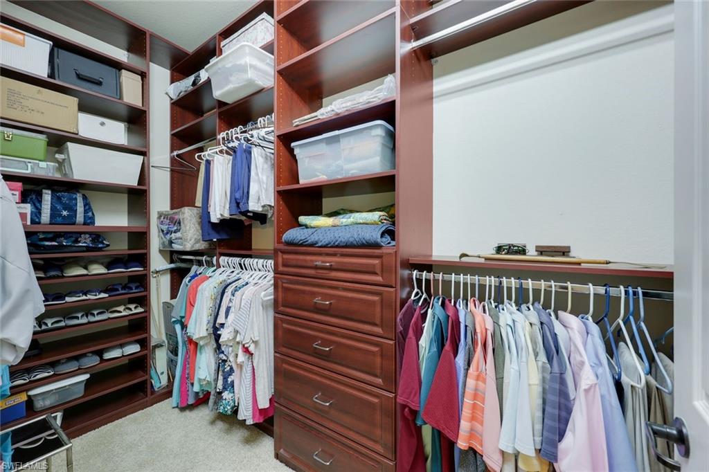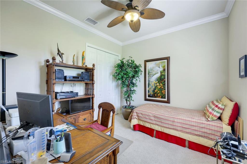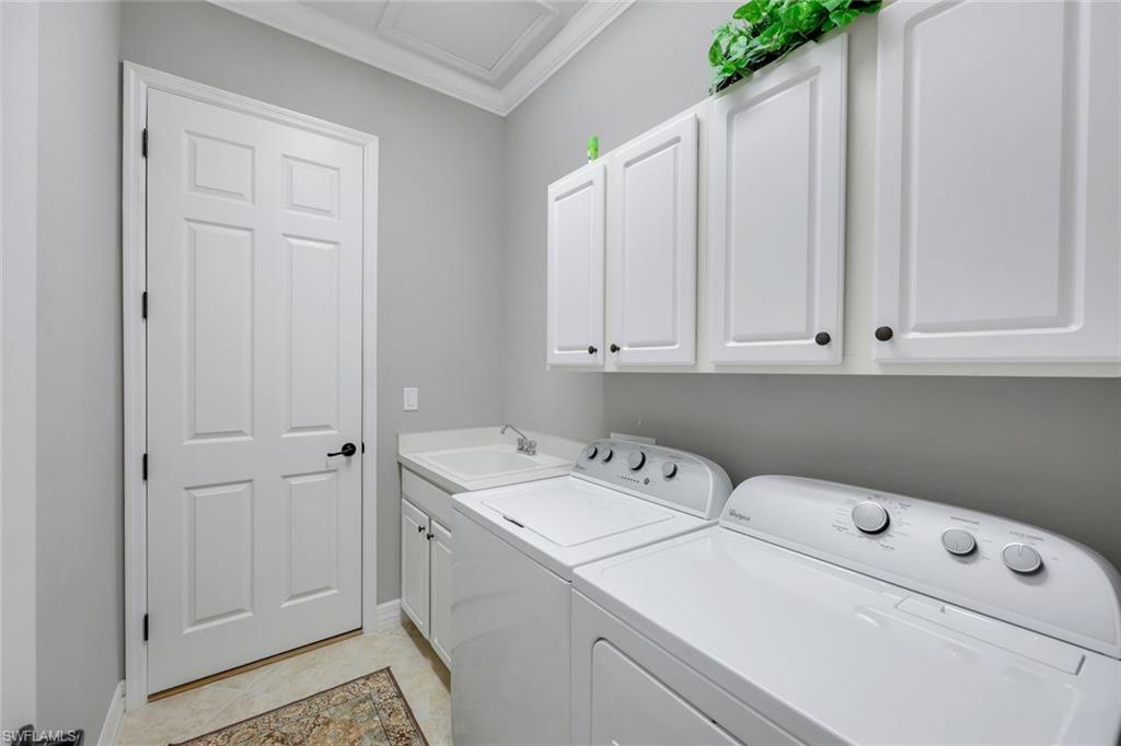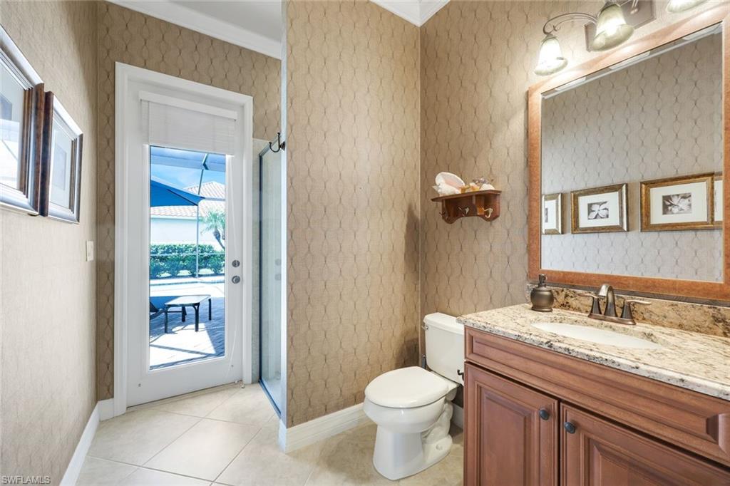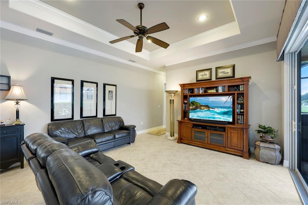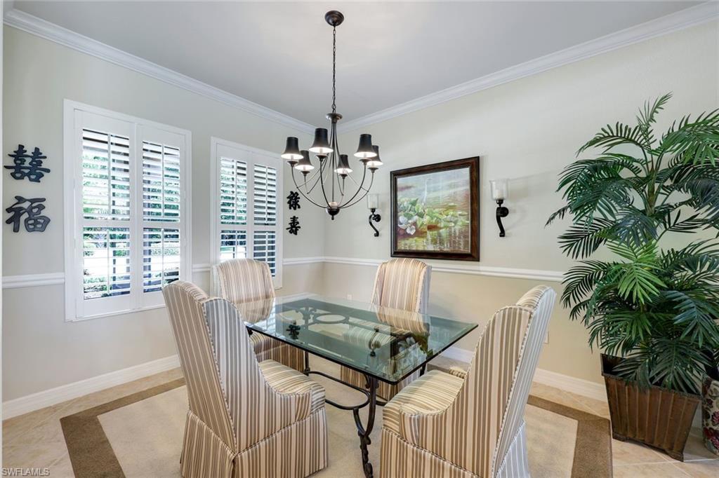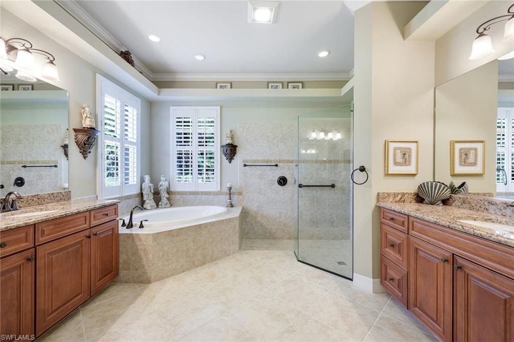 Full golf membership included! This immaculate Doral model is situated on one of the largest oversized pie-shaped lots in Heritage Bay and is one of only four homes in the entire community with no adjacent neighbor in the front, offering added privacy and stunning views. Enjoy breathtaking, panoramic southeastern exposure overlooking the #4 green and lake. Offered furnished, this home is loaded with upgrades including custom closets, coffered ceilings, crown molding throughout, granite countertops, stainless steel appliances, hurricane panels, plantation shutters on every window,new pool/spa electric heater installed in 2025, variable speed pool pump installed in 2023 and a 5 ton HVAC system installed in 2022. Located just a short 3-minute walk from the newly completed resort-style pool and full-service outdoor restaurant, this home is perfectly positioned to enjoy the best of what Heritage Bay has to offer. The recently renovated clubhouse and brand-new Grille Room overlooking the golf course and lake elevate the lifestyle even further. Heritage Bay is one of Naples' premier bundled golf communities, featuring 27 holes of championship golf, 7 HAR-TRU tennis courts, a state-of-the-art fitness center with yoga, spin, and weight rooms, as well as pickleball, bocce, and more. The special assessment for community improvements has been paid in full by the seller—just move in and enjoy!