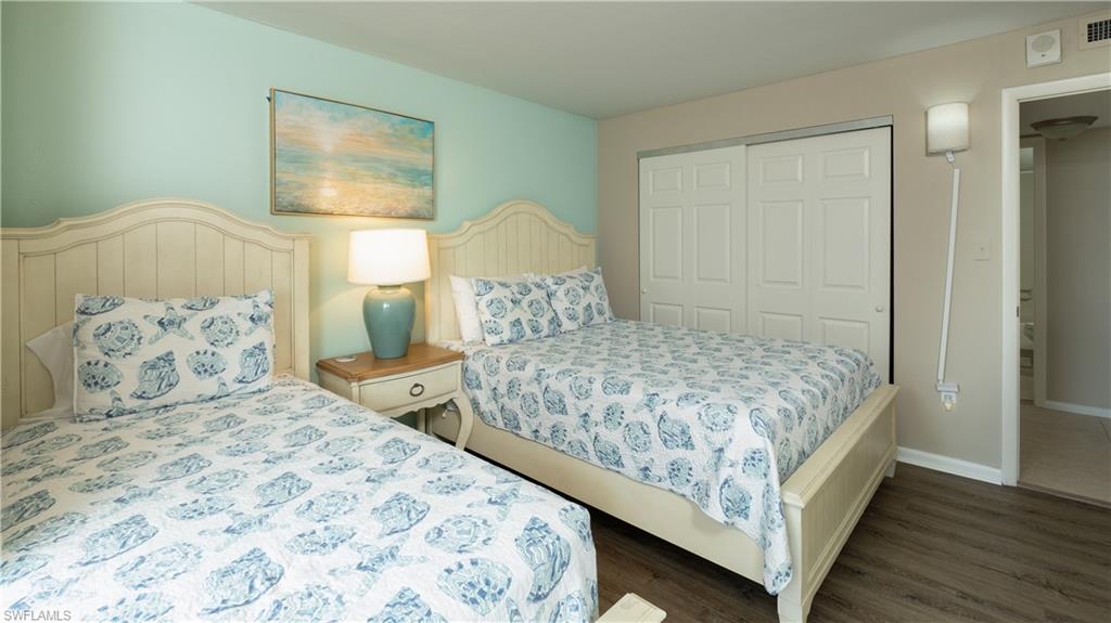 You want an FRONT END UNIT overlooking Marco Island's Beach from North to South with a Sunsets Every night! Perfect Floor Height, picturesque views overlooking the Gulf of America from this beautifully updated two-bedroom, two-bath unit. The modern kitchen adds style and functionality, while the gated community offers a range of amenities designed for your comfort and enjoyment. Over looking the Buildings Pool and Boardwalk to the beach. The best a gated beachfront community has to offer with boat docks available for lease from the Association. Excellent Pickle ball and tennis faciality