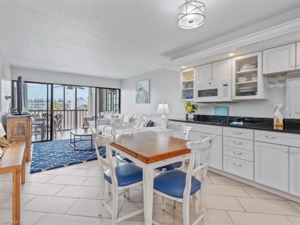 Welcome to The Blue Turtle Escape—a beautifully updated coastal condo in Angler’s Cove, one of Marco Island’s premier waterfront resort communities. This turnkey one-bedroom unit boasts gorgeous open views overlooking the pools, tennis courts, Dolphin Tiki Bar, and the Marco River. Whether you're enjoying the sunrise over the water or relaxing in the vibrant energy of the community, this condo offers the perfect island lifestyle. Interior Features: Spacious bedroom with two queen beds – ideal for guests Stylish large plank tile flooring laid on a diagonal throughout Open kitchen with white and glass cabinetry, black granite countertops, a full-size refrigerator, and a dishwasher Updated bathroom with walk-in shower, modern vanity, and new toilet Washer & dryer tucked neatly in the closet, hidden behind a pocket door Plantation shutters in the kitchen, bath, and bedroom Impact-resistant windows for peace of mind Angler’s Cove Amenities: Direct Gulf access with boat docks for lease Two large pools with inviting spas Two tennis courts On-site Dolphin Tiki Bar & Restaurant Next door to Rose Marina offering boat rentals, tours, and fishing trips All-inclusive condo fees ($2,140/quarter) cover electric, water, cable, and internet. Flexible rental policy—perfect for investment or personal use (weekly, monthly, or annually). Don't miss this opportunity to own a piece of paradise on Marco Island. Whether you're looking for a waterfront getaway, a rental income property, or both—The Blue Turtle Escape checks all the boxes.