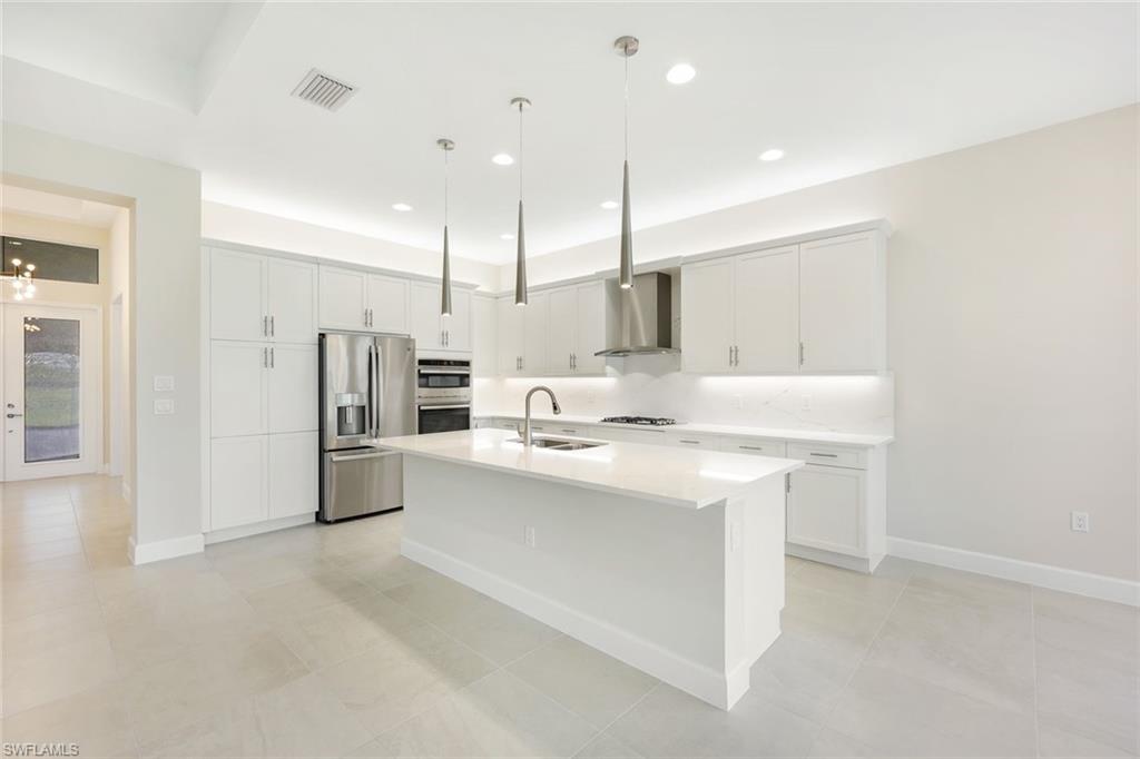 New construction available this November / December! This "Nautilus" home offers impact resistant windows throughout and has 3 bedrooms, a Den, 2 ½ baths, 2 car garage plus golf cart storage with 24 x 24 tile throughout main living areas and bathrooms. The Open Kitchen features stainless steel GE appliances, upgraded quartz countertops and gourmet package including under and above cabinet lighting and Built-In Cabinet Pantry. The master bedroom offers a coffered ceiling, spacious his and her closets and a master bath with dual sinks. Valencia Trails is located just minutes away from shopping and dining and provides a new standard of 55 plus living by offering an exciting vacation-inspired lifestyle that rivals the finest resorts. The opulent 42,000 sq. ft. Clubhouse and Lifestyle Complex offers hundreds of exciting events including Broadway style shows, matinees, cocktail parties and galas. A full-time, on-site lifestyle staff ensures that there is something for everyone to enjoy. Photographs are from the Nautilus Model, not the actual home.