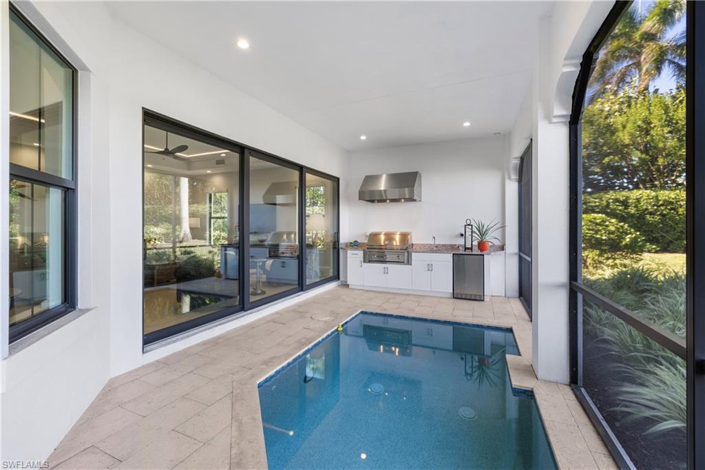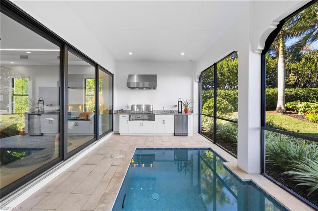 Enjoy the conveniences of a condominium while still living like a single family home with your very own private pool, built-in natural gas grill, private two and a half car garage and a beautiful courtyard entrance. Step inside this open-concept Messina floor plan and you'll find engineered hardwood flooring throughout, electronic window shades, upgraded lighting and custom designer enhancements throughout. The chef's kitchen is a dream with plentiful cabinets, walk in pantry, soft-close drawers, pullout lower cabinets, a built-in refrigerator, wine cooler, and a top-of-the-line upgraded 6-burner natural gas range with two full-size ovens and microwave drawer. The spacious Master bedroom overlooks the pristine golf course and features a spa-like bathroom with a soaking tub set against a tiled accent wall, dual walk-in closets, frameless glass shower, full size dressing mirror, and dual vanity sinks with a dedicated makeup mirror and seating area. Step outside to your private oasis featuring a large screened in patio equipped with a dipping pool with spa functionality and a built-in gas grill perfect for entertaining or relaxing while enjoying unparalleled privacy. This unit is located in the only building along Corsica offering breathtaking golf course views overlooking the 6th hole and offers no neighbors to the left for an exceptionally secluded setting. Additional highlights include an attached TANDEM GARAGE with plenty of space for two full size cars and a golf cart. Nestled in the award-winning Talis Park community, residents enjoy the recently renovated Greg Norman and Pete Dye-designed golf course, ranked among Florida’s top 20 by Golf Digest. The centerpiece of the community, the Vyne House, was named "Clubhouse of the Year" by Golf Inc. Magazine and offers unparalleled dining, fitness, and very active social amenities. Discover an extraordinary lifestyle where luxury, privacy, and world-class golf come together. Schedule your private showing today!