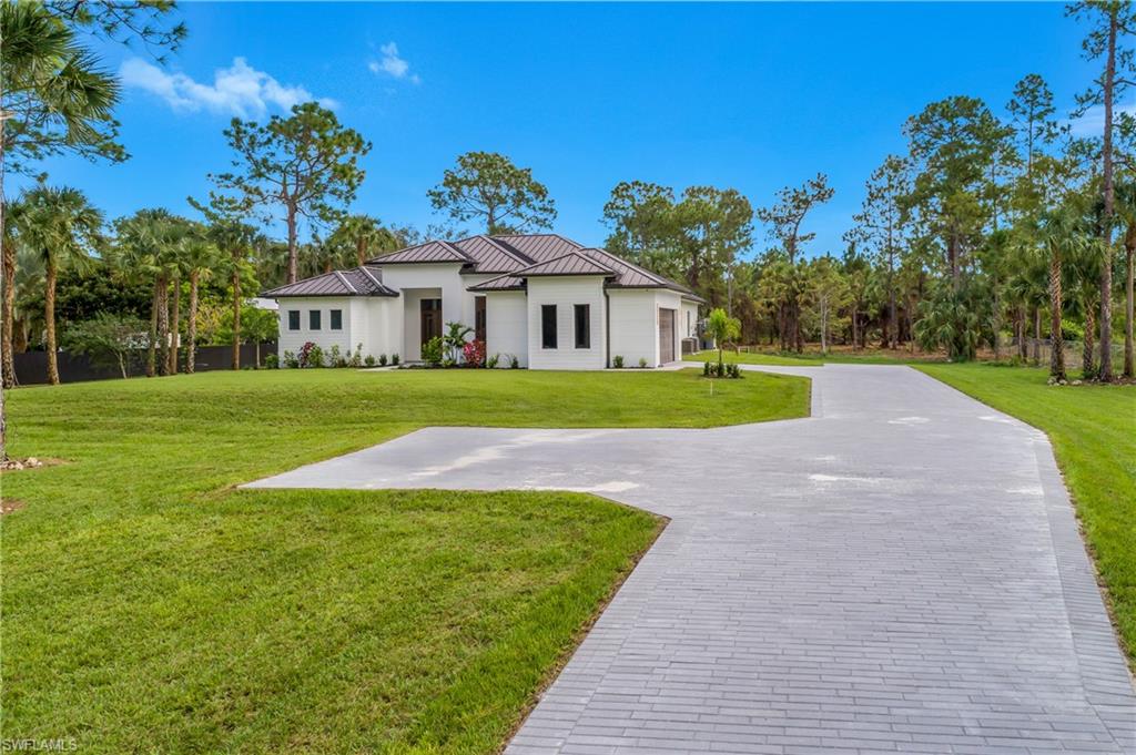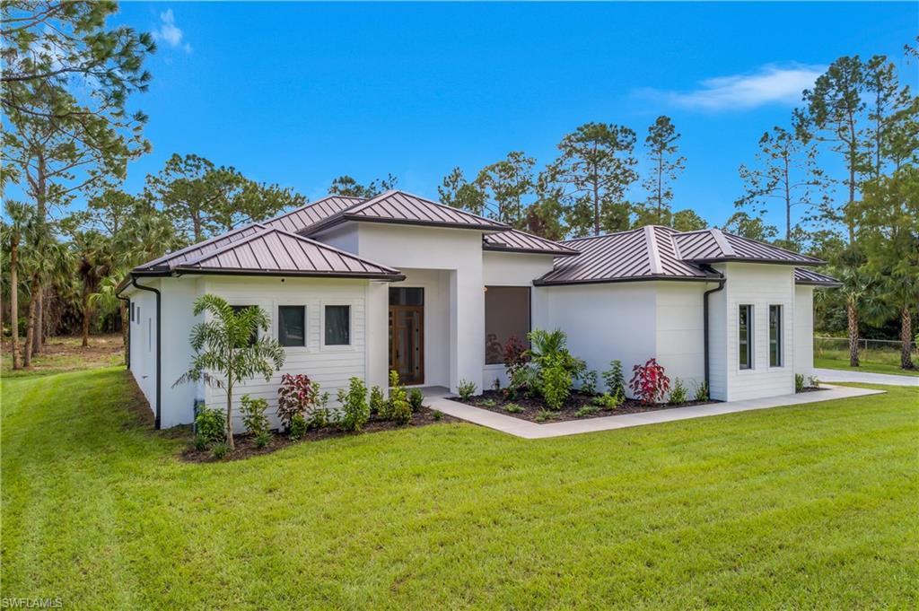 PICTURES ARE OF A SIMILAR HOME. Welcome to your dream home nestled on 2.5 acres of lush property! This stunning house spans 2392 square feet under air, with a grand total of 3383 square feet, 2-car garage. Step inside and discover the luxury within. With 3 bedrooms plus an office and 3 modern bathrooms, each equipped with stylish mirrors and integrated lighting, comfort meets sophistication. Walking closets with built-in cabinets ensure ample storage, complemented by the entire house's spray foam insulation for energy efficiency. The house features 2 AC units to keep you cool year-round, while impact-resistant windows and doors provide security and peace of mind. Marvel at the brown metal roof, promising durability and longevity. The integrated reverse osmosis system ensures pristine water quality throughout, enhancing daily living. Relaxation awaits in the living room and master bedroom. The solid wood kitchen cabinets offer both beauty and functionality, perfect for culinary endeavors. Step outside to your private oasis, the lanai features a summer kitchen equipped with everything you will need to keep your guests entertained.