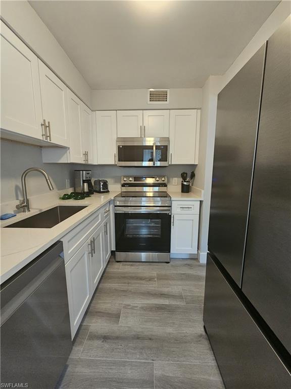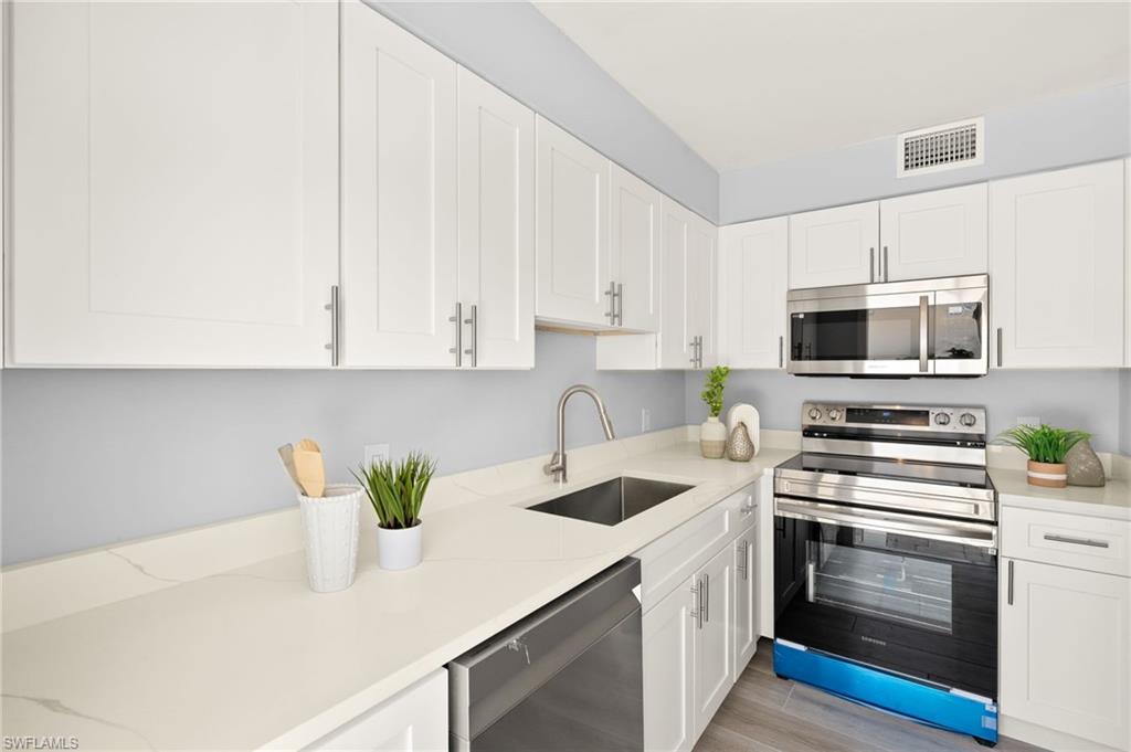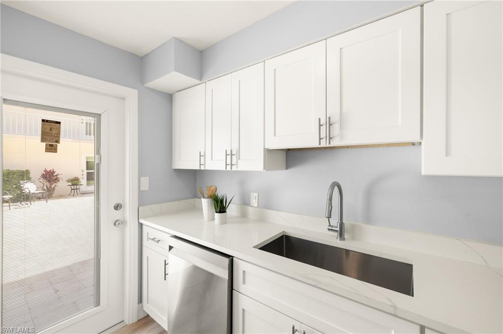 Welcome to your new oasis in sunny Naples, FL! This beautifully remodeled 1st-floor condo offers 2 bedrooms and 2 baths, making it the perfect cozy retreat or year-round residence. Recent upgrades ensure this home is as stylish as it is built to last. The brand-new roof and charming courtyard create a serene space to unwind, while fresh new paint, updated electrical and plumbing systems, and stunning Luxury Vinyl Tile flooring enhance the interior. The sleek wooden kitchen cabinets and luxurious quartz countertops provide both beauty and functionality. The kitchen shines with brand-new stainless steel appliances, blending modern convenience with timeless elegance. Plus, enjoy the added charm of plantation shutters, bringing a refined touch to your living space. Now featuring newly installed impact-resistant doors, this condo is designed for lasting quality and resilience. With approval from the COA in place, you can confidently settle into a home created with craftsmanship and attention to detail. Situated in an unbeatable location, you're just minutes from the beach and close to shopping, fine dining on 5th Avenue, and the charming strolls of Cambier Park. Whether you’re in the mood for a relaxing beach day, exploring local boutiques, or enjoying Naples’ vibrant culture, everything is right at your doorstep. Plus, enjoy exceptional community amenities, including a swimming pool, bocce ball courts, shuffleboard, and a community clubhouse—perfect for social gatherings or simply unwinding in style. Don't miss out on this opportunity to own a piece of paradise in Naples!
