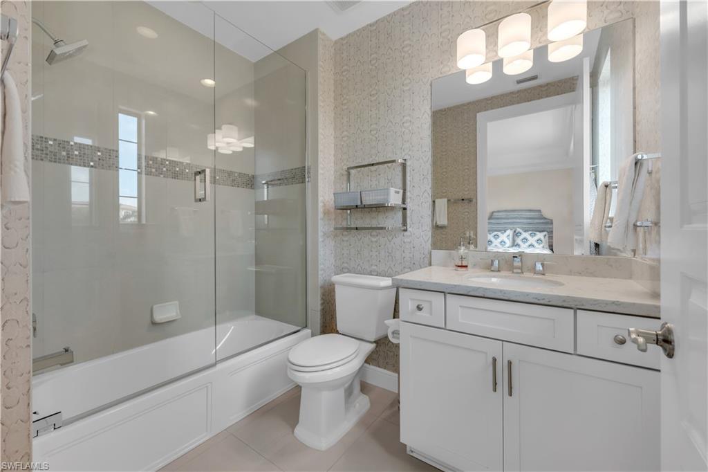 Esperanza at Tiburón – Professionally-Decorated Turnkey-Furnished Top-Floor Luxury Residence with Golf Membership Immediately Available. Experience refined Naples living in this beautifully updated and Clive Daniel-decorated penthouse-level residence in the sought-after Esperanza at Tiburón, home to the Ritz-Carlton Golf Resort and two Greg Norman–designed championship golf courses. This immaculate three-bedroom, three-and-a-half-bath end unit combines sophisticated design with serene privacy—no units above and panoramic preserve views that provide tranquility from sunrise to sunset. An inviting open-concept great room features soaring ceilings, custom millwork, high-end artwork and designer finishes throughout. The chef’s kitchen offers white cabinetry, matching quartz countertops, high-end appliances, and a spacious island perfect for casual dining or entertaining. A formal dining area flows seamlessly to the expansive screened lanai, an ideal retreat for morning coffee or relaxing evenings surrounded by a lush tropical backdrop. The primary suite serves as a private sanctuary with lanai access, a large custom-fitted walk-in closet, and a spa-inspired bath with dual vanities, soaking tub, and frameless glass shower. Two guest suites, each with its own ensuite bath and walk-in closet, ensure comfort and privacy, while the den with a private balcony provides flexible space for work or relaxation. Additional highlights include wood and tile flooring, designer lighting, plantation shutters, a private elevator that opens directly into the residence, and hurricane protection provided by impact glass windows and doors, as well as storm screens out on the patio. Under building garage with two assigned parking spaces and private storage room provide convenience and security. Offered turnkey furnished, the home showcases a curated collection of high-end pieces balancing sophistication and coastal warmth—move right in and enjoy the Tiburón lifestyle. Residents of Esperanza enjoy resort-style amenities including a tropical pool and spa, grilling area, and private clubhouse. Optional Tiburón Golf Club memberships provide access to 36 holes of world-class golf, tennis, fitness center with personal trainers, spa services, concierge, and dining. Owners also enjoy privileges at both Ritz-Carlton resorts and a private shuttle to the beach with chairs, umbrellas, and towels provided. Ideally located in North Naples, just minutes from Mercato, Waterside Shops, white-sand beaches, and downtown Naples, this top-floor corner residence offers exceptional natural light, breathtaking preserve vistas, and a rare sense of single-family privacy within one of Naples’ premier resort communities. Lives like a single-family home – penthouse privacy, resort amenities, and timeless elegance in the heart of Tiburón.