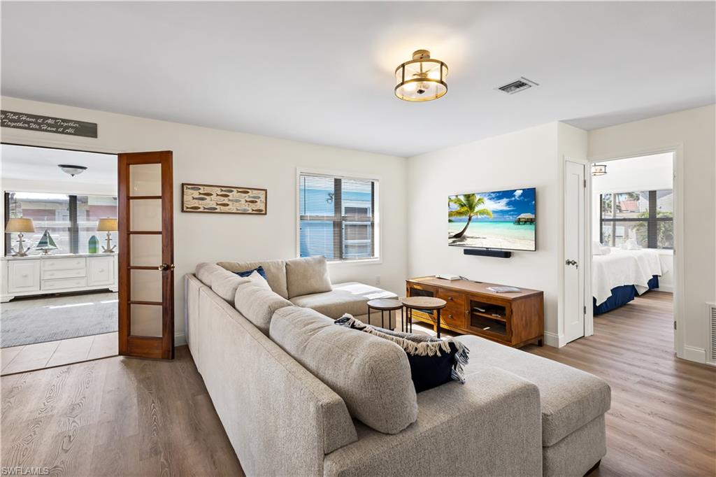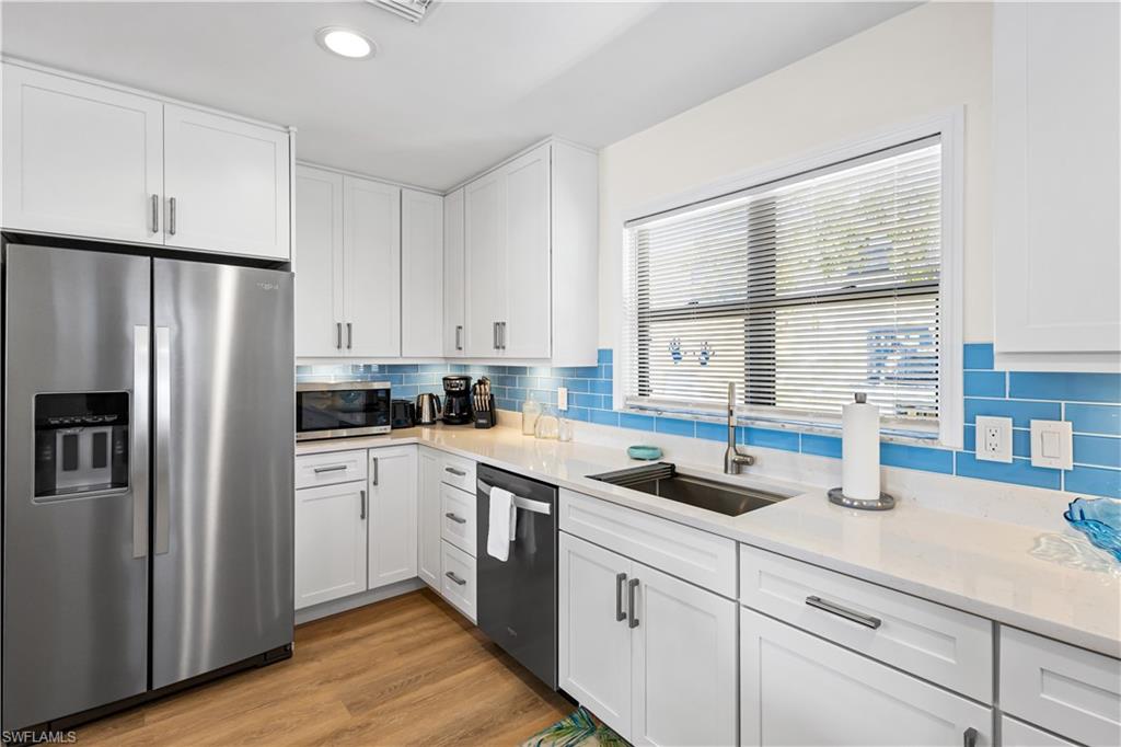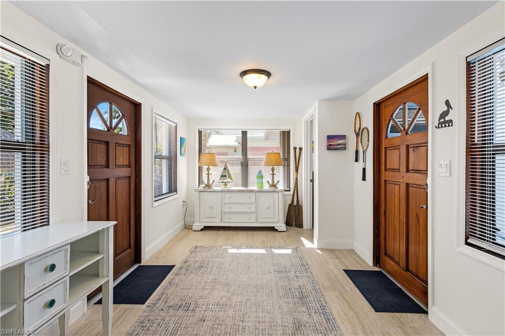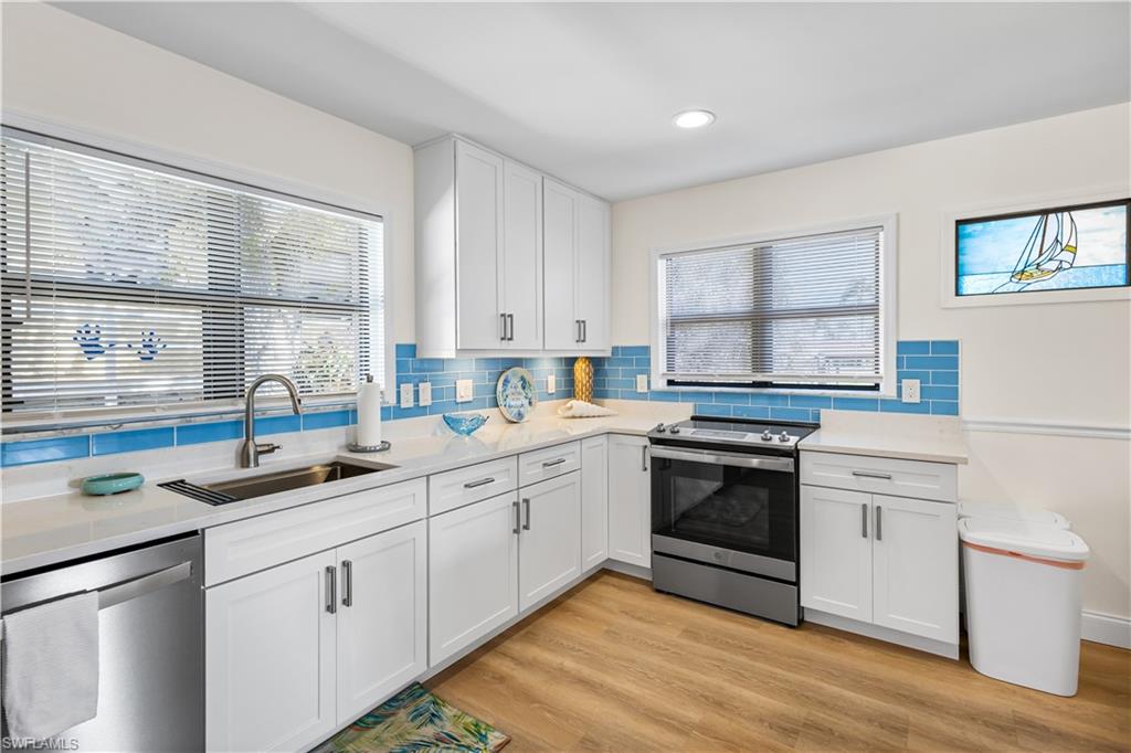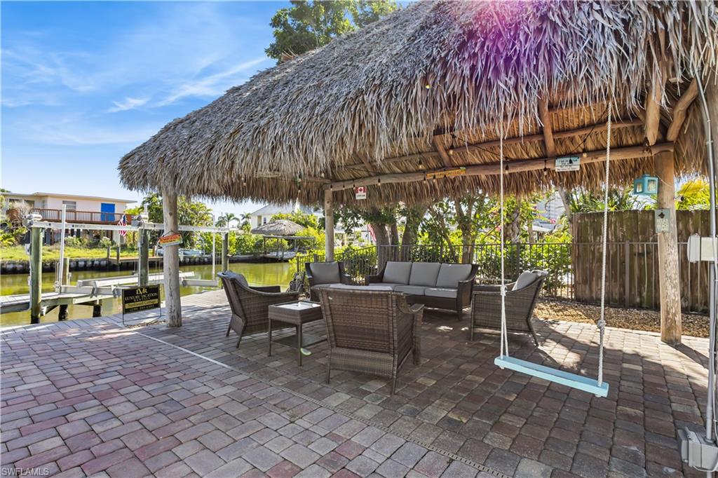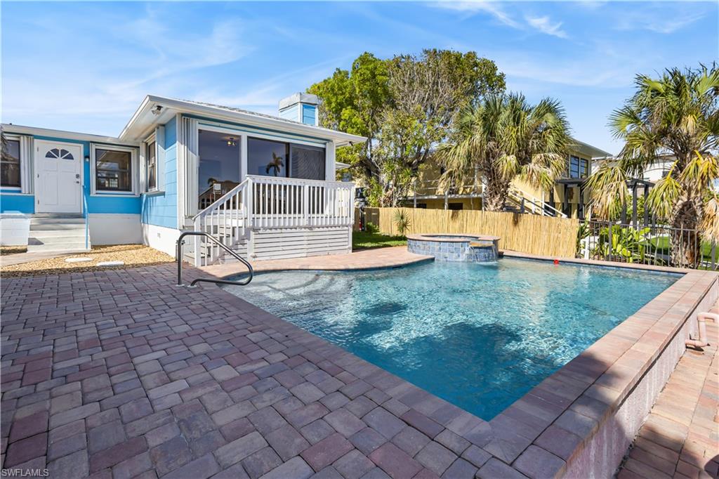 Welcome to Sunkissed Cottage — Your Ultimate Beach Hideaway in Stunning Fort Myers Beach! It’s all about location, location, location—and Sunkissed Cottage delivers. A short half a mile to Margaritaville Resort, easily walk to restaurants, shops and the sugar-white sands of Fort Myers Beach, this charming 2-bedroom, 2-bathroom waterfront retreat is a perfect blend of comfort, style, and coastal elegance. Nestled on a peaceful canal, this home offers a relaxed, resort-like atmosphere with every amenity you need to embrace Florida’s laid-back lifestyle. Step through the inviting entryway with views straight through to the backyard oasis, and you’re immediately welcomed into a bright, open floor plan. The spacious living and dining areas flow seamlessly into a beautifully renovated kitchen, complete with crisp white cabinetry, quartz countertops, and a light blue tile backsplash that evokes the tranquility of the sea. Natural light pours into the adjoining family room, where panoramic views of the pool and canal create a warm, breezy vibe. Sliding glass doors lead directly out to the expansive outdoor living area, making indoor-outdoor living effortless. Out back, your private paradise awaits. Enjoy the heated pool and spa, dine al fresco on the oversized paver patio, sip sunset cocktails under the re-thatched tiki hut, or head to your private dock equipped with a 10,000 lb boat lift. With direct Gulf access and a public boat ramp just down the street, this property is truly a boater’s dream. Whether you’re fishing off the dock, relaxing in the sun, or boating to nearby destinations like Sanibel, Captiva, or waterfront restaurants, adventure is always just steps away. Inside, the home features two distinct living areas and flexible sleeping arrangements ideal for families or guests. The primary suite includes a king-size bed, while the second bedroom comfortably fits a queen and twin. Thoughtfully and thoroughly remodeled after Hurricane Ian, the home boasts all-new flooring, insulation, drywall, baseboards, appliances, cabinets, bathrooms, electrical and plumbing systems, new HVAC, gas tankless hot water heater, and brand-new pool equipment installed after hurricane Milton in 2024. There is a buried 250 gallon propane tank in the front yard connected to the gas pool heater and instant on tankless gas water heater. The house is fully equipped with Nest learning thermostat and Nest security camera system. Pool equipment is fully automated with remote access. The tiki hut was re-thatched in 2022 and remains a favorite spot to unwind. Seawall was replaced in 2015 with a raised cap and new dock installed in 2014 with composite decking, wrapped pilings, and new boat lift all in excellent condition today. House is Offered with optional turnkey package. Strong bookings already in place for the remainder of 2025 and into 2026, Sunkissed Cottage stands as a proven income-producing gem. At Sunkissed Cottage, every day feels like a vacation.