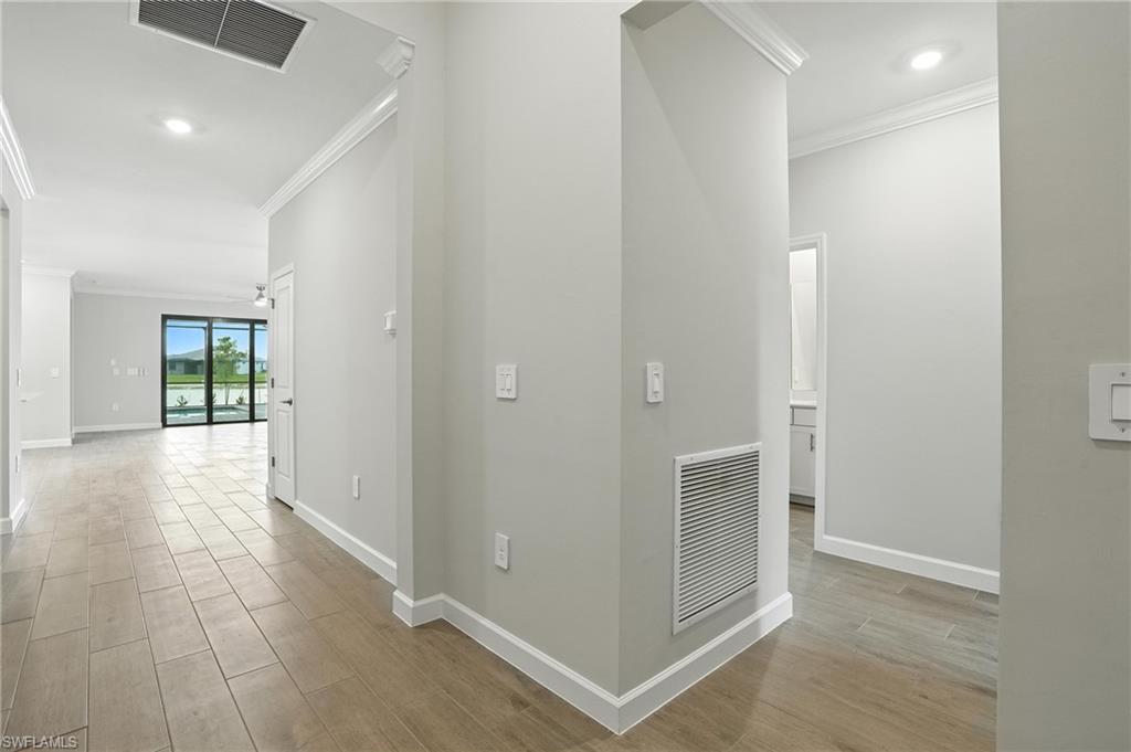 Welcome to 19105 Hinkley Drive, a brand-new, never-lived-in Trevi model located in the highly sought-after community of Verdana Village. This 4-bedroom, 3-bathroom home offers 2,032 square feet of open-concept living and over $75,000 in custom upgrades not available through the builder, making it truly one-of-a-kind. The home features custom built-in entertainment center with electric fireplace and mounted TV—creating ideal spaces for relaxation and entertaining. Step outside to your private pool and spa overlooking a peaceful lake view. The chef’s kitchen is loaded with upgrades, including stainless steel appliances with a gas stove and cooktop, custom tile backsplash, center island with lighting and tile accents, under and over cabinet lighting, a pantry, and a breakfast nook. Interior highlights include tile flooring throughout, recessed lighting, chandeliers, tongue-and-groove ceilings on lanai, a decorative glass front door, upgraded fans and lighting fixtures, and epoxy-coated garage floors. All bedrooms offer spacious layouts with walk-in closets and separate vanities. This home is located in a no-flood zone and offers access to Verdana Village’s impressive resort-style amenities, including 18 indoor/outdoor pickleball courts, 8 indoor/outdoor tennis courts, a state-of-the-art fitness center, resort-style pool with outdoor bar, Drift Restaurant & Craft Lounge, indoor sports facilities, a kids’ playground, and a dog park. Residents also enjoy golf cart access to on-site retail including Publix, Dunkin’, UPS Store, Fifth Third Bank, and more. Conveniently located near shopping, dining, beaches, and RSW Airport, this move-in ready home is a rare opportunity to own a fully upgraded property with premium finishes and tranquil preserve views.