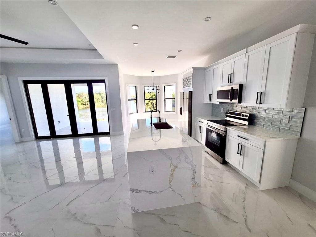 NOW with a new price!!!! Welcome to your dream home in the heart of Golden Gate City! This stunning property offers the perfect blend of location, space, and modern entertainment-decorative wall. 1,845 square feet of beautifully designed living space under air, providing ample room for comfortable living and entertaining. The layout includes 3 bedrooms, ideal for family and guests, along with a versatile den that can easily serve as a home office, media room, or additional bedroom as needed. With 2.5 baths, convenience and privacy are ensured for everyone in the household. One of the standout features of this home is its impact doors and windows, providing peace of mind and protection during storm seasons while also enhancing energy efficiency and noise reduction year-round not to mention the quartz counter tops and the stunning water view from the lanai. In addition to its interior charms, this home boasts a prime location that puts you in the heart of Golden Gate City with easy access to local amenities, including shopping, dining, entertainment, and outdoor recreation options. Don't miss your chance to make this remarkable property your own.