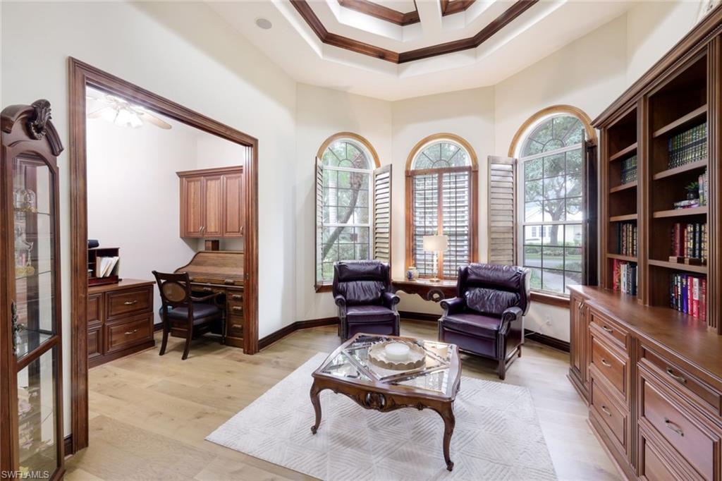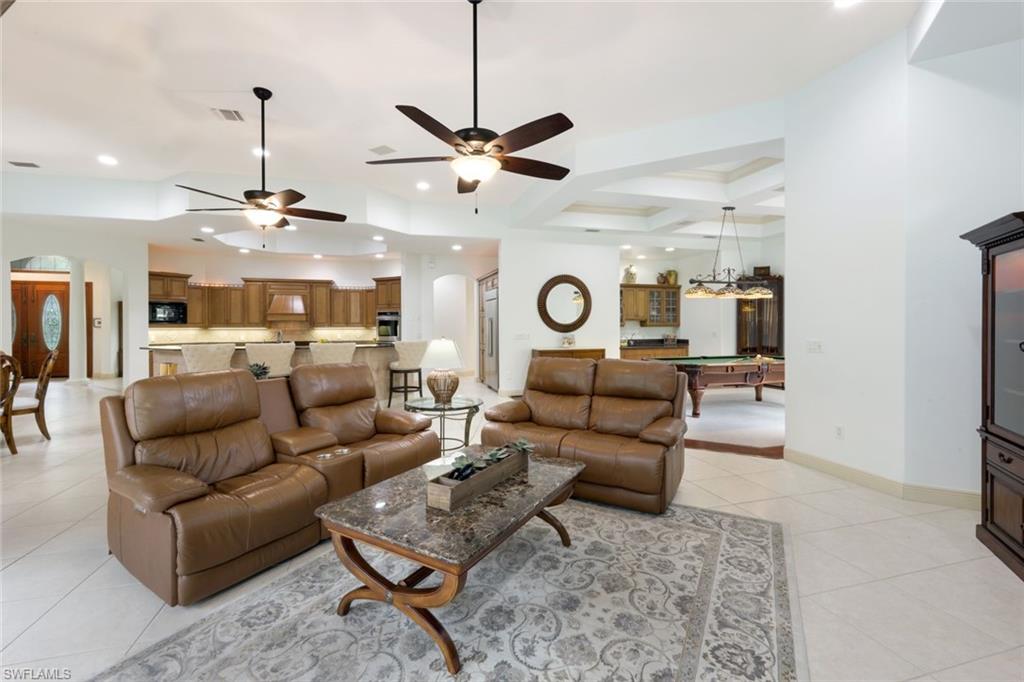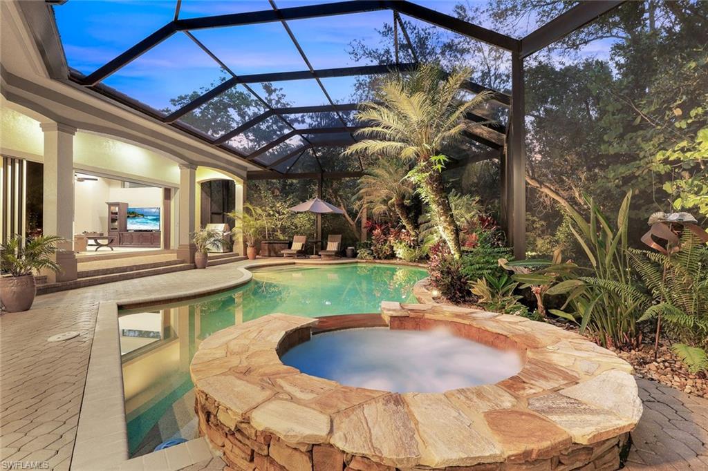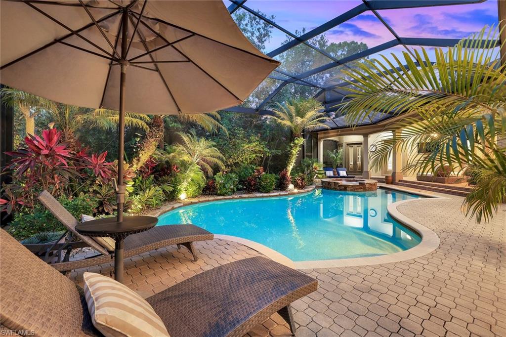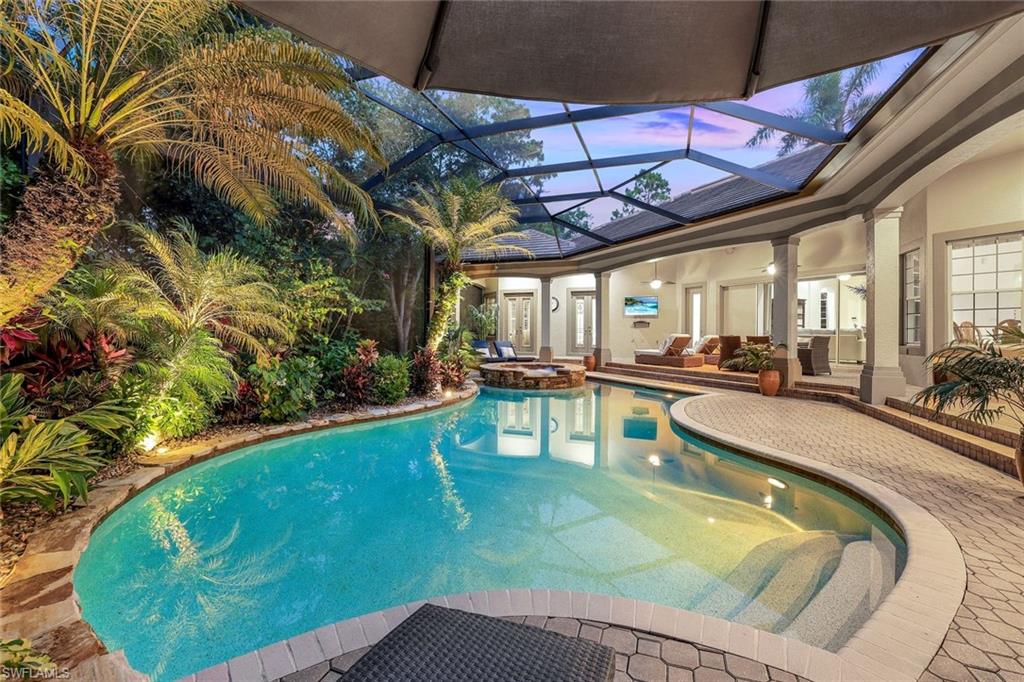Exceptional beauty in an unmatched setting! This elegant residence gracefully blends luxury and natural beauty, in the private and highly desirable community of Collier’s Reserve, just minutes from the heart of Naples and Florida’s Gulf Coast beaches. From the moment you arrive, the extraordinarily beautiful street lined with towering live oak trees sets a charming and sophisticated tone, welcoming you to this expansive 4,110 sqft, 3-bedroom, 4.5-bathroom home surrounded by vibrant landscaping on a nearly half acre lot. The inviting sounds of the tiered entry fountain greets you, as you step inside to find soaring ceilings and a spacious layout with large windows overlooking the pool lanai. The elegant, formal living and dining areas are ideal for entertaining, while the heart of the home features an open floor plan where the family room, spacious kitchen, and billiards area flow seamlessly, overlooking the resort-style pool and lanai framed by tropical landscaping. A perfect layout to enjoy the indoor/outdoor lifestyle coveted by southwest Florida residents. The primary suite is a perfect retreat, complete with private lanai access and an expansive en-suite bath with private garden area. The home also features two versatile dens offering ideal spaces for a home office, library, or reading room - one overlooking the peaceful front garden with charming fountain features a large built-in bookcase. A three-car garage adds convenience to this elegant, well-appointed home. As a resident of Collier’s Reserve, you’ll enjoy more than just a beautiful home, you’ll be part of a truly special lifestyle. This boutique, private country club community offers a rich array of amenities, including a spectacular Arthur Hills-designed golf course, tennis and pickleball courts, bocce courts, a state-of-the-art fitness center, and even the unique ability to paddle from the Cocohatchee River to the Gulf of Mexico. The club fosters a warm, welcoming atmosphere with personalized service and vibrant social connections, all located within 450 acres of protected natural beauty - recognized as the world’s first Audubon International Signature Sanctuary.