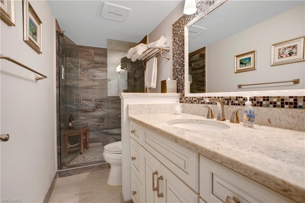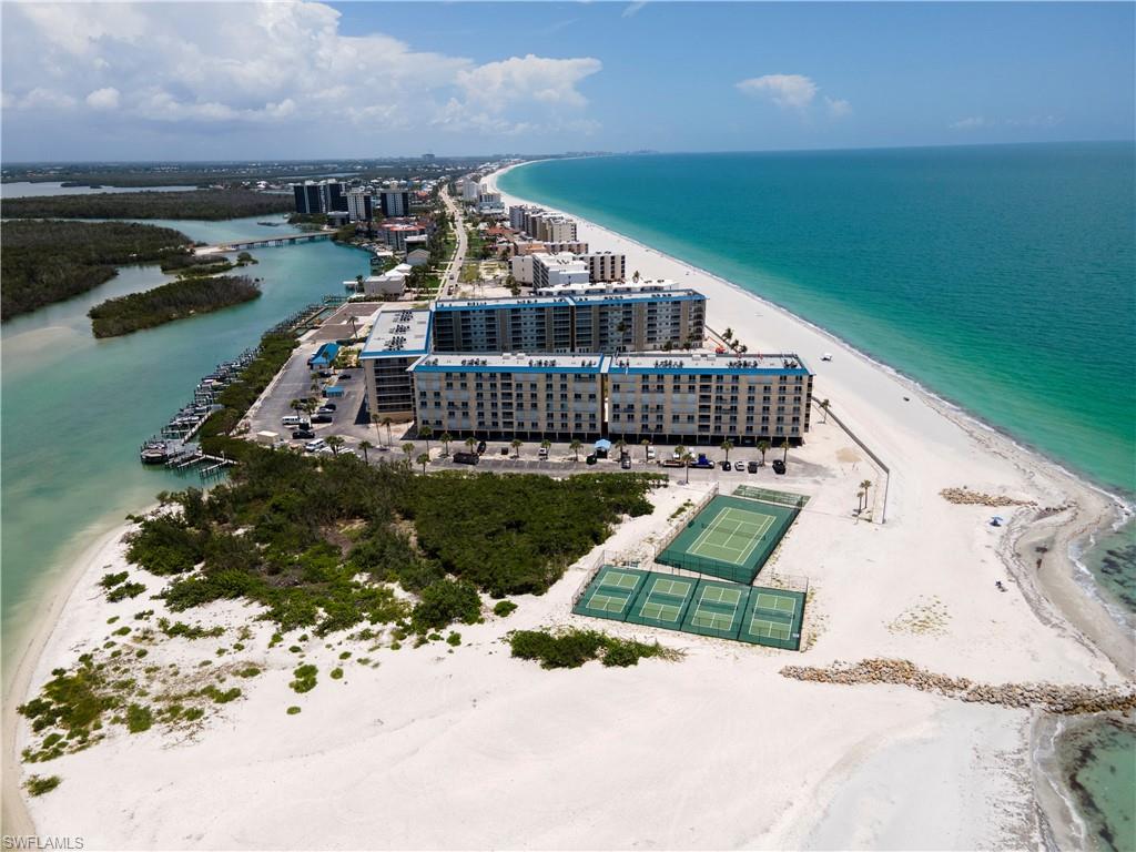~~STUNNING GULF VIEWS...EXQUISITE RENOVATION...ON THE SAND! PLUS AMENITIES GALORE: FITNESS CENTER, TENNIS/PICKLEBALL, HUGE BEACHSIDE POOL, GAME ROOMS, FISHING PIER, & DOCKS TO PURCHASE/LEASE...YES, YOU CAN HAVE ALL OF THIS & MORE AT BONITA BEACH CLUB E-352~~ ~THE CONDO: This private, End Unit, BBC E-352, is tucked away at the end of the E building with no walk-through traffic, additional SF compared to the interior units (1181 vs 1098) + larger balcony, & only 2 flights of stairs (or elevator) to sink your toes in the sugar sand! This stunning remodel boasts new Ceiling Treatments throughout, including wood plank ceilings in bedrooms and coffered ceiling treatment in the dining/kitchen area. Luxury Vinyl Plank Flooring, Plantation Shutters, Impact sliders/windows, Crown Molding, new ceiling fans, diming puck lighting, Craftsman Doors, Trane A/C (2019), Hot Water Tank-(being installed now), new breakers in electrical panel (2020), & newer full size washer/dryer. ~THE KITCHEN: Enlarged wrap-around kitchen with white Brazilian Quartz Counters, refurbished soft-close wood cabinetry, subway tile backsplash, stainless appliances, & views of the Gulf! ~BATHROOMS: Both baths with custom tile showers, heavy glass shower doors, new vanities, lighting, and fixtures. ~THE BEDROOMS: both bedrooms are very spacious, have sliders out to the open back balcony, & walk-in closets. ~THE VIEWS: Stunning views of the Gulf, the lush courtyard, and pool all from your front balcony and also from the kitchen! Gulf & Bay views from the back bedroom balconies. ~THE AMENITIES: There is not a community on Bonita Beach with such an Abundance of Amenities as BBC: (all amenities are brand new) beachside Tennis/Pickle Ball, huge Fitness Center, 3 stunning Community Rooms, BBQ area, Library, Sparkling Beach Side POOL-(largest on beach), On-Site Manager, Game Room with Billiards, Ping Pong, Fuse ball, Arcade Games and more! Community Fishing Pier, and lease or purchase a dock to explore the Gulf & Bay! ~THE LOCATION: Nestled at the very tip of the private Little Hickory Island where the Beach and Bay meet is the Gated Community of Bonita Beach Club! Surrounded by both beach and bay, this unique property allows for beach bathing and boating all on the same property! Bike the island, walk the newly refurbished & wider sandy beach, walk/bike/boat/ or drive to the nearby restaurants and shopping. 30 minutes to the airport! ~THE BUILDING: Is in the process of some final repairs, a 4' wall installed surrounding the beachside of the property, refurbished pool already in use, new roof in 2021, pool house to be built near pool, beautiful courtyard landscaping, and lastly the parking lot paving/pavers to begin work soon. ~Storage closet & high-end designer furniture included to complete this Perfect Package! For the most discerning buyer...must be seen to be appreciated! ~WELCOME TO PARADISE~