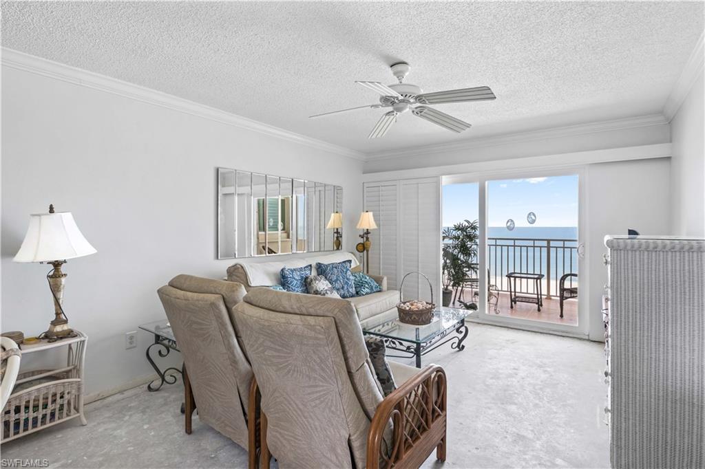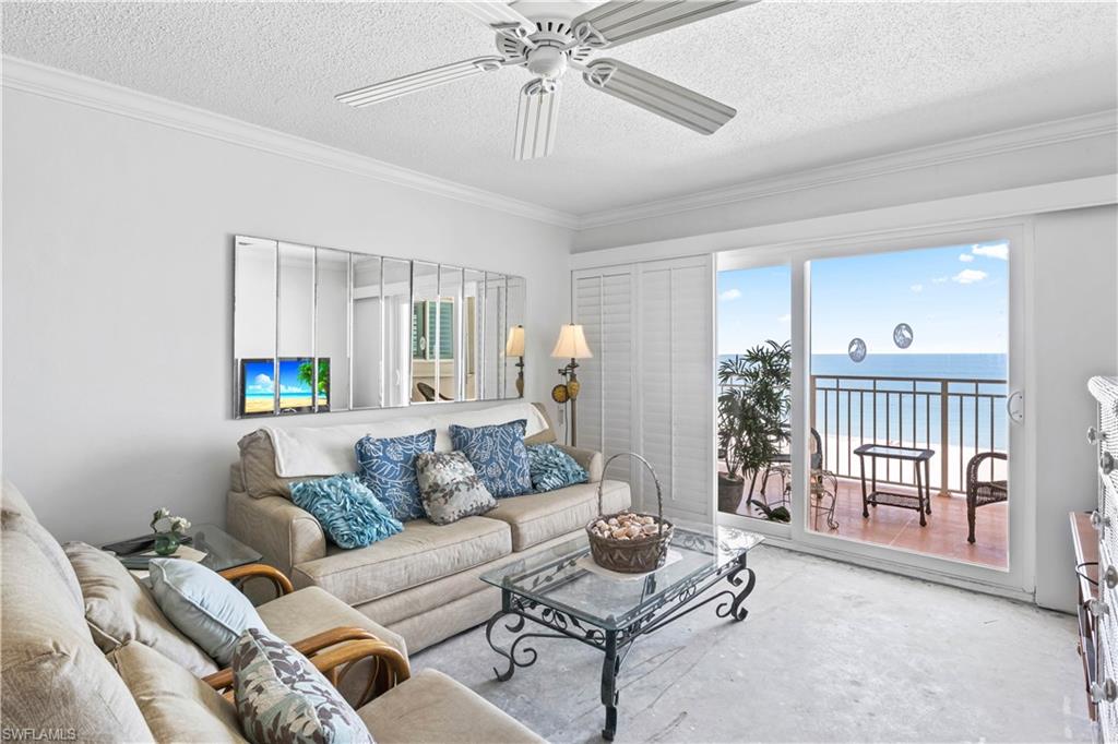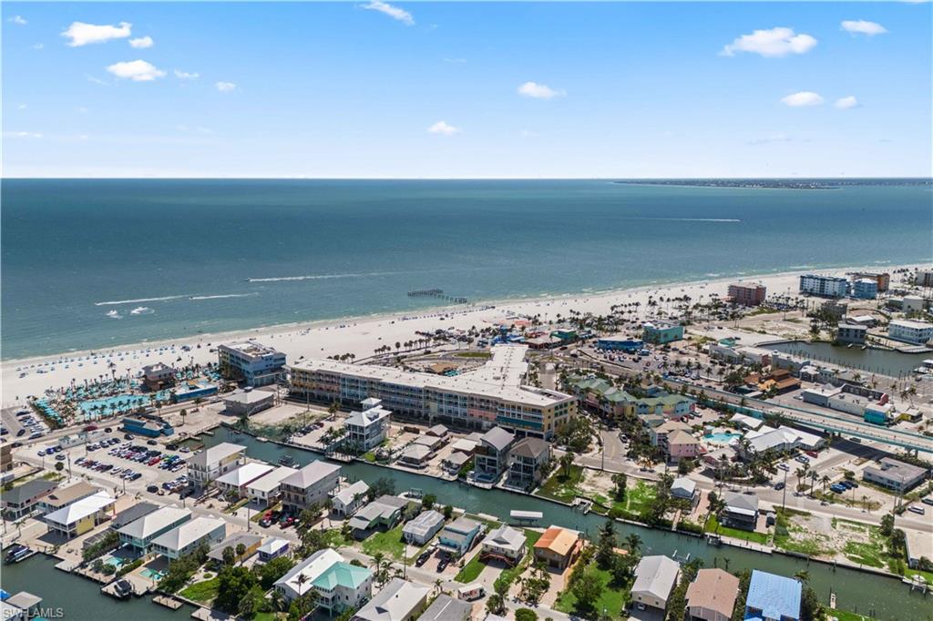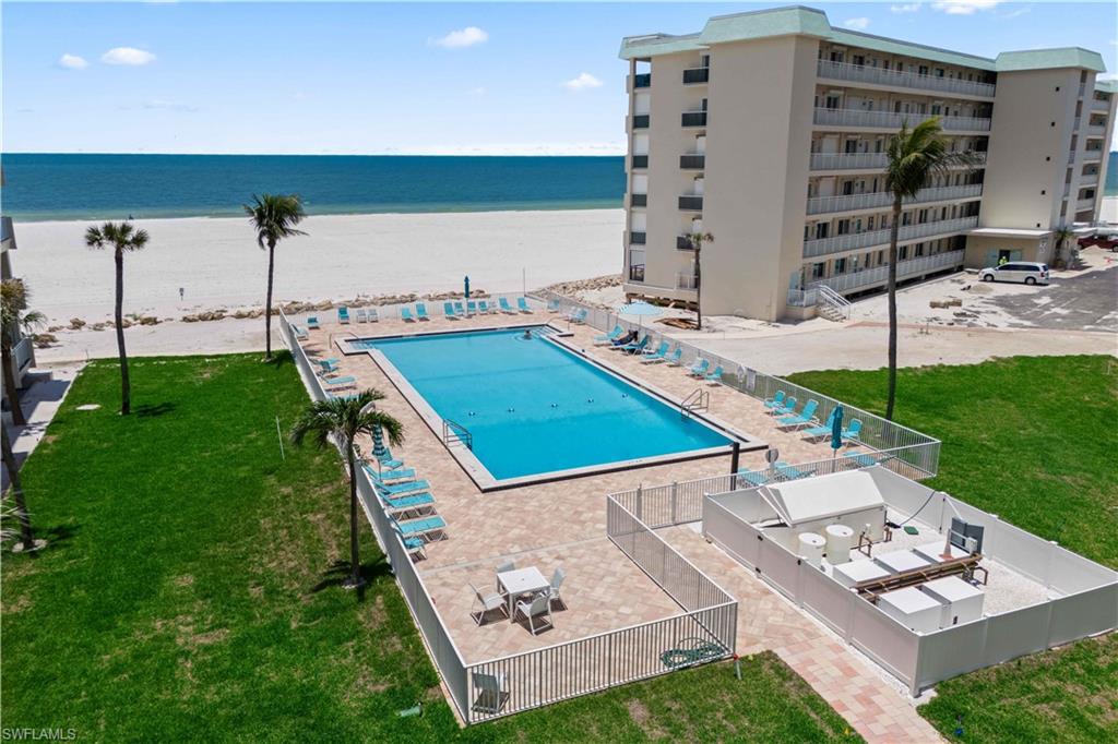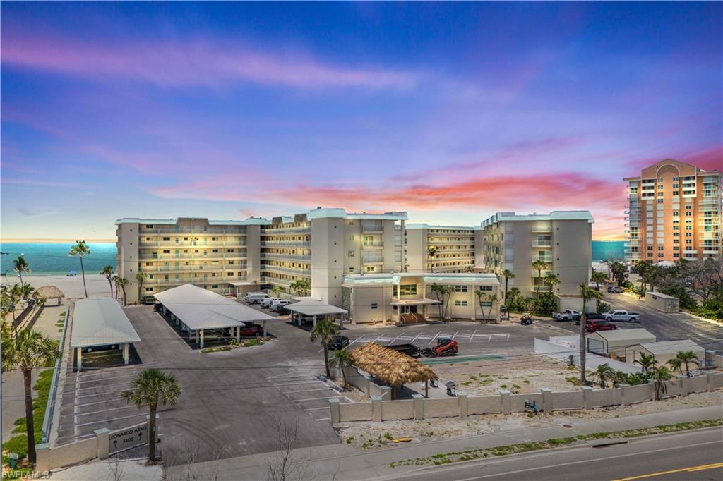 Welcome to 7400 Estero Blvd #603, a stunning beachfront penthouse nestled in the heart of Fort Myers Beach. Located on the sixth floor of the highly sought-after Leonardo Arms Beach Club, this beautiful two-bedroom, two-bathroom residence offers sweeping views of the Gulf of Mexico and direct access to sugar-white sands. Inside, you'll find a spacious and well-designed layout featuring a split-bedroom floor plan, offering privacy and comfort for both residents and guests. Each bedroom includes an en-suite bathroom and a generous walk-in closet, blending everyday convenience with a touch of luxury. The bright and open living area flows seamlessly onto a private balcony—an ideal spot to unwind while enjoying breathtaking sunsets, ocean breezes, and the soothing sound of waves. This unit has been completely painted throughout, offering a fresh, modern feel and providing a clean canvas ready for your personal finishing touches on the flooring. The kitchen comes fully equipped with modern appliances, and the condo is offered partially furnished, making it move-in ready or a great option for a vacation rental. Recent community upgrades include new plumbing, roofing, and exterior enhancements, ensuring long-term peace of mind. Amenities at Leonardo Arms include a heated beachfront pool, shuffleboard courts, and a welcoming community room for social gatherings. Located on the quieter south end of Fort Myers Beach, the condo is directly across from Santini Marina Plaza, featuring a variety of restaurants, boutique shops, a farmers market, and marina access. You’ll also enjoy easy access to Lovers Key State Park, Bonita Beach, and Naples, making this the perfect home base for beach lovers and outdoor enthusiasts. Whether you're seeking a seasonal retreat, full-time residence, or income-generating investment, this beautiful condo offers the ideal opportunity to own your own slice of paradise on Fort Myers Beach.
