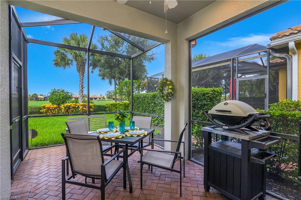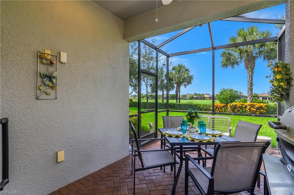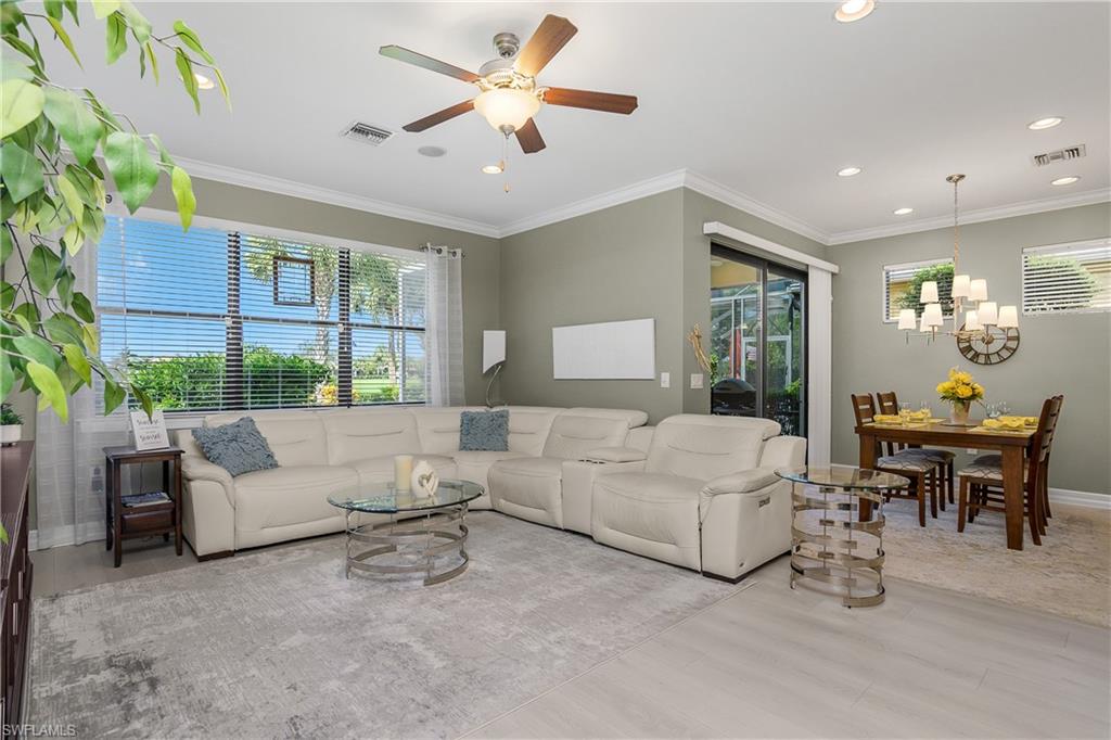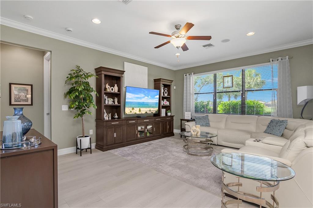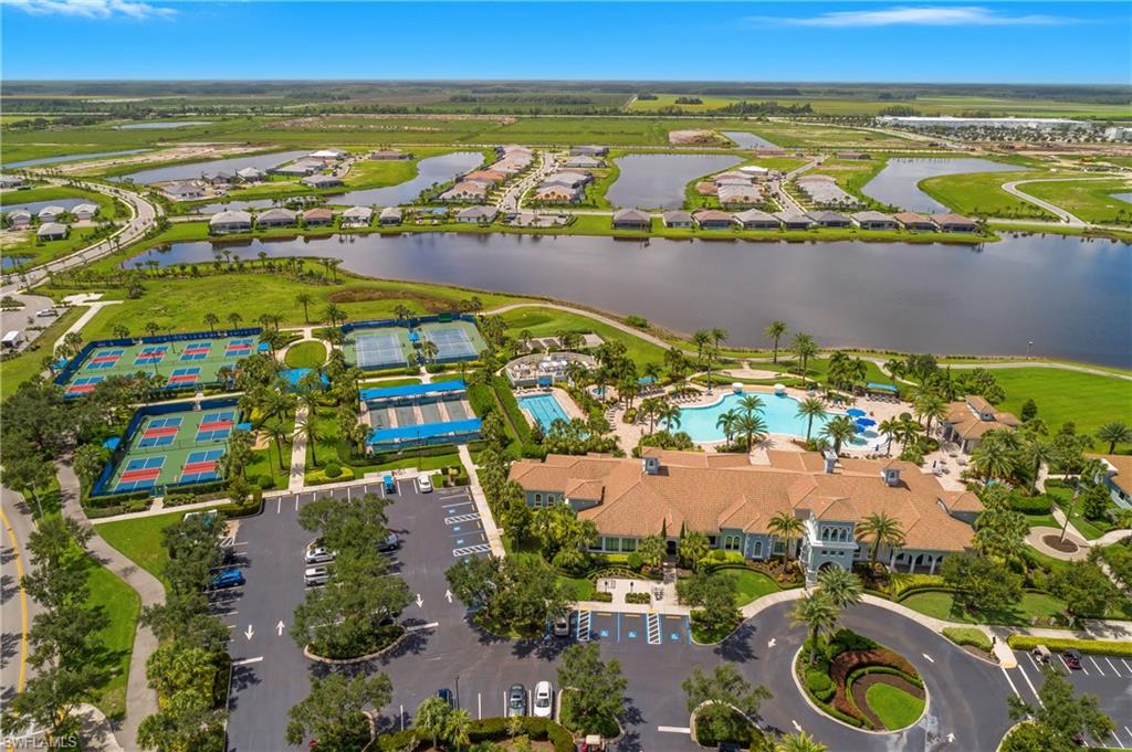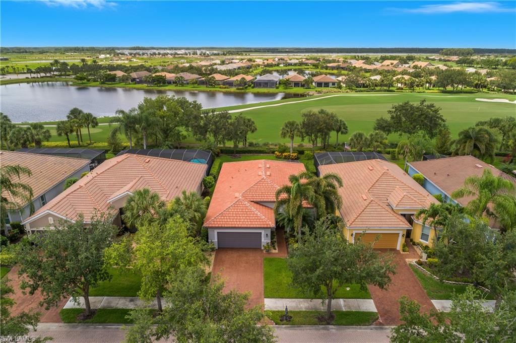 BEST PRICED!!! "DISCOVER YOUR FLORIDIAN DREAM" with this outstanding 2015, 2+Den, 2 Bath, 2 car garage, Castle Rock floor plan home in the gated community of Del Webb in Ave Maria. Freshly painted on the exterior and with an outstanding architectural curb appeal and landscaping. This will make anyone’s head turn twice for a second look! Your home sits towards the end of a cul-de-sac, where road traffic is at a minimum. From your home, your community clubhouse and the "Rusty Putter"Restaurant, along with all activities, is only a very short walk away. Turning into your driveway, your freshly sealed pavers give the appearance of them looking like new as you pull towards your spacious 2 car garage. Stepping out of your car and head towards your charming, covered entryway, you’ll walk along a short sidewalk through the luscious landscape. You’ll immediately discover the soaring 9 ft 4 inch ceilings with custom crown moldings and decorator painted interior Flooring has new Luxury Vinyl Plank (LVP) flooring in the living areas and new carpet in both bedrooms and flex room. There is a 5 inch crown-molding throughout the home and features 5 ceiling fans! Your spacious gourmet kitchen is the pinnacle of your home with a new white quartz counter-top, new pendant lights and large spacious corian dual sink and an INSTANT HOT WATER system and new microwave and refrigerator and elevated dishwasher are also included. Your home also has impact windows throughout and a corner impact resistant slider in the dining area. The spacious Master features a large bathroom with a shower and dual sinks, vanity and oversize closet! Master bedroom also features a Tray Ceiling. When you walk onto your screened-in under-roof lanai with a Southern exposure, the view of the 10th hole fairway and lake will be an enjoyable tranquil scene to relax with at the end of the day. The great feature about this property is that the GOLF MEMBERSHIP at the Panther Run Golf Club IS OPTIONAL with GOLF MEMBERSHIP TRANSFERABLE from the current owner, for a VERY REASONABLE COST, if desired. Del Webb offers a vibrant social calendar, with:"TWO" clubhouses that provide features such as a resort pool, lap pool/jacuzzi, fitness center, pickleball, tennis, bocce courts and a fire pit lounge offers a cozy setting for gatherings. Golf enthusiasts can also perfect their swing with a golf simulator. Del Webb is one of Southwest Florida’s premier 55+ communities in FLOOD ZONE "X". This could be yours TODAY if you call and schedule a showing!