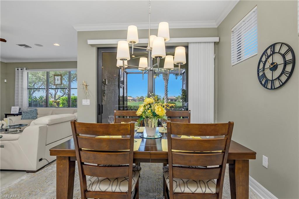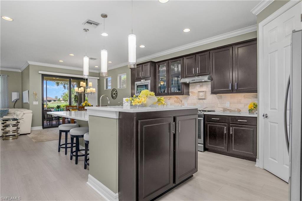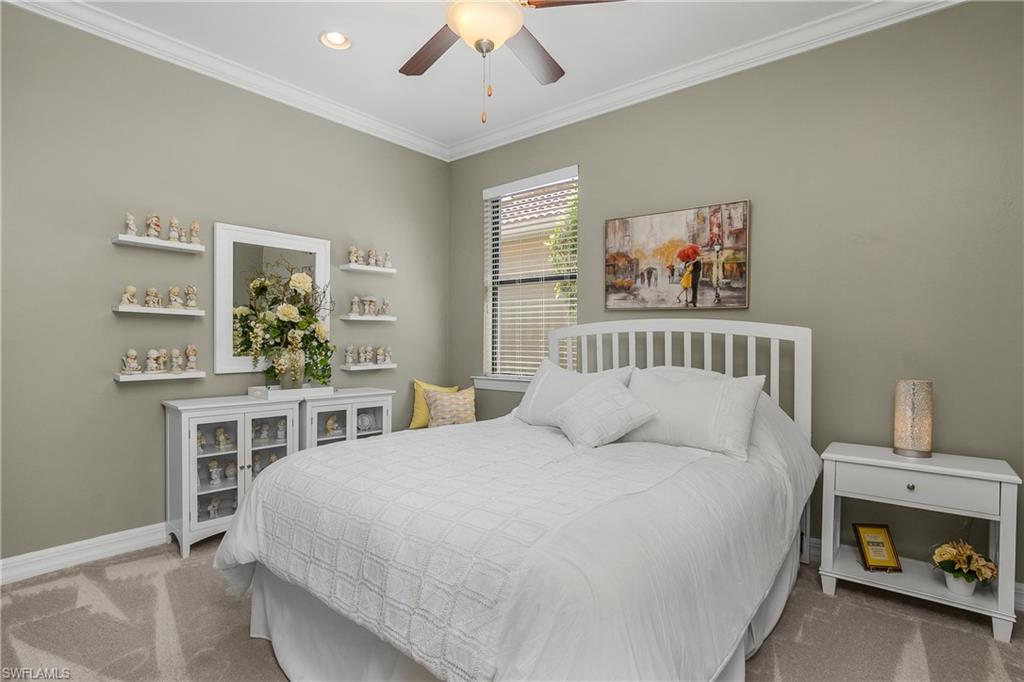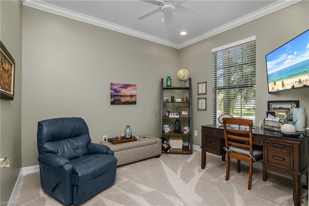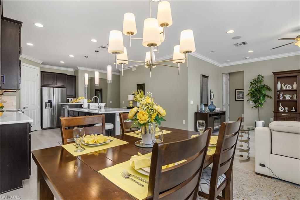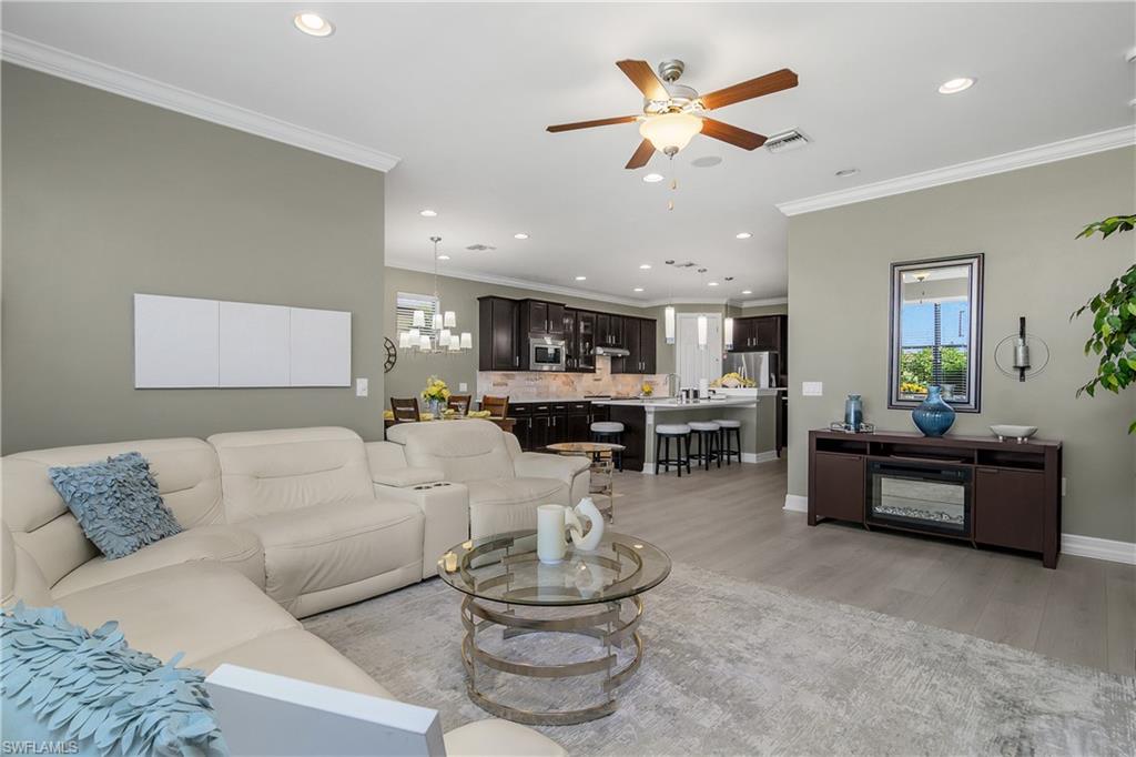 BEST PRICED!!! "DISCOVER YOUR FLORIDIAN DREAM" with this outstanding 2015, 2+Den, 2 Bath, 2 car garage, Castle Rock floor plan home in the gated community of Del Webb in Ave Maria. Freshly painted on the exterior and with an outstanding architectural curb appeal and landscaping. This will make anyone’s head turn twice for a second look! Your home sits towards the end of a cul-de-sac, where road traffic is at a minimum. From your home, your community clubhouse and the "Rusty Putter"Restaurant, along with all activities, is only a very short walk away. Turning into your driveway, your freshly sealed pavers give the appearance of them looking like new as you pull towards your spacious 2 car garage. Stepping out of your car and head towards your charming, covered entryway, you’ll walk along a short sidewalk through the luscious landscape. You’ll immediately discover the soaring 9 ft 4 inch ceilings with custom crown moldings and decorator painted interior Flooring has new Luxury Vinyl Plank (LVP) flooring in the living areas and new carpet in both bedrooms and flex room. There is a 5 inch crown-molding throughout the home and features 5 ceiling fans! Your spacious gourmet kitchen is the pinnacle of your home with a new white quartz counter-top, new pendant lights and large spacious corian dual sink and an INSTANT HOT WATER system and new microwave and refrigerator and elevated dishwasher are also included. Your home also has impact windows throughout and a corner impact resistant slider in the dining area. The spacious Master features a large bathroom with a shower and dual sinks, vanity and oversize closet! Master bedroom also features a Tray Ceiling. When you walk onto your screened-in under-roof lanai with a Southern exposure, the view of the 10th hole fairway and lake will be an enjoyable tranquil scene to relax with at the end of the day. The great feature about this property is that the GOLF MEMBERSHIP at the Panther Run Golf Club IS OPTIONAL with GOLF MEMBERSHIP TRANSFERABLE from the current owner, for a VERY REASONABLE COST, if desired. Del Webb offers a vibrant social calendar, with:"TWO" clubhouses that provide features such as a resort pool, lap pool/jacuzzi, fitness center, pickleball, tennis, bocce courts and a fire pit lounge offers a cozy setting for gatherings. Golf enthusiasts can also perfect their swing with a golf simulator. Del Webb is one of Southwest Florida’s premier 55+ communities in FLOOD ZONE "X". This could be yours TODAY if you call and schedule a showing!
