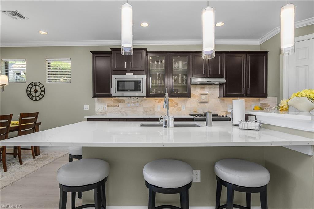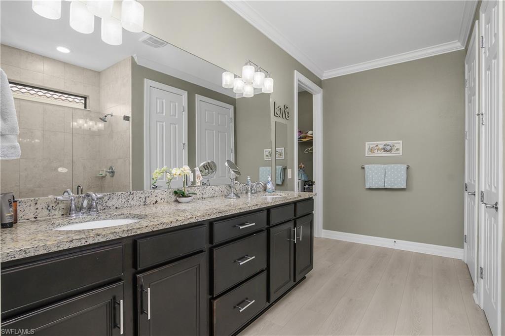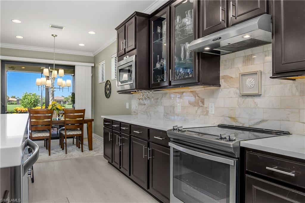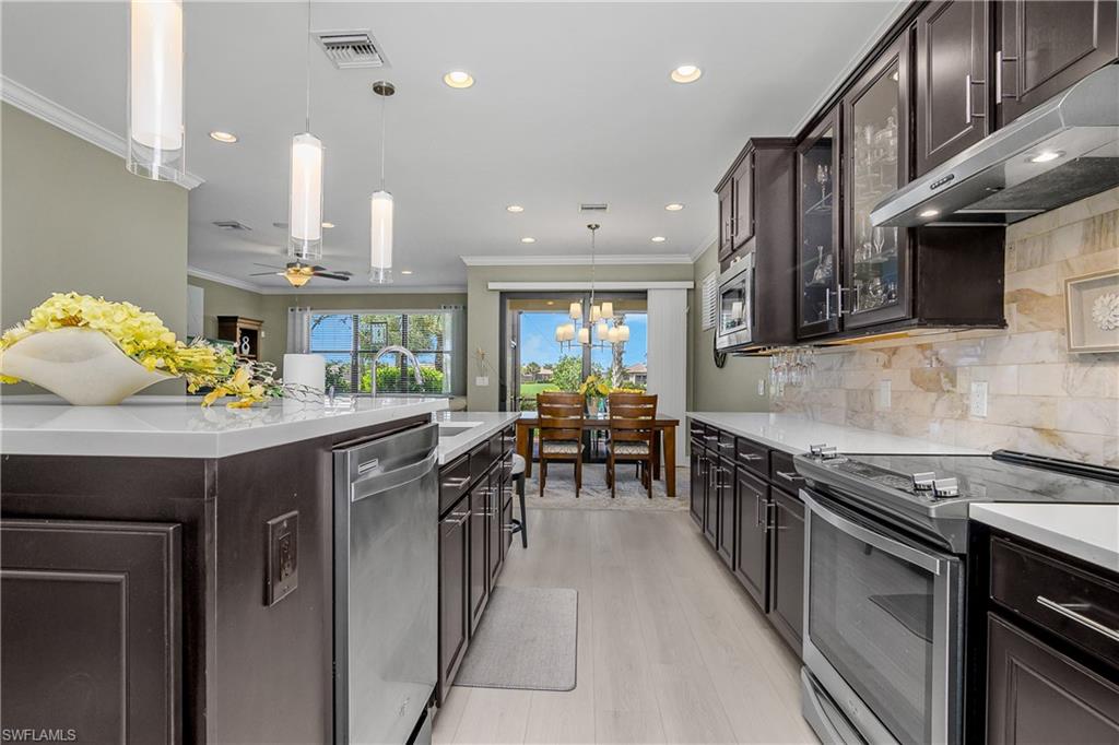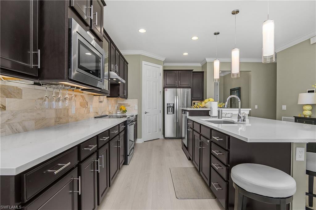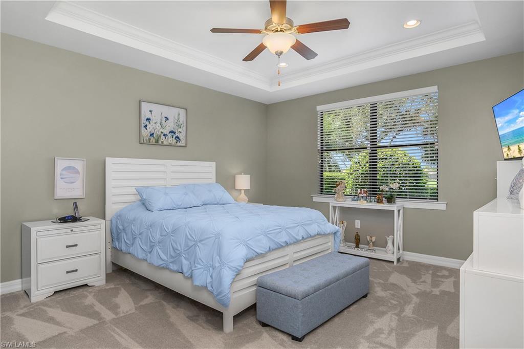 BEST PRICED!!! "DISCOVER YOUR FLORIDIAN DREAM" with this outstanding 2015, 2+Den, 2 Bath, 2 car garage, Castle Rock floor plan home in the gated community of Del Webb in Ave Maria. Freshly painted on the exterior and with an outstanding architectural curb appeal and landscaping. This will make anyone’s head turn twice for a second look! Your home sits towards the end of a cul-de-sac, where road traffic is at a minimum. From your home, your community clubhouse and the "Rusty Putter"Restaurant, along with all activities, is only a very short walk away. Turning into your driveway, your freshly sealed pavers give the appearance of them looking like new as you pull towards your spacious 2 car garage. Stepping out of your car and head towards your charming, covered entryway, you’ll walk along a short sidewalk through the luscious landscape. You’ll immediately discover the soaring 9 ft 4 inch ceilings with custom crown moldings and decorator painted interior Flooring has new Luxury Vinyl Plank (LVP) flooring in the living areas and new carpet in both bedrooms and flex room. There is a 5 inch crown-molding throughout the home and features 5 ceiling fans! Your spacious gourmet kitchen is the pinnacle of your home with a new white quartz counter-top, new pendant lights and large spacious corian dual sink and an INSTANT HOT WATER system and new microwave and refrigerator and elevated dishwasher are also included. Your home also has impact windows throughout and a corner impact resistant slider in the dining area. The spacious Master features a large bathroom with a shower and dual sinks, vanity and oversize closet! Master bedroom also features a Tray Ceiling. When you walk onto your screened-in under-roof lanai with a Southern exposure, the view of the 10th hole fairway and lake will be an enjoyable tranquil scene to relax with at the end of the day. The great feature about this property is that the GOLF MEMBERSHIP at the Panther Run Golf Club IS OPTIONAL with GOLF MEMBERSHIP TRANSFERABLE from the current owner, for a VERY REASONABLE COST, if desired. Del Webb offers a vibrant social calendar, with:"TWO" clubhouses that provide features such as a resort pool, lap pool/jacuzzi, fitness center, pickleball, tennis, bocce courts and a fire pit lounge offers a cozy setting for gatherings. Golf enthusiasts can also perfect their swing with a golf simulator. Del Webb is one of Southwest Florida’s premier 55+ communities in FLOOD ZONE "X". This could be yours TODAY if you call and schedule a showing!