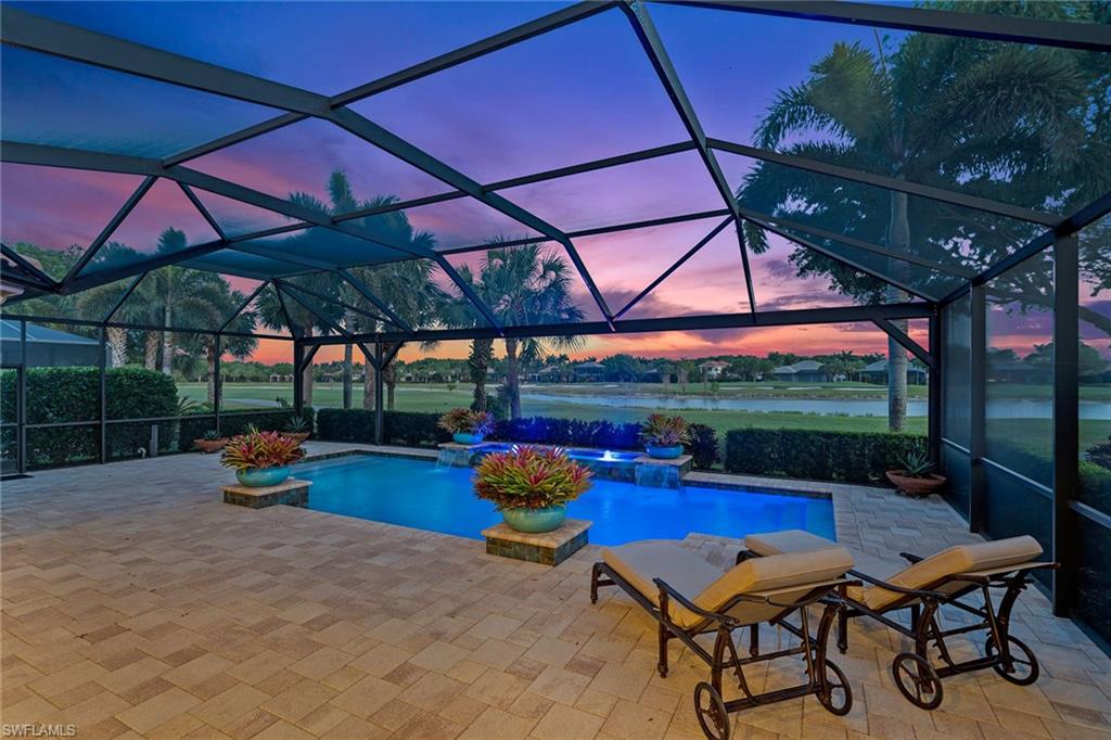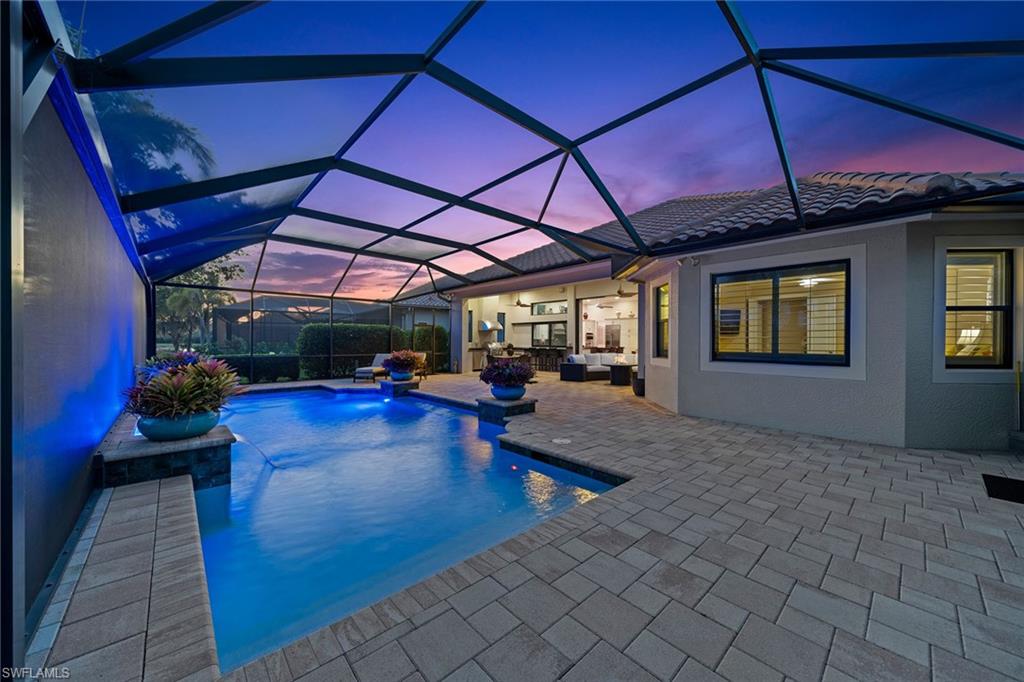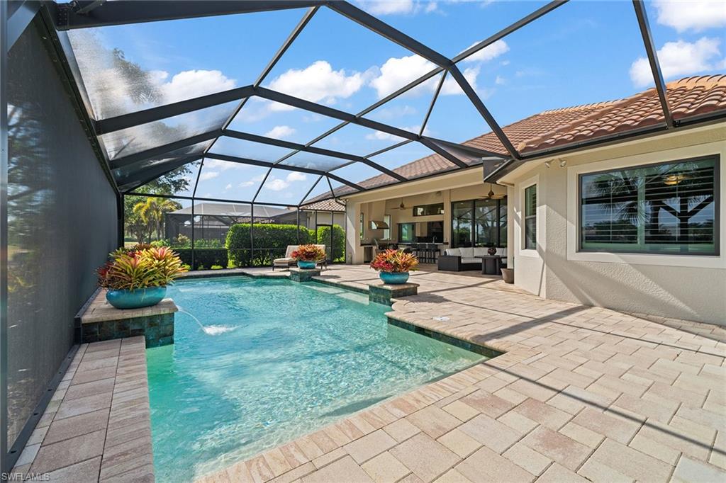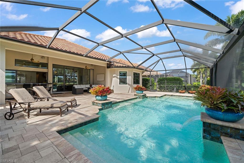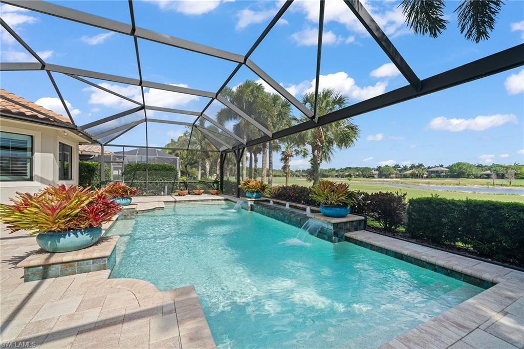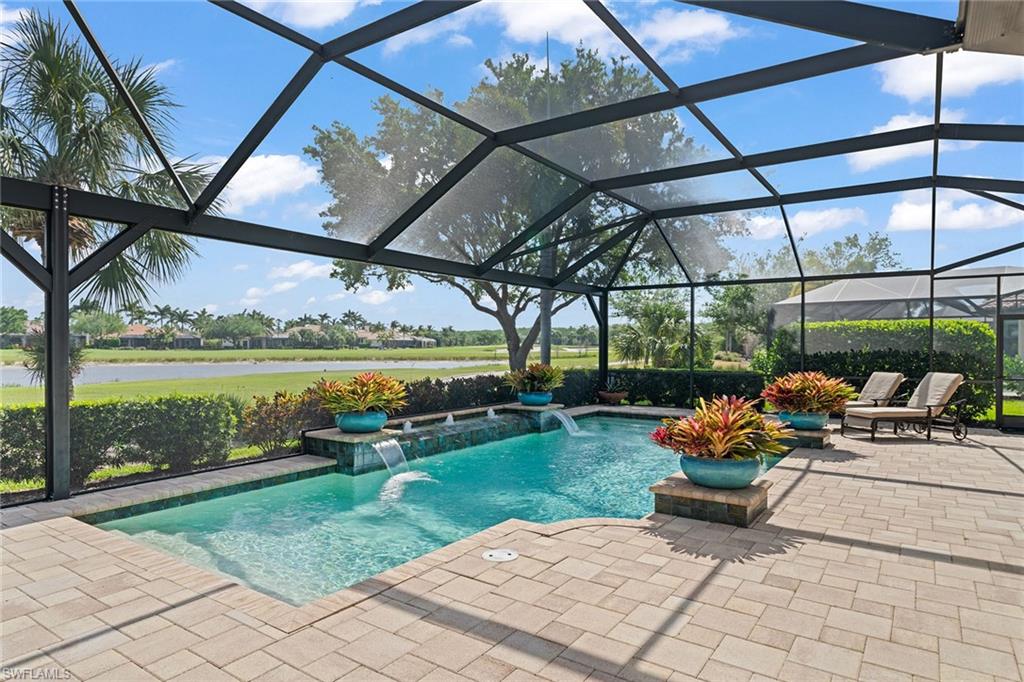 Prime southern exposure residence with a deeded full golf membership in The TwinEagles Club, a prestigious gated community in Naples offering 36 holes of championship golf. This turnkey-furnished home, originally designed as a two-bedroom plus den with 2.5 baths, offers flexible conversion potential to a three-bedroom plus den, three-bath layout. Built by Minto with premium upgrades and selections, the property features refined interior finishes, impact-resistant windows and doors, and a layout that emphasizes privacy and panoramic views. The screened lanai showcases an outdoor kitchen, private pool and water feature, all overlooking uninterrupted golf course and lake vistas. The TwinEagles Club recently completed an extensive clubhouse renovation and amenity enhancement, ensuring residents enjoy resort-level experiences year-round. This residence offers the rare combination of southern exposure, refined luxury appeal and immediate access to the elevated golf lifestyle that defines Naples luxury living.