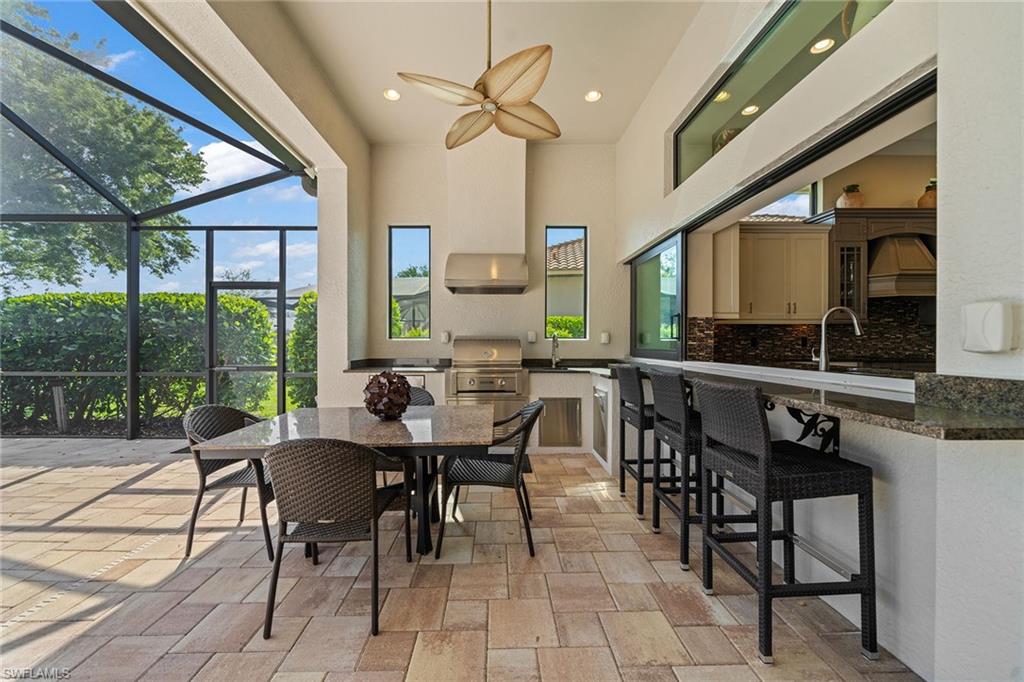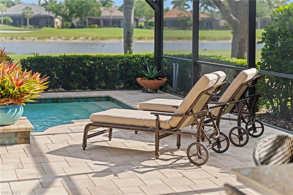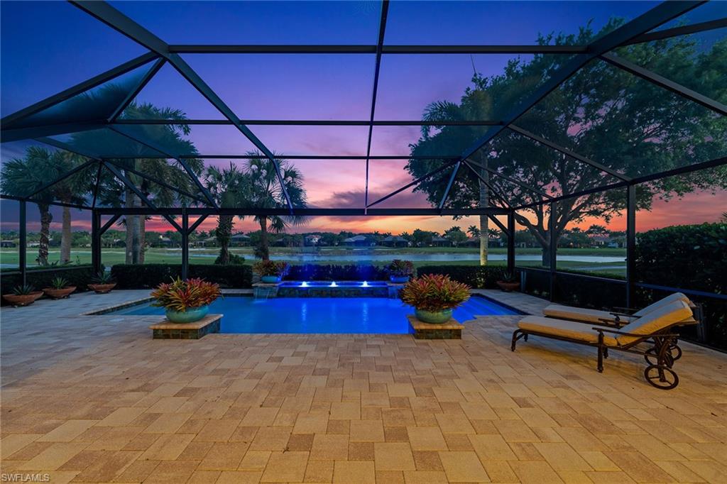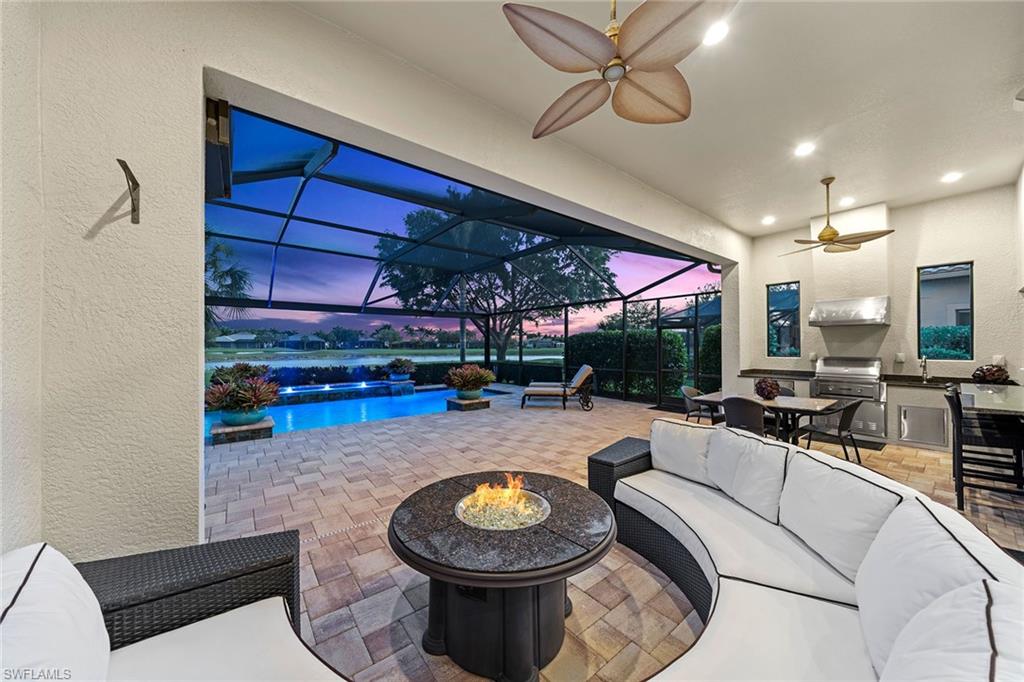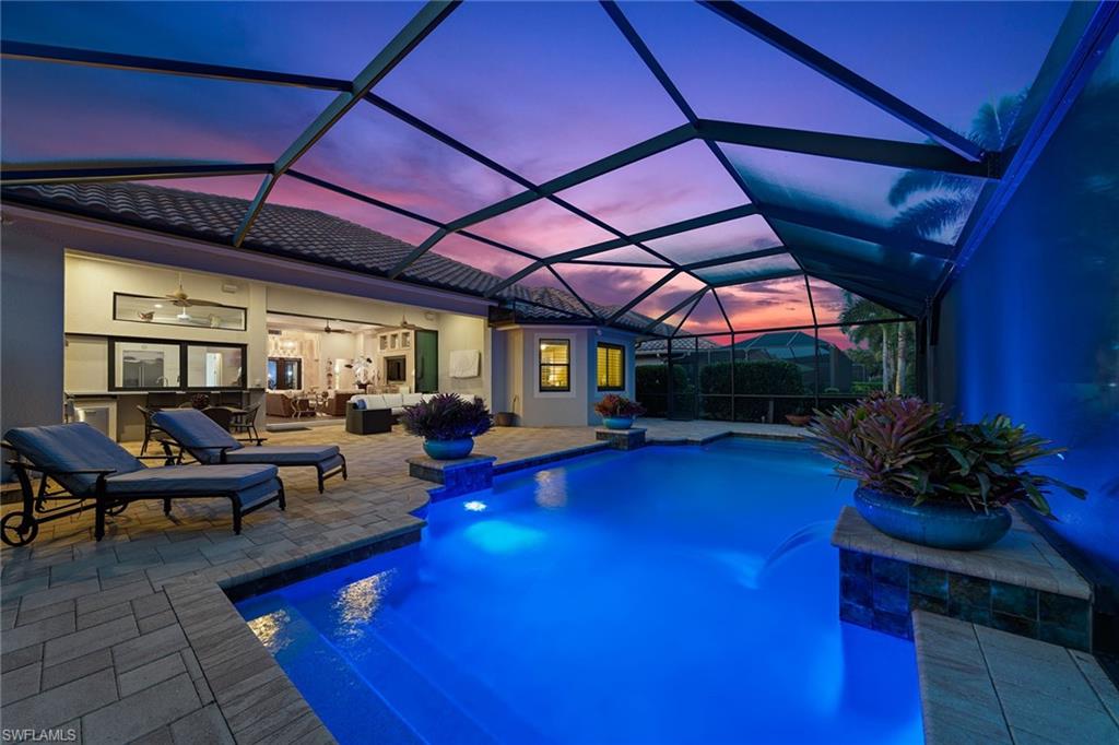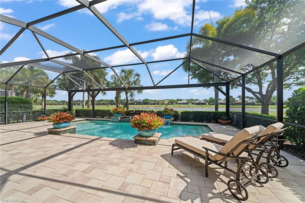 Prime southern exposure residence with a deeded full golf membership in The TwinEagles Club, a prestigious gated community in Naples offering 36 holes of championship golf. This turnkey-furnished home, originally designed as a two-bedroom plus den with 2.5 baths, offers flexible conversion potential to a three-bedroom plus den, three-bath layout. Built by Minto with premium upgrades and selections, the property features refined interior finishes, impact-resistant windows and doors, and a layout that emphasizes privacy and panoramic views. The screened lanai showcases an outdoor kitchen, private pool and water feature, all overlooking uninterrupted golf course and lake vistas. The TwinEagles Club recently completed an extensive clubhouse renovation and amenity enhancement, ensuring residents enjoy resort-level experiences year-round. This residence offers the rare combination of southern exposure, refined luxury appeal and immediate access to the elevated golf lifestyle that defines Naples luxury living.