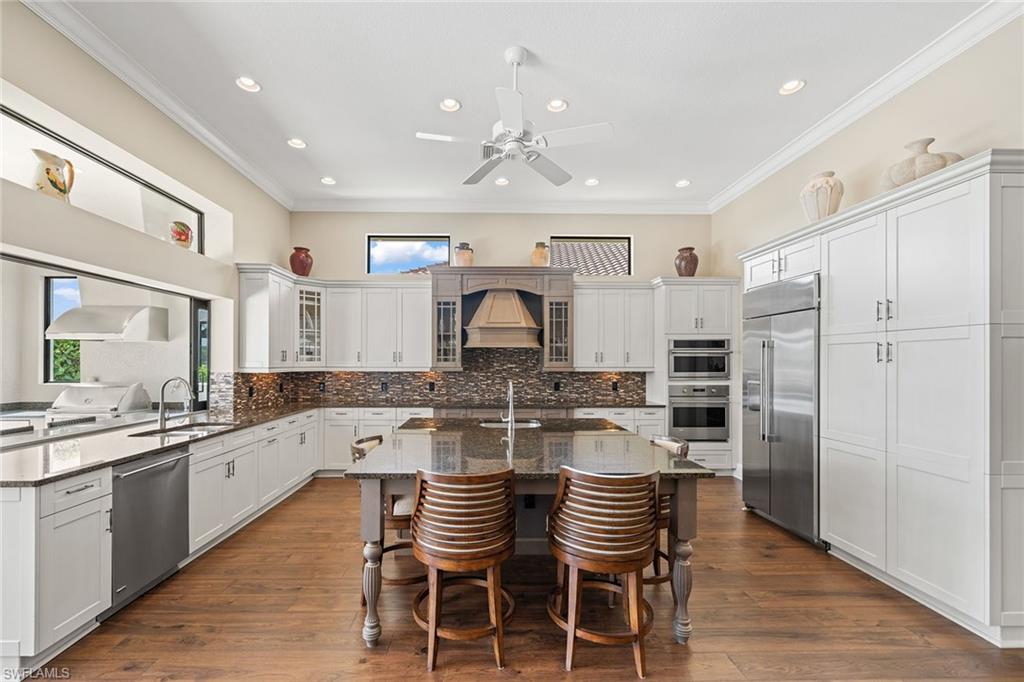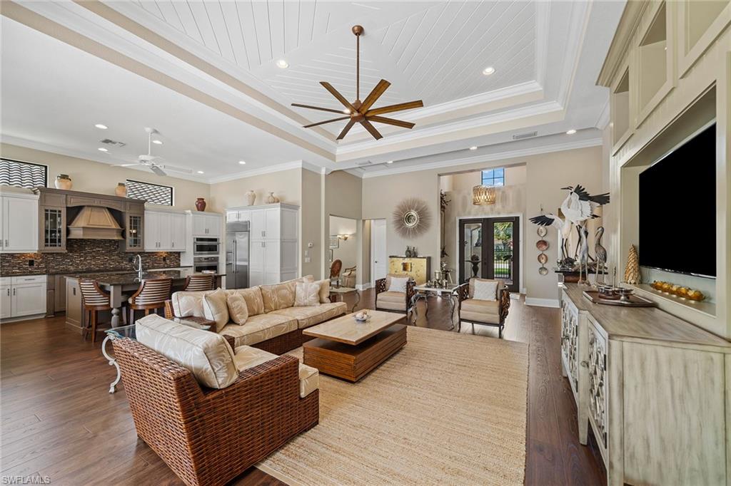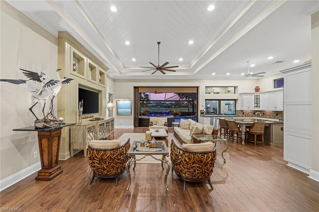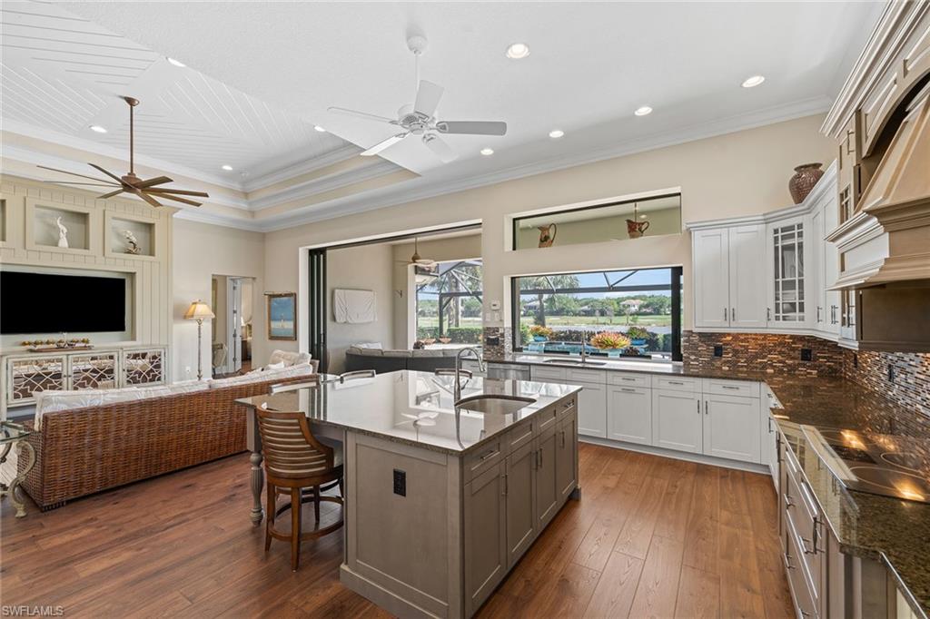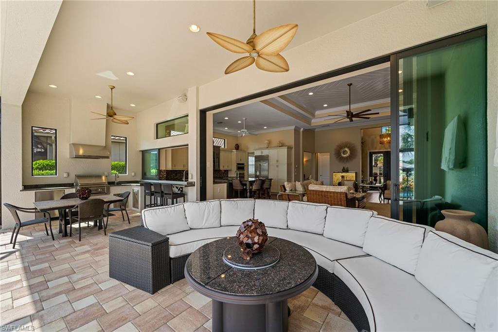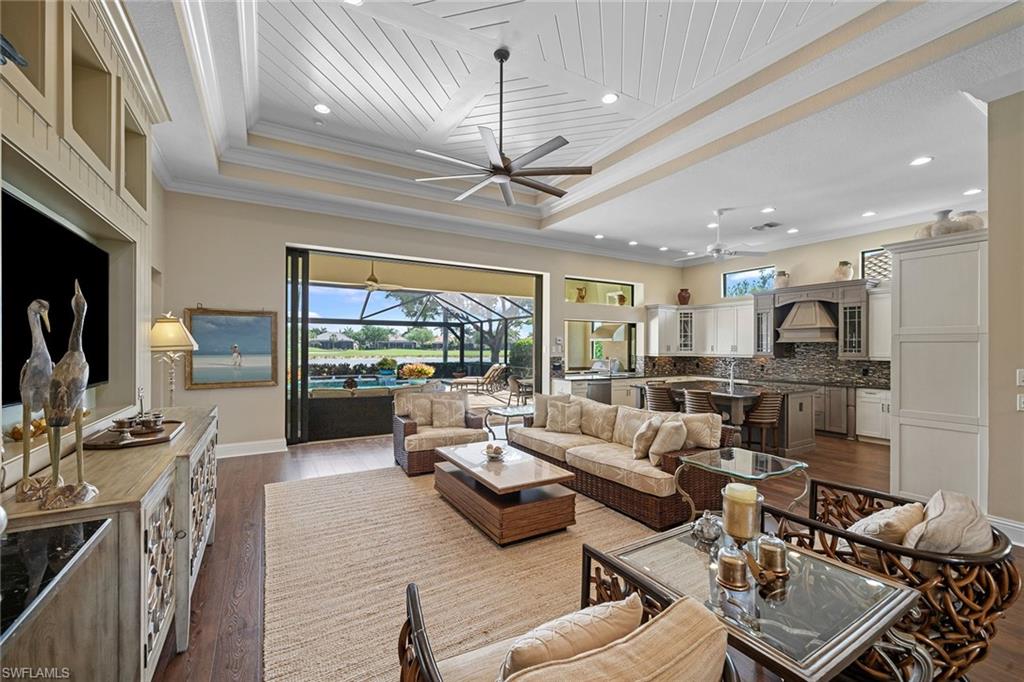 Prime southern exposure residence with a deeded full golf membership in The TwinEagles Club, a prestigious gated community in Naples offering 36 holes of championship golf. This turnkey-furnished home, originally designed as a two-bedroom plus den with 2.5 baths, offers flexible conversion potential to a three-bedroom plus den, three-bath layout. Built by Minto with premium upgrades and selections, the property features refined interior finishes, impact-resistant windows and doors, and a layout that emphasizes privacy and panoramic views. The screened lanai showcases an outdoor kitchen, private pool and water feature, all overlooking uninterrupted golf course and lake vistas. The TwinEagles Club recently completed an extensive clubhouse renovation and amenity enhancement, ensuring residents enjoy resort-level experiences year-round. This residence offers the rare combination of southern exposure, refined luxury appeal and immediate access to the elevated golf lifestyle that defines Naples luxury living.