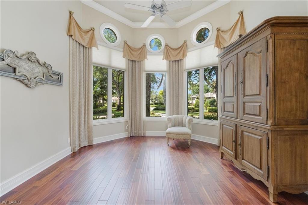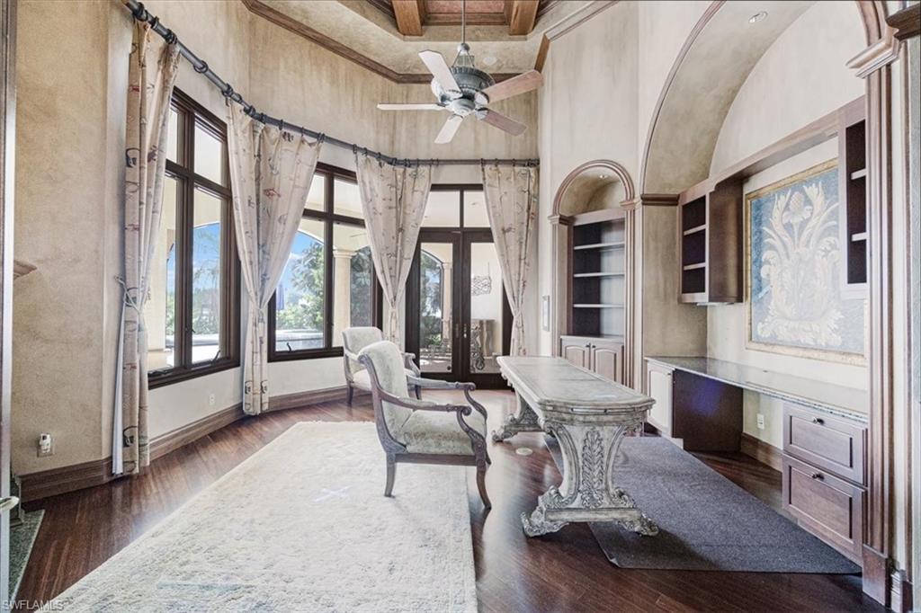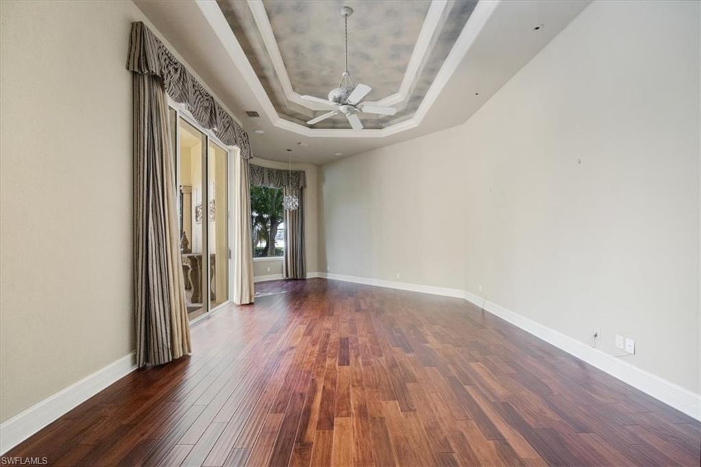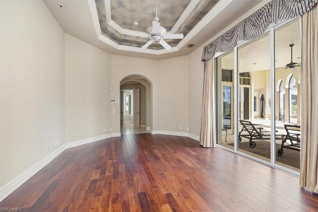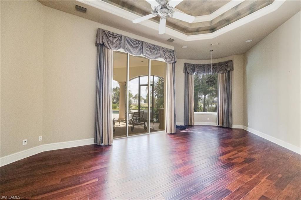 Sitting on a prime golf lake front lot, this custom estate offers 4 spacious bedrooms, his and her primary separate baths and closets, plus an office with 4 full bathrooms and 1 half bathroom. Spread over 6,062 square feet, this is a two-story masterpiece. Notable mentions include an oversized 3 car garage, granite counter-tops, impressive cabinetry, custom light and bathroom fixtures, extensive crown molding, wood ceiling details, Lutron Lighting system, a Home Audio system, and more. Also included is remarkable stone flooring throughout the main living areas of the home as well as wood in the other rooms. The backyard of the home includes an over-sized lanai with a pool and a raised spa, lush landscaping, and a BBQ area complete with a morning kitchen.