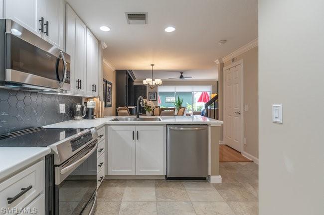 JUST REDUCED THIS incredibly maintained three bedrooms/three bath Cayman townhome located in the gated community of VeronaWalk. The attention to detail is evident throughout and upgrades are all in place. This home is move in ready. A centrally located kitchen with white 42” Shaker cabinetry and designer backsplash is equipped with a new Kohler stainless sink and Frigidaire Gallery smudge proof, stainless appliance package. The induction range offers convection/air-fry abilities. Tasteful paint shades blend beautifully with the LVP and tile flooring. Bedrooms are carpeted. Each bedroom has an ensuite bath and spacious walk-in closet. The second floor laundry houses a full size Samsung washer/dryer duo. Mechanicals include a newer A/C and hot water heater. Electrical and plumbing upgrades have been put in place. Contemporary lighting fixtures and fans have been added both in and out. The exterior of the home was recently painted, gutters installed and a French drain system keeps the home extra dry. Your paver patio oasis has a SunGard No-Seeum screen enclosure surrounding it and connects to a detached two car garage. Accordion and electric shutters, generator outlets, as well as a hurricane rated (2024) garage door keep you storm prepared. This townhome has been placed in FEMA Zone X requiring no flood insurance.