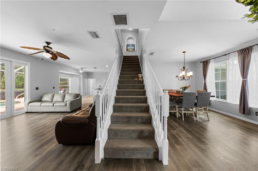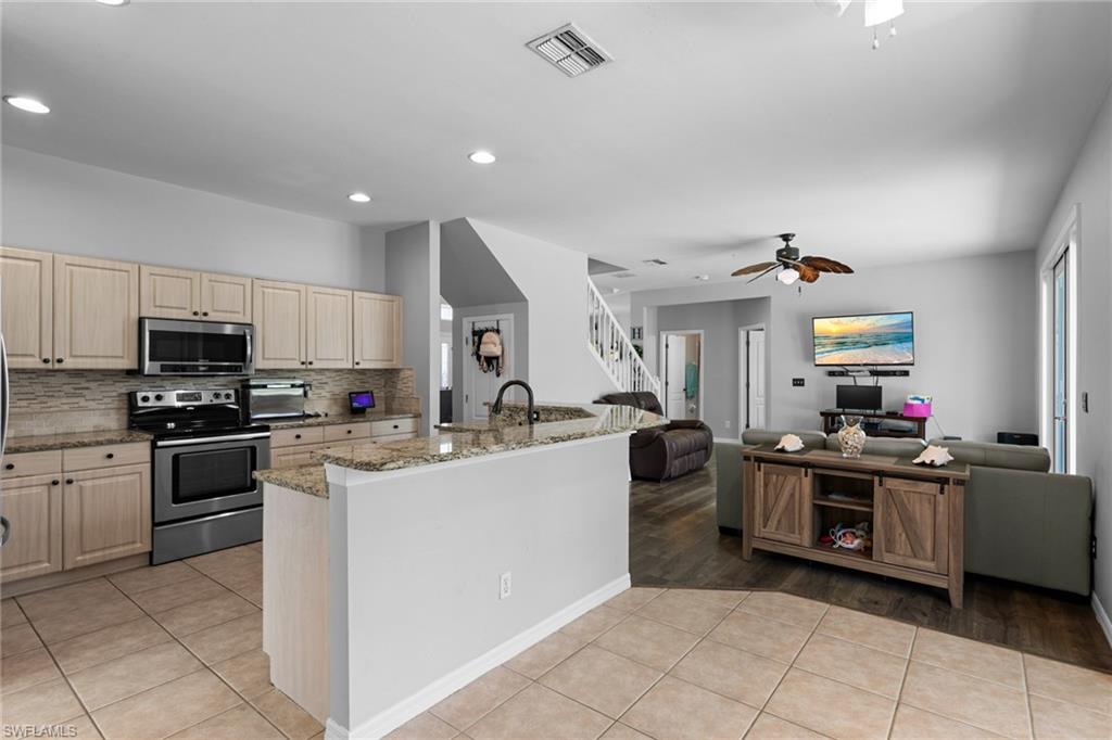 Amazing opportunity to own this spacious 5 bedroom, 3.5 bath pool home in the highly sought-after Stoneybrook community in Estero! This home offers peace of mind with impact glass windows and rear doors (2023) and a recently replaced A/C (2023). The first floor features tile and vinyl flooring throughout, with a full bedroom and bath ideal for guests or a home office. The kitchen is equipped with granite countertops, stainless steel appliances, and a charming breakfast nook with bay window, all overlooking the open family room. Upstairs you’ll find a large loft, three guest bedrooms with a shared full bath, and a generous primary suite with walk-in closet, dual sinks, and separate tub and shower. Enjoy Florida living with your own private heater pool with concrete paver flooring in this amenity-rich, gated public golf community. Stoneybrook amenities offer something for everyone! Enjoy access to an exercise room, 3 community pools, tennis courts, pickleball, volleyball, basketball, bocce ball, a playground, and even a baseball field. The public golf course means you can pay as you play—no membership required. Conveniently located near shopping, dining, I-75, FGCU, beaches, and RSW airport. You're just a short walk to the golf clubhouse, CVS, Publix, Miromar Outlets, and Hertz Arena. With low association fees and a full range of amenities, it’s easy to see why Stoneybrook remains one of Estero’s most popular communities.
