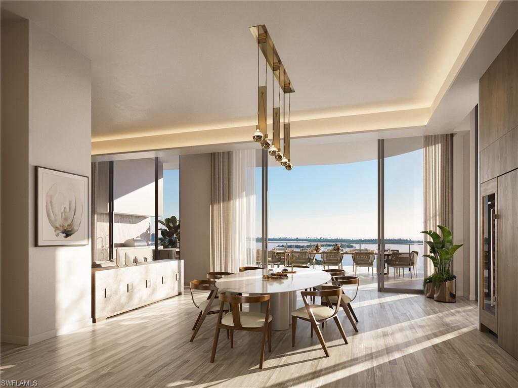 Located along the serene shores of Estero Bay in Southwest Florida and situated within 500 acres of lush lands and unobstructed views of Estero Bay and the Gulf of Mexico, The Ritz-Carlton Residences, Estero Bay stands as a testament to luxury living at its finest. Nestled atop the 22-story property’s North Tower, the 12,790 square foot prestigious residence, the penthouse exudes opulence and sophistication, offering an unparalleled living experience. Spanning an expansive 6,780 square feet of interior space, this residence boasts 4 bedrooms, 5 1/2 baths plus den and gym. From the moment you step inside, you are greeted by soaring ceilings, exquisite finishes, and stunning views. The interior layout is meticulously designed to provide the utmost comfort. Each bedroom is a sanctuary of its own, offering privacy and tranquility, while the primary suite is a true retreat, featuring a lavish ensuite. With nearly as much outdoor space as indoor, it’s sprawling 6,010 square-foot terrace is perfect for entertaining. Step out onto the expansive vistas and discover a world of leisure and relaxation. Indulge in al fresco dining with your custom-designed summer kitchen, unwind in your private spa, or lounge by your poolside cabana. For the discerning car enthusiast, the penthouse includes a three-car garage. Stretching majestically across the waterfront, this unparalleled development will consist of two 22-story striking towers developed by London Bay Development Group and slated for occupancy in 2027. With a total of 224 residences, every detail has been meticulously crafted to provide the epitome of comfort and elegance. As you step into this exclusive enclave, you are greeted by a sense of tranquility and sophistication. Residents are treated to a myriad of amenities, including a sports simulator room, theater, teen and kids club, a luxurious beauty salon and spa, 24-hour concierge, bellman, and valet services. A wellness center with state-of-the-art fitness equipment, a yoga and Pilates studio, a private training section, and locker rooms with steam and sauna. Where indulgence and relaxation converge seamlessly. Enjoy direct access to Saltleaf featuring a 72-boat slip marina, a new 18-hole championship golf course, a 9-hole short course, tennis, pickleball, and a 5-star restaurant. Enjoy the Sunset Lounge, private dining room, and daily continental breakfast at the Sports and News Cafe. Experience waterfront living at its finest, where every sunset marks the beginning of another unforgettable day in paradise where luxury meets coastal splendor.