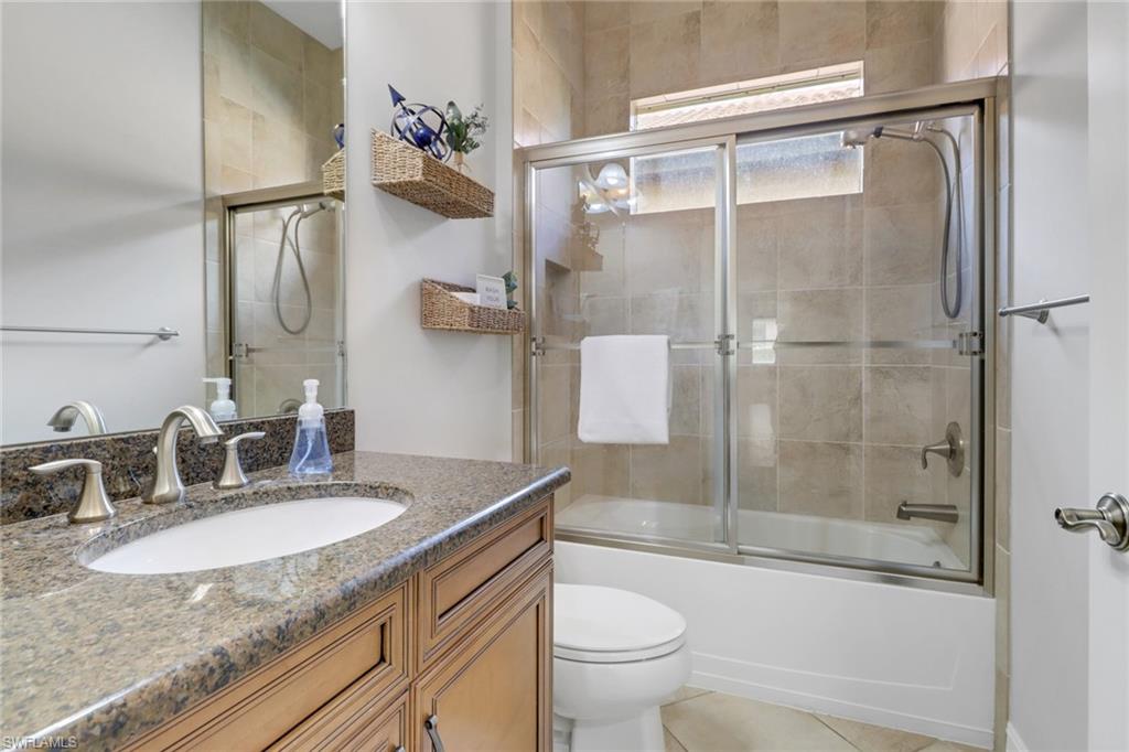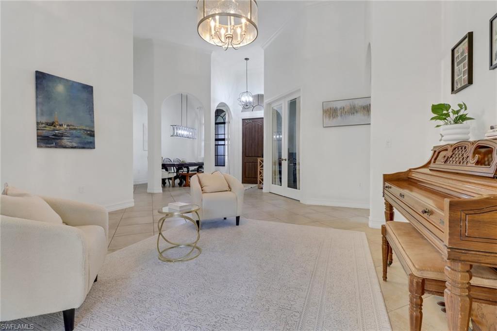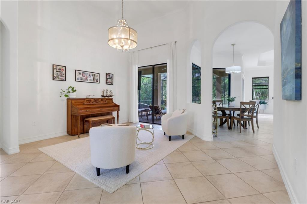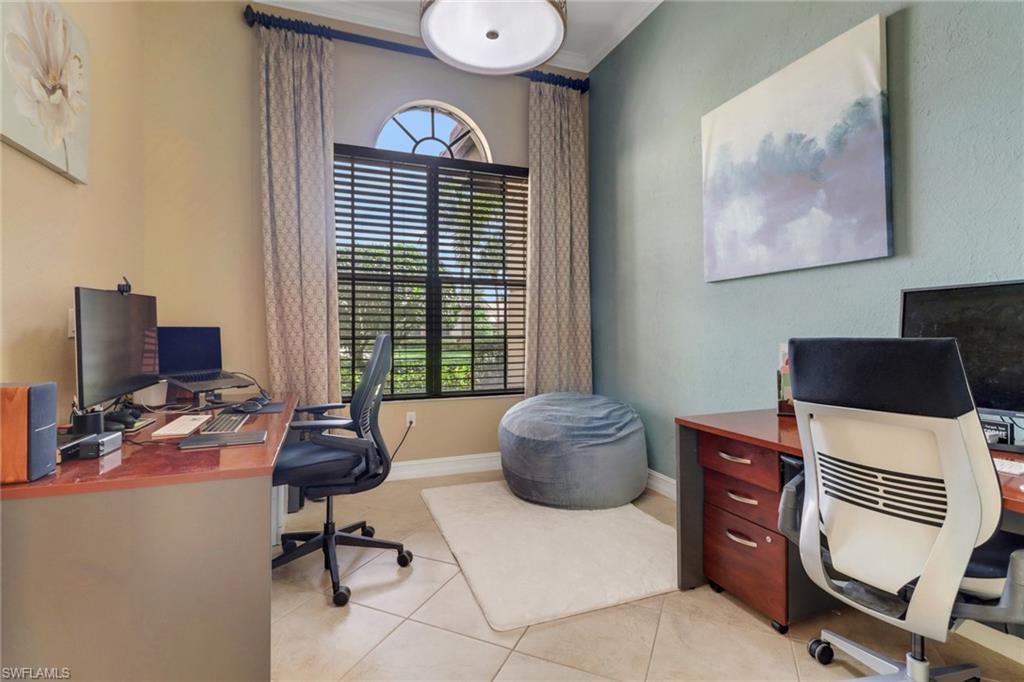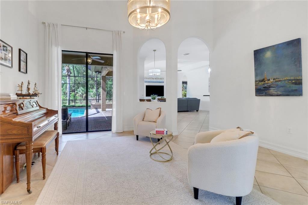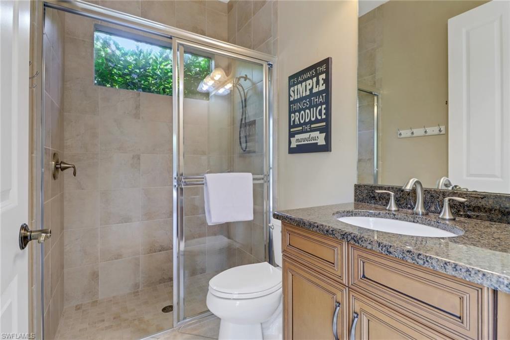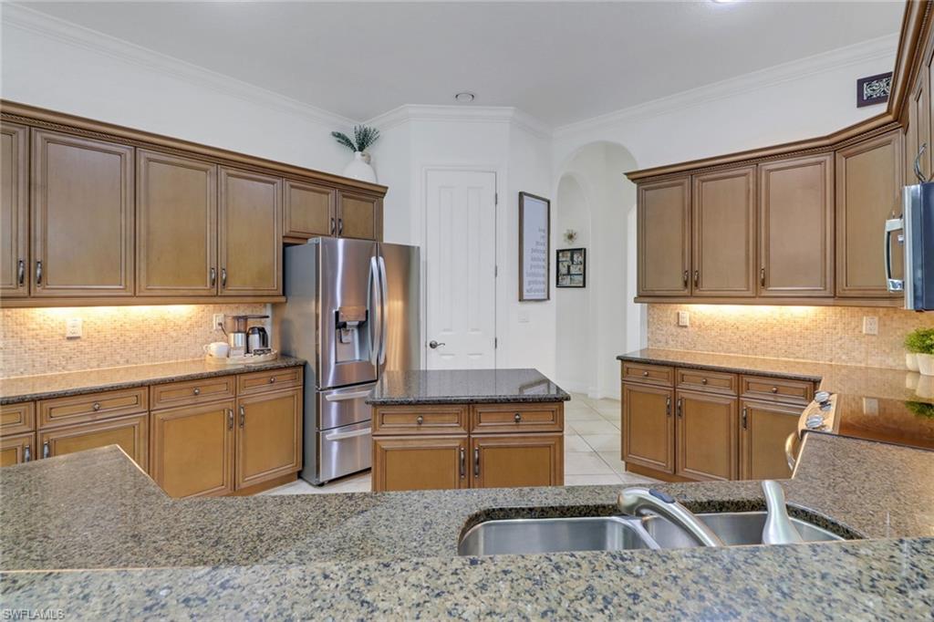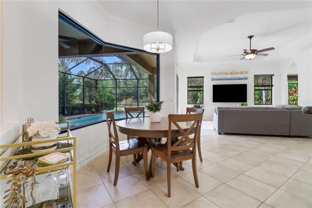 Welcome to 7327 Acorn Way, a beautifully maintained executive home in the highly desirable North Naples community of Black Bear Ridge. This spacious 4-bedroom, 3-bath residence offers a rare blend of luxury, privacy, and convenience within a quiet, gated enclave of just 100 homes. Inside, you’ll find soaring 13-foot ceilings, crown molding, custom faux finishes, and numerous new light fixtures and fans. The open and airy floor plan features light-filled living, dining, and family rooms, along with a dedicated office or den ideal for working from home. The chef’s kitchen is equipped with stainless steel appliances, including a brand-new refrigerator (2025), granite countertops, and 42-inch upper cabinets. A split-bedroom layout ensures comfort and privacy, with a guest suite tucked away in the rear corner offering its own full bathroom with a glass-enclosed shower and lanai access—perfect for visitors or multigenerational living. The oversized, extended screened lanai is a true outdoor retreat, offering exceptional privacy and tranquil views of a lush preserve, peaceful pond, and fountain. The heated saltwater pool and spa, along with a wall-mount for a TV and four access points from the home—including from the master bedroom—make this the ultimate space to relax and enjoy the Florida lifestyle. The spacious master suite features two walk-in closets and a luxurious en-suite bath with dual vanities, a soaking tub, and a large walk-in shower. Additional highlights include a two-zone air conditioning system with a dedicated unit for the master suite, tall garage ceilings that allow for overhead storage, incredibly low insurance costs with no flood insurance required, and a pet-friendly policy allowing dogs of any size. Black Bear Ridge residents enjoy access to a clubhouse with pool, fitness center, social room, and playground, just steps from your front door—perfect for guest parking and entertaining. The community’s prime location allows you to walk to nearby restaurants, bars, a grocery store, and a bank, all while being zoned for top-rated North Naples schools. This home truly has it all—luxury finishes, an unbeatable location, and unmatched lifestyle benefits.