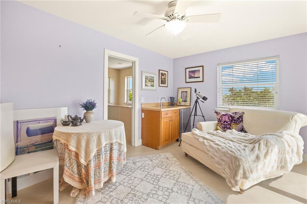 Tucked within the exclusive, gated community of Kinzie Island, this spacious 3-bedroom + den, 3-bathroom home offers a true taste of Sanibel’s Island lifestyle. A stately, palm-lined driveway welcomes you to a quiet cul-de-sac, just across the street from deeded beach access and set along a peaceful canal with a private wooden dock and boat lift—perfect for boating enthusiasts and beach lovers alike. Offered fully furnished, this two-story home is designed for comfort and easy living. The open-concept living and dining area features a charming fireplace and opens to a large, screened porch overlooking the canal—an ideal spot for relaxing or entertaining. The well-appointed kitchen includes a center island with breakfast bar, wine cooler, and ample prep space. Additional highlights include impact-rated windows, three full bathrooms, and a versatile den—ideal as a home office, media room, or extra guest space. Kinzie Island is one of only three gated communities on Sanibel, offering residents a host of amenities: deeded beach access just steps away, clay tennis courts, a clubhouse with lockers, and additional community boat dockage. Located on the East End, it’s just minutes to the Sanibel Causeway for easy on-and-off island access. With more than 26 miles of nearby bike paths, you’re perfectly positioned to explore the best of Sanibel—by land or sea.