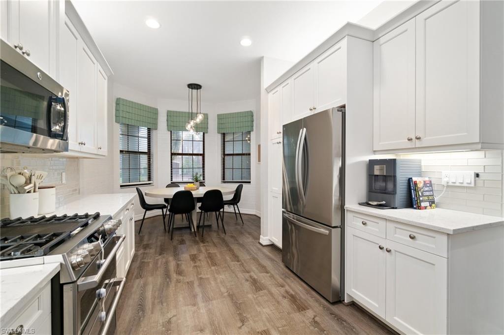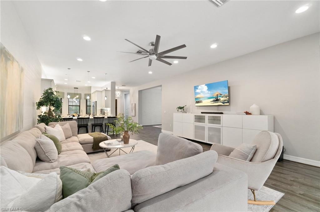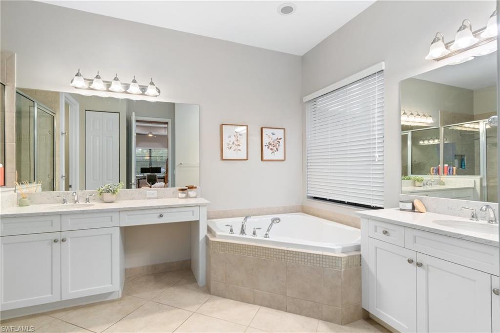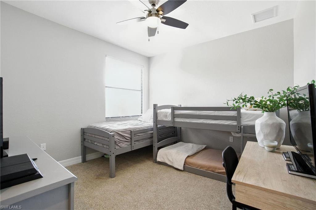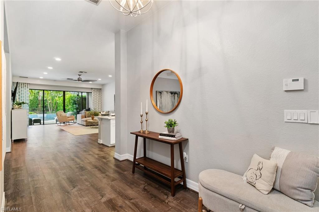 This stunning, move-in-ready home offers the perfect blend of style, function, and comfort. Located on a quiet cul-de-sac, the home welcomes you with an open-concept floor plan featuring luxury vinyl plank flooring on the main level and a chef’s kitchen complete with granite countertops, a Café Series gas stove and double oven, upgraded backsplash, and a reverse osmosis system. The first-floor primary suite provides an elegant retreat with two custom walk-in closets and a spa-like bath featuring a rain-head shower. Upstairs, a versatile loft-style living area and three additional bedrooms—including one en suite—offer generous space for guests, family, a home office, or hobbies. The home is ideally located just a short walk to the community center and near the gate for convenient access. Toward the back of the property, the outdoor living experience is elevated by a large travertine deck and spa-plunge pool with a waterfall feature. This highly versatile water feature can be enjoyed as a refreshing plunge pool or heated to function as a spa, comfortably seating up to 7 people. Its thoughtful, space-saving design preserves room for outdoor dining, a firepit entertainment area, and an oversized fenced yard—a rare advantage ideal for pets, play, and gatherings. With thoughtful upgrades, flexible living spaces, and an outdoor retreat designed for both relaxation and entertaining, this home truly stands out. Stonecreek is one of North Naples’ most desirable guard-gated communities, located minutes from world-class beaches, top-rated schools, and favorites like Seed to Table. Residents enjoy resort-style amenities including a clubhouse with an indoor sports court, fully equipped gym, beach volleyball, tennis, pickleball, lap and resort-style pools, a splash pad, shaded playground, and community events for all ages. Some photos include reality renovation/reality staging. This property also includes interior design services, making furnishing—just as shown—easy for your buyer.