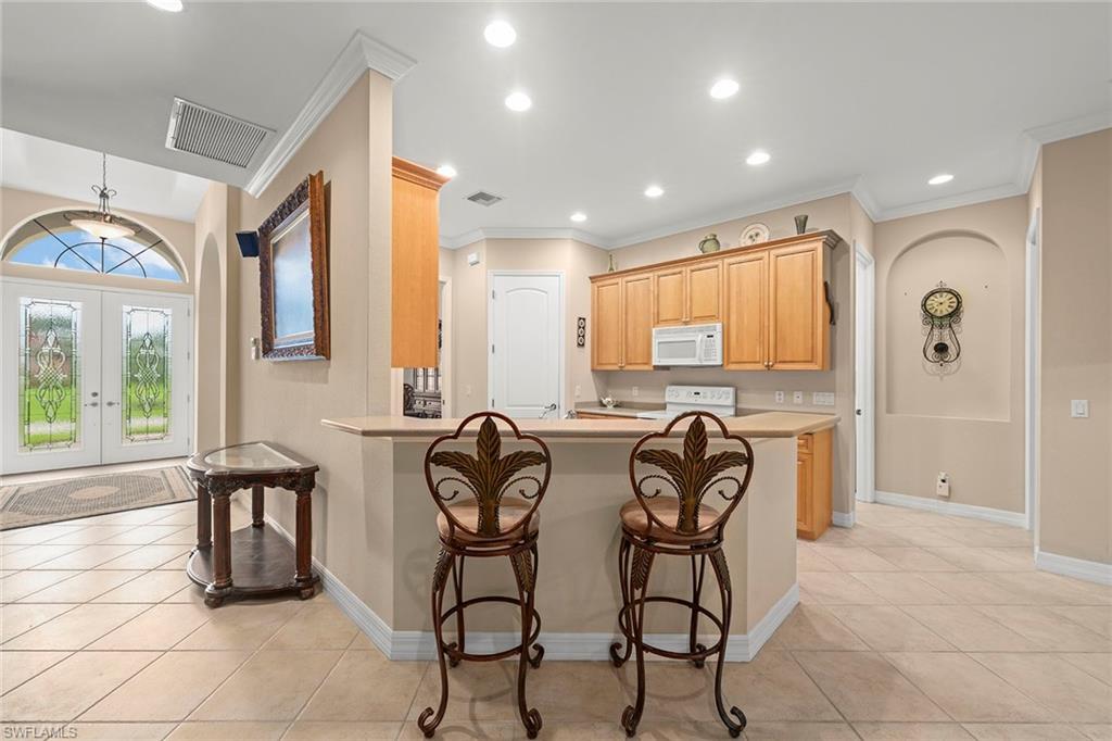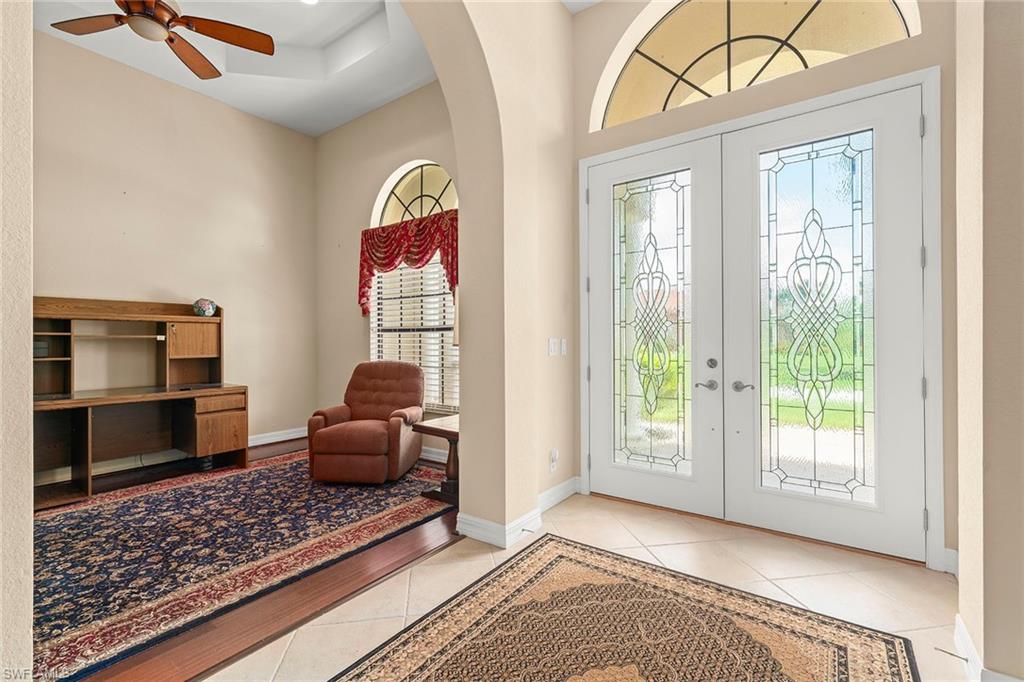On a full acre in an ideal Bonita Springs location, this four-bedroom, three-bath residence includes a dedicated den and offers privacy and proximity to the area’s main attractions. A split-bedroom layout ensures comfort and seclusion for family or guests, with seamless access to the pool and covered lanai—ideal for indoor-outdoor living. The outdoor area features a heated pool, a large paved driveway, and a four-car garage with extended space for storage or a workshop. Storm protection has been thoughtfully addressed with impact-resistant windows in the front, electric and accordion shutters, and a whole-house generator. A gas line services the generator and pool heater. A new roof was installed in 2023, a newer air-conditioning unit and a sprinkler system, adding peace of mind for future owners. This property balances the rare combination of acreage, resilience and accessibility, creating a compelling opportunity for those seeking flexibility and long-term value.