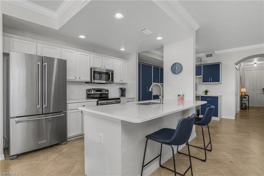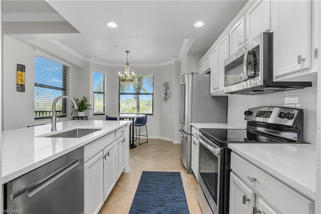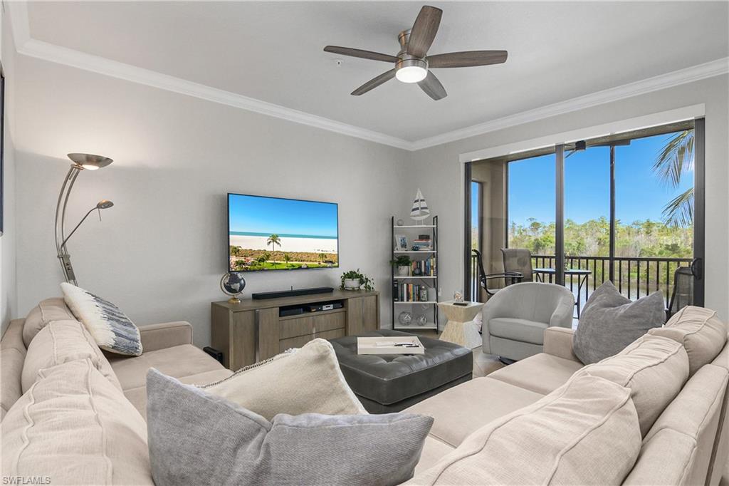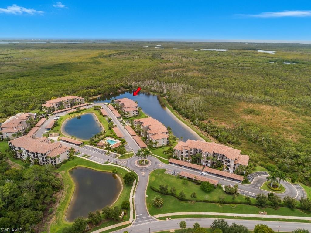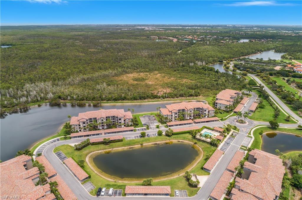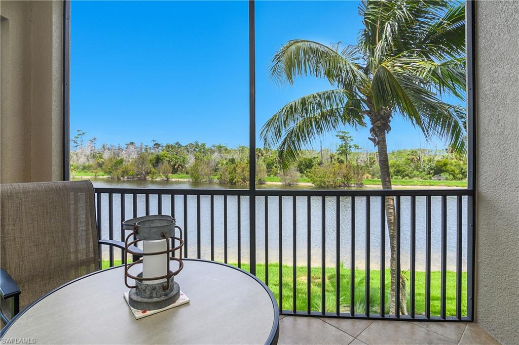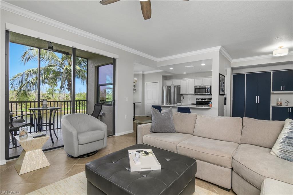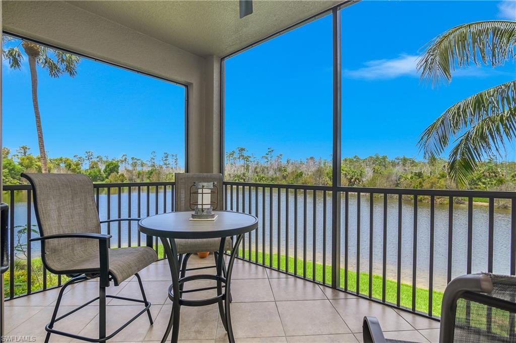Welcome to your private paradise oasis in Treviso Bay! This beautifully upgraded and turnkey Bellini model offers IMMEDIATE TPC GOLF membership. The west-facing, screened-in lanai is located on the lake bend with unmatched views of the lake, preserve and Florida sunsets. Immersed in natures beauty, this is truly a bird watchers paradise! Find exceptional enhancements throughout the interior of this redefined home, including a custom California Closets office and storage system with undercounter lighting, sliding door electric sunshade in the living room, tiled lanai floor, a frameless glass shower door in the primary bath, and plush carpet in the primary bedroom. The kitchen boasts white and bright kitchen cabinets and quartz counters, upgraded backsplash, and a KitchenAid French door refrigerator and Whirlpool dishwasher, both with transferable warranties. Additional features include improved lighting and fans throughout, a Bluetooth thermostat, Yamaha sound bar with subwoofer, electric sunscreen on the living room slider, and tiled lanai. Recent mechanical upgrades include a 2024 water heater and water filtration system, updated plumbing shutoffs, braided lines with new metal fittings, and a building-wide roof replacement (assessment already paid in full). The building was repainted in 2023, including the lanai. Offered turnkey furnished, this condo is the perfect blend of comfort, style, and resort-style living. Treviso Bay offers a truly unparalleled lifestyle with resort-style amenities including a private TPC golf course, tennis and pickleball courts, bocce courts, a half-court basketball court, state-of-the-art fitness center and aerobics room, luxurious spa, and a resort-style pool with a poolside restaurant and bar. The elegant clubhouse features fine and casual dining, social events, an activities/game room, library, business center, and golf pro-shop, Arthur's snack shop, and large locker room lounges. Located just minutes from Downtown Naples and the Gulf beaches, Treviso Bay combines the best of golf, leisure, and Florida living in a vibrant gated community.