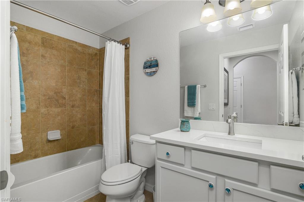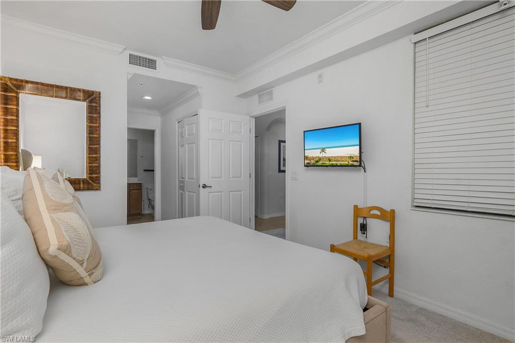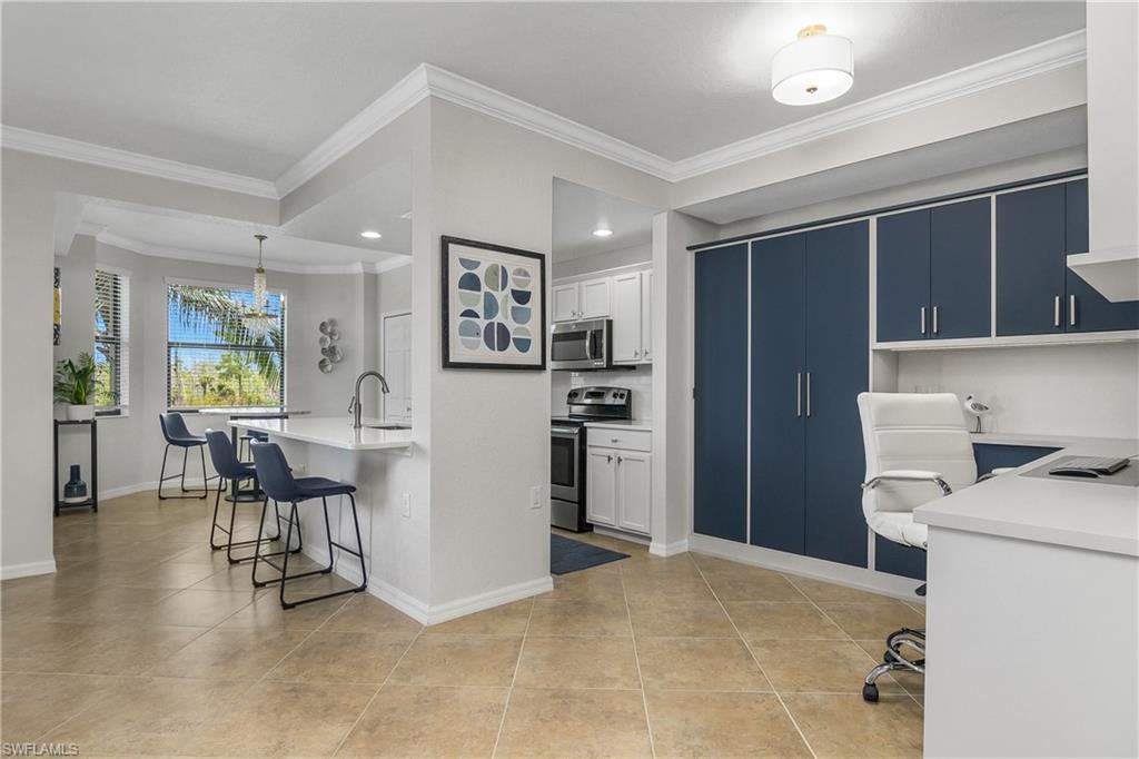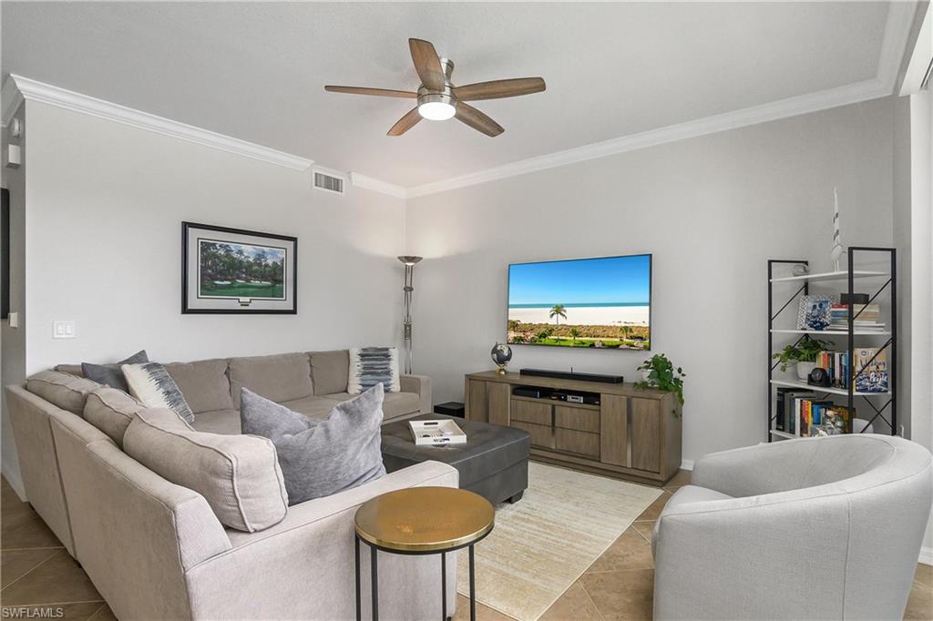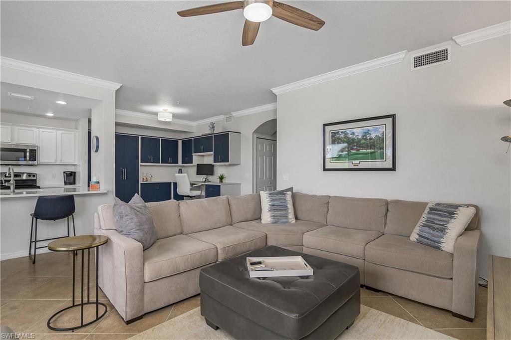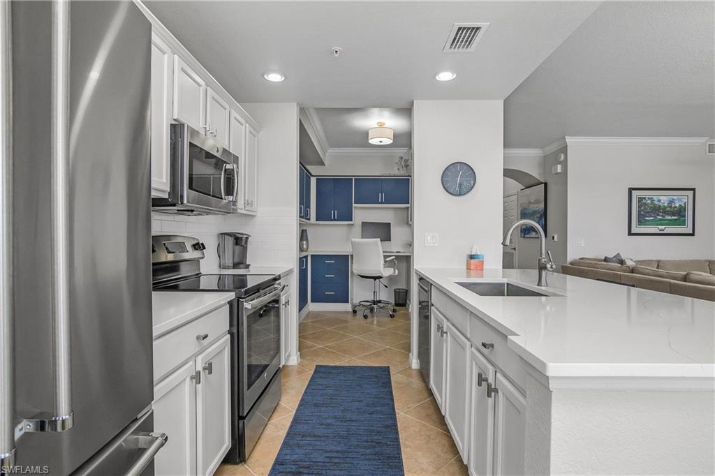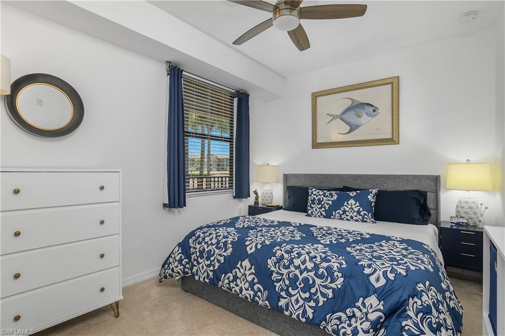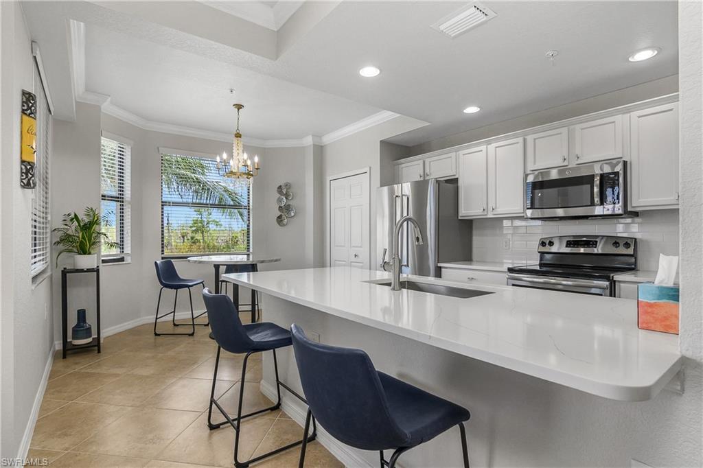 Welcome to your private paradise oasis in Treviso Bay! This beautifully upgraded and turnkey Bellini model offers IMMEDIATE TPC GOLF membership. The west-facing, screened-in lanai is located on the lake bend with unmatched views of the lake, preserve and Florida sunsets. Immersed in natures beauty, this is truly a bird watchers paradise! Find exceptional enhancements throughout the interior of this redefined home, including a custom California Closets office and storage system with undercounter lighting, sliding door electric sunshade in the living room, tiled lanai floor, a frameless glass shower door in the primary bath, and plush carpet in the primary bedroom. The kitchen boasts white and bright kitchen cabinets and quartz counters, upgraded backsplash, and a KitchenAid French door refrigerator and Whirlpool dishwasher, both with transferable warranties. Additional features include improved lighting and fans throughout, a Bluetooth thermostat, Yamaha sound bar with subwoofer, electric sunscreen on the living room slider, and tiled lanai. Recent mechanical upgrades include a 2024 water heater and water filtration system, updated plumbing shutoffs, braided lines with new metal fittings, and a building-wide roof replacement (assessment already paid in full). The building was repainted in 2023, including the lanai. Offered turnkey furnished, this condo is the perfect blend of comfort, style, and resort-style living. Treviso Bay offers a truly unparalleled lifestyle with resort-style amenities including a private TPC golf course, tennis and pickleball courts, bocce courts, a half-court basketball court, state-of-the-art fitness center and aerobics room, luxurious spa, and a resort-style pool with a poolside restaurant and bar. The elegant clubhouse features fine and casual dining, social events, an activities/game room, library, business center, and golf pro-shop, Arthur's snack shop, and large locker room lounges. Located just minutes from Downtown Naples and the Gulf beaches, Treviso Bay combines the best of golf, leisure, and Florida living in a vibrant gated community.