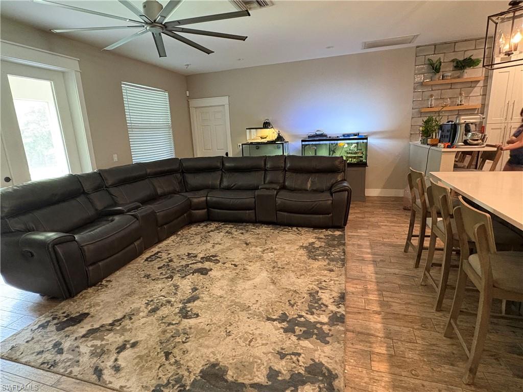 Big Beautiful 5 bedroom & den/ formal dinning, 3 bath ,3 car Garage. New installed Tesla car charger. long paver driveway lots of parking. On 1.59 acres. OPEN-CONCEPT LAYOUT IS PERCFECT. Best kitchen with island seating , Bar seating, Lots of storage, Beverage refrig. Newer updated Kitchen , Remolded whole master bath in 2024. New a/c 2023, New water system reverse osmosis installed 2023. New black chainling fence & gate 2023. New washer & dryer 2023. Fully irrigated lawn . 20 x 40 brick paver pad for parking R.V with 100 amp service electicity, The rear 1/4 acre fenced barn yard area has a three sided manger barn , includes chicken coop. Wonderful location a few blocks over to the New Road vanderbilt Extension under way to be compete soon . New screens on back lani .