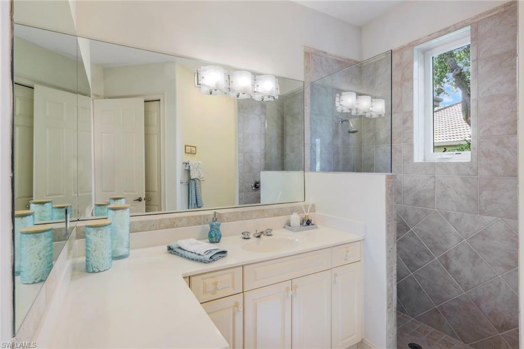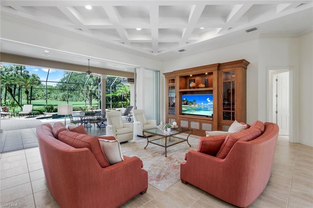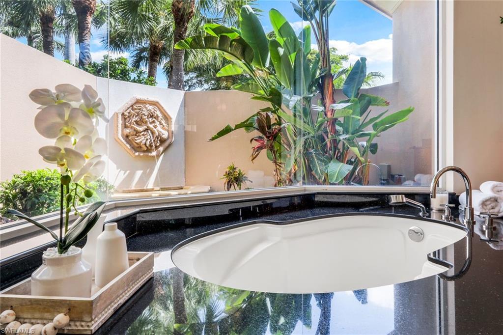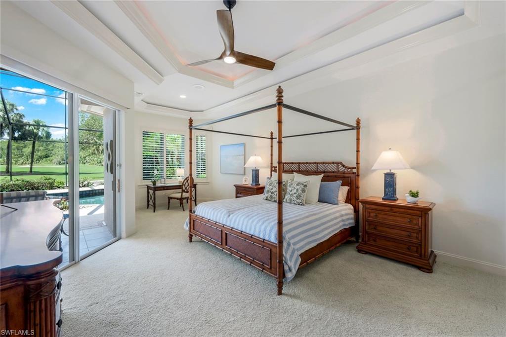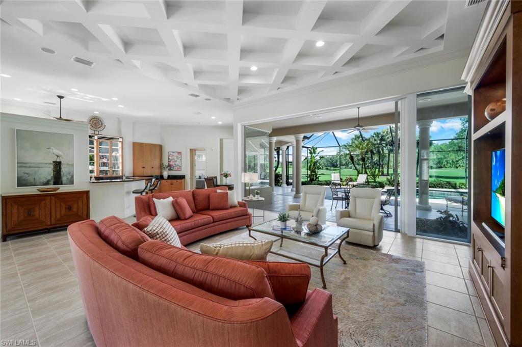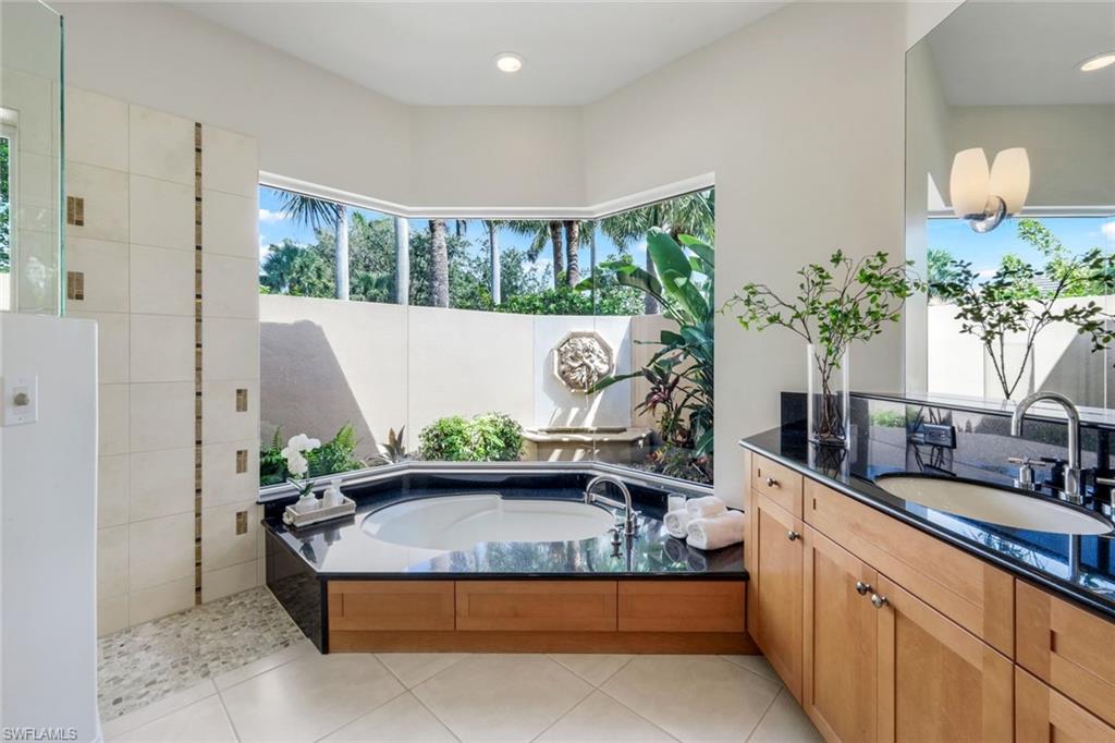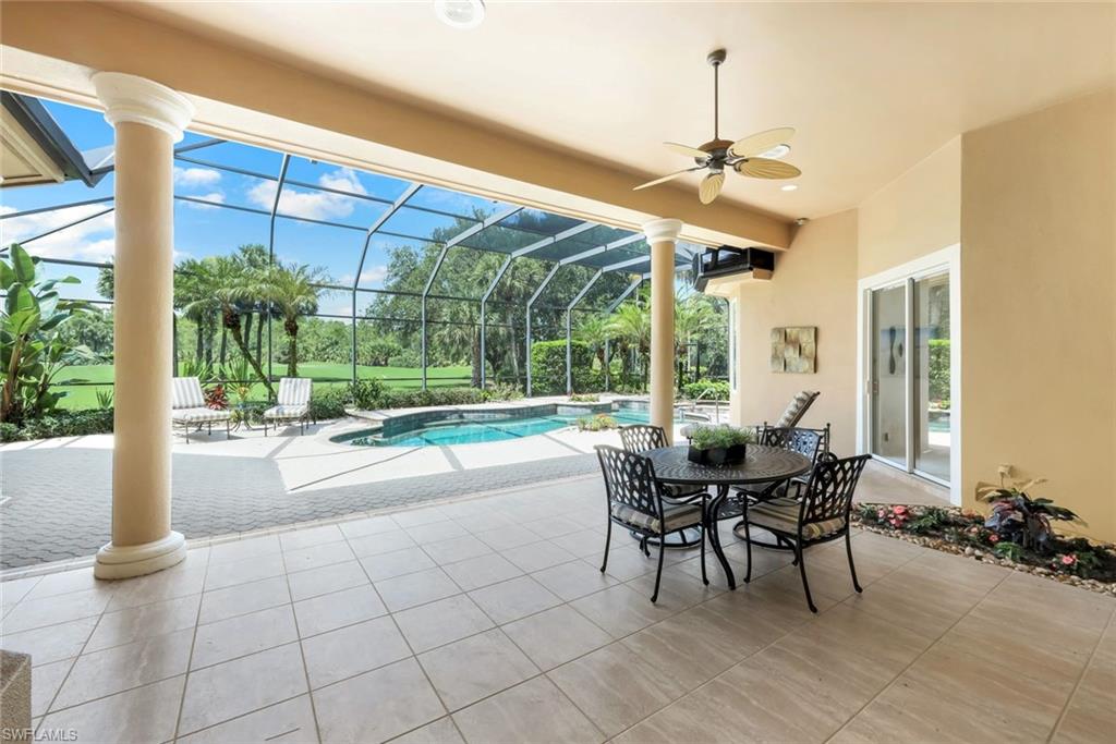 Immerse yourself in the ultimate expression of luxury living at this extraordinary estate home, perfectly nestled within the prestigious gated community of Shadow Wood at The Brooks. The unique great room design is a standout feature in Shadow Wood, creating a seamless flow between the kitchen, breakfast area, casual dining space, and expansive great room. This thoughtful layout fosters an inviting atmosphere where family and friends can gather and create lasting memories together. This magnificent home boasts two generously sized guest suites. One guest suite opens to a charming private courtyard, ideal for enjoying fresh air and sunshine, while the second provides direct access to the stunning lanai, where you can take a refreshing morning swim in the sparkling pool. The oversized homesite offers an incredible vantage point with tranquil views of the 17th hole on the South Golf Course, making every moment spent outdoors feel like a retreat. Step outside onto the expansive lanai, where you can relax in the luxurious pool and rejuvenate in the spa, surrounded by the peaceful sounds of nature. The beautifully landscaped private courtyards adjacent to the master bathroom provide an oasis of serenity. At the same time, the kitchen showcases a breathtaking wall of windows that frames picturesque views of lush gardens and a soothing water fountain. This recently painted home is adorned with elegant plantation shutters, stylish ceramic tile floors, and impressive 10-foot sliding glass doors that invite abundant natural light. The coffered and tray ceilings add a touch of sophistication. Recent updates include a brand-new roof installed in 2024, a modernized water heater, and two state-of-the-art HVAC systems, ensuring comfort and efficiency year-round. For those seeking an active lifestyle, optional membership provides access to three championship golf courses, a luxurious beach club, exquisite dining options, tennis and pickleball courts, a well-equipped fitness center, scenic walking trails, vibrant social activities, and a stunning resort-style pool. The prime location, just moments away from Coconut Point Mall, medical facilities, and the I-75 corridor, enhances the property's desirability and convenience. This exceptional home truly embodies a rare combination of elegance, sophistication, and tranquil beauty, offering a lifestyle that is simply unparalleled.