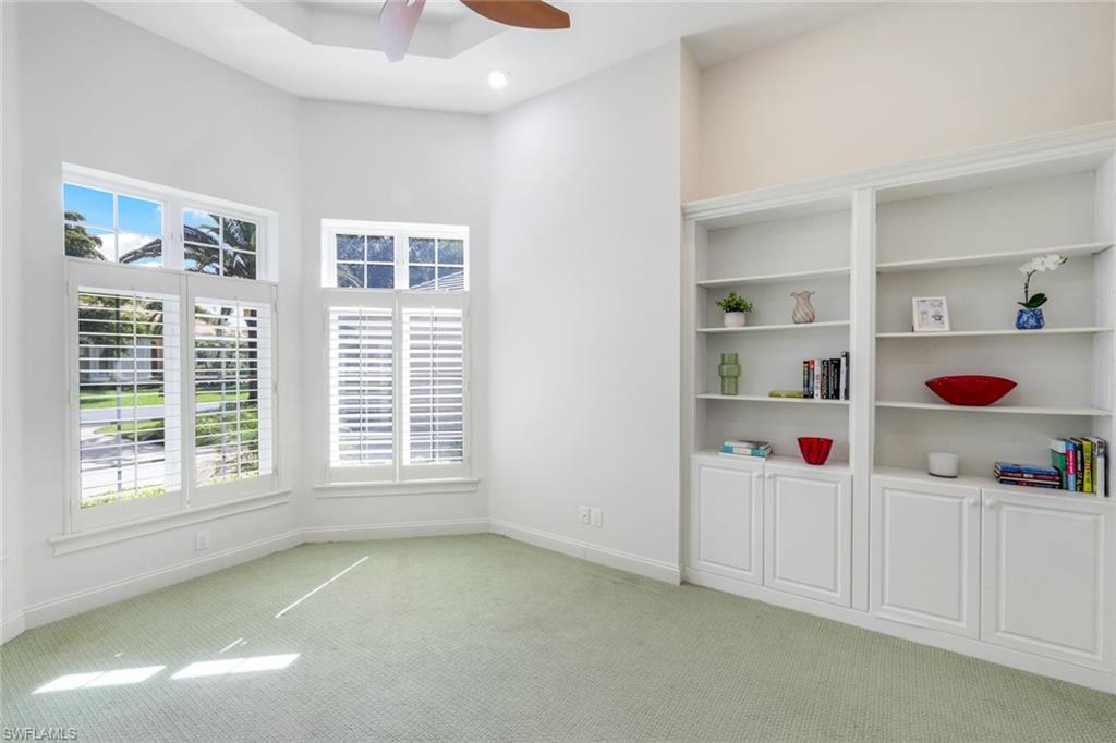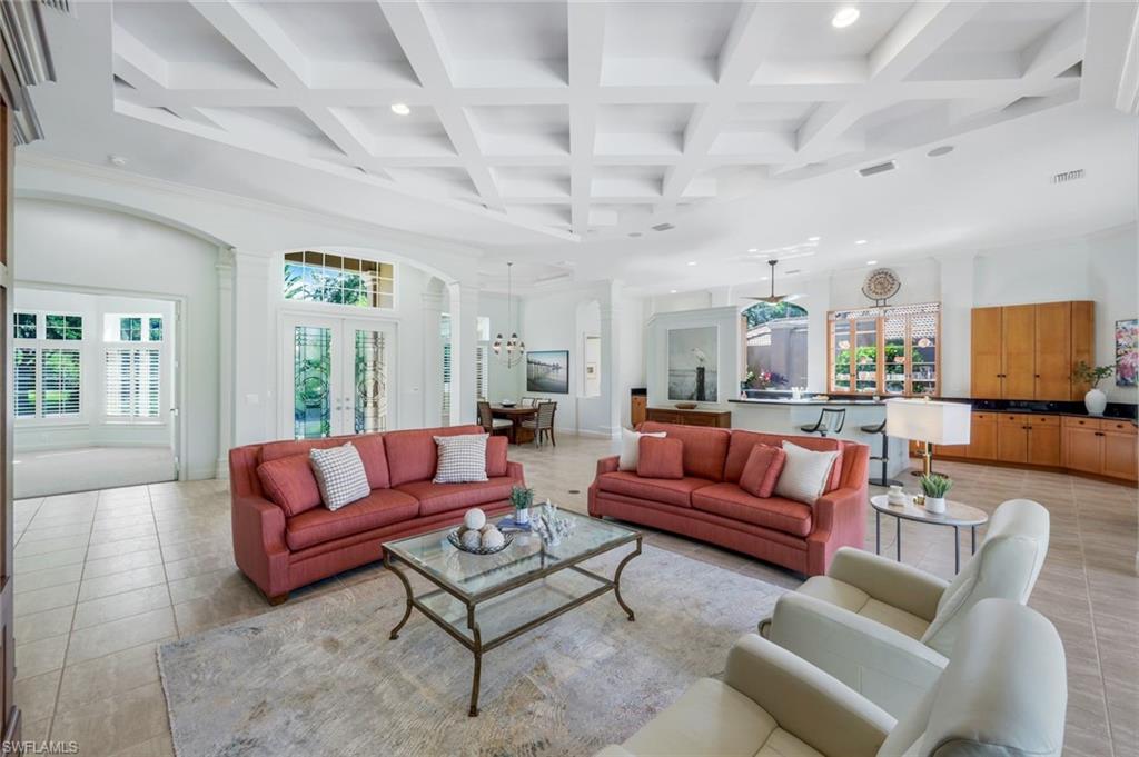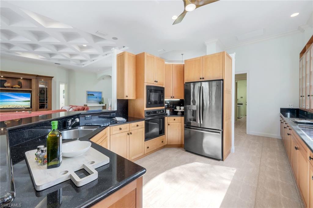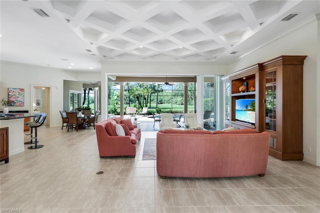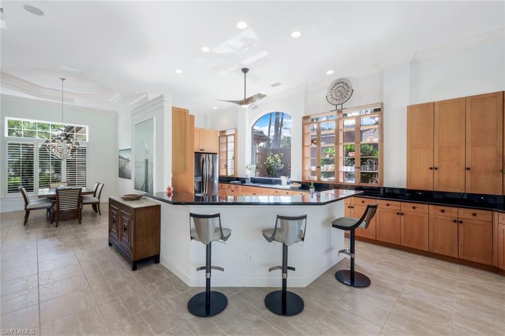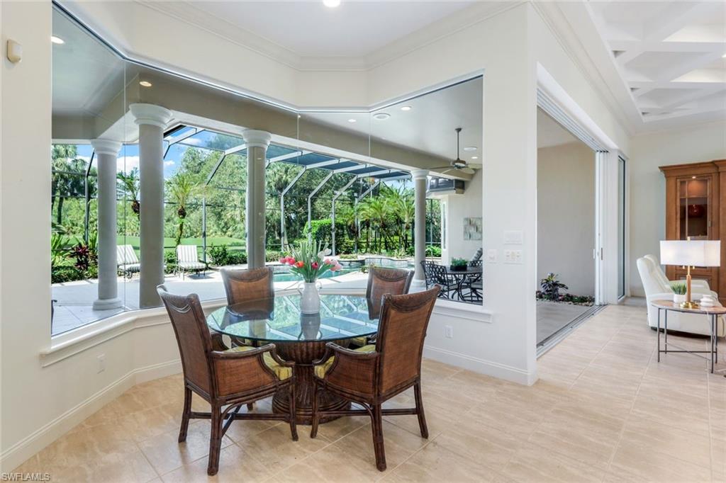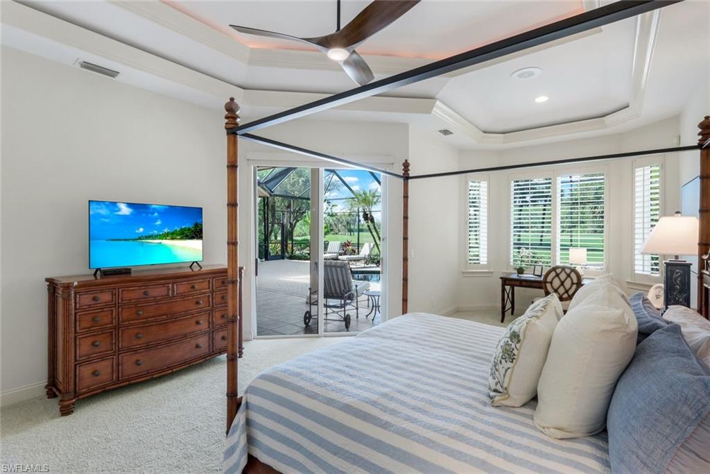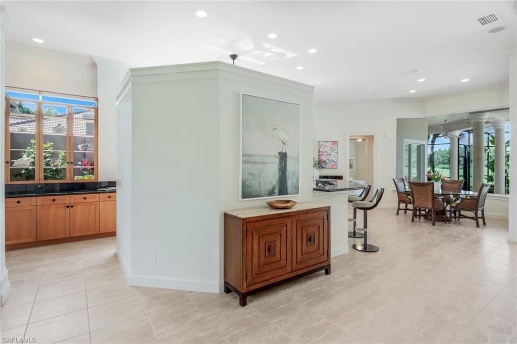Immerse yourself in the ultimate expression of luxury living at this extraordinary estate home, perfectly nestled within the prestigious gated community of Shadow Wood at The Brooks. The unique great room design is a standout feature in Shadow Wood, creating a seamless flow between the kitchen, breakfast area, casual dining space, and expansive great room. This thoughtful layout fosters an inviting atmosphere where family and friends can gather and create lasting memories together. This magnificent home boasts two generously sized guest suites. One guest suite opens to a charming private courtyard, ideal for enjoying fresh air and sunshine, while the second provides direct access to the stunning lanai, where you can take a refreshing morning swim in the sparkling pool. The oversized homesite offers an incredible vantage point with tranquil views of the 17th hole on the South Golf Course, making every moment spent outdoors feel like a retreat. Step outside onto the expansive lanai, where you can relax in the luxurious pool and rejuvenate in the spa, surrounded by the peaceful sounds of nature. The beautifully landscaped private courtyards adjacent to the master bathroom provide an oasis of serenity. At the same time, the kitchen showcases a breathtaking wall of windows that frames picturesque views of lush gardens and a soothing water fountain. This recently painted home is adorned with elegant plantation shutters, stylish ceramic tile floors, and impressive 10-foot sliding glass doors that invite abundant natural light. The coffered and tray ceilings add a touch of sophistication. Recent updates include a brand-new roof installed in 2024, a modernized water heater, and two state-of-the-art HVAC systems, ensuring comfort and efficiency year-round. For those seeking an active lifestyle, optional membership provides access to three championship golf courses, a luxurious beach club, exquisite dining options, tennis and pickleball courts, a well-equipped fitness center, scenic walking trails, vibrant social activities, and a stunning resort-style pool. The prime location, just moments away from Coconut Point Mall, medical facilities, and the I-75 corridor, enhances the property's desirability and convenience. This exceptional home truly embodies a rare combination of elegance, sophistication, and tranquil beauty, offering a lifestyle that is simply unparalleled.