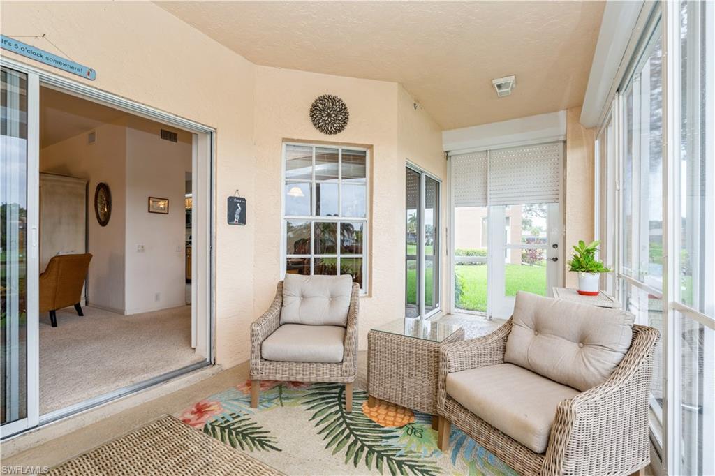 SELLER WANTS IT SOLD! Bring an offer today — this is your opportunity to own the best value in bundled golf living in Southwest Florida! Welcome to Worthington Country Club, where comfort, convenience, and lifestyle come together. This first-floor Canterbury-model carriage home offers 2 bedrooms + den, 2 baths, and 1,522 sq. ft. of meticulously maintained living space with peaceful lake views and natural Florida wildlife — think egrets, herons, and turtles right outside your lanai. The kitchen is a chef’s delight, featuring granite countertops, custom tile backsplash, stainless-steel appliances, and elegant cabinetry. Tile flooring throughout the main living areas combines style with durability, while plush carpeting softens the den and guest bedroom. A built-in cabinet in the den adds both charm and functionality. Relax year-round on your enclosed lanai with electric hurricane shutters and sliding Lucite doors — ideal for all-season enjoyment. BONUS VALUE: This home includes a golf cart with a brand-new battery, so you can start enjoying the bundled golf lifestyle the moment you move in. Worthington is a premier bundled golf community offering an 18-hole championship course, resort-style pool, fitness center, tennis, clubhouse dining, and a vibrant social calendar. No CDD fees, and private golf carts are allowed. Ideally located near I-75, RSW Airport, Gulf beaches, Naples, Fort Myers Beach, Coconut Point, and FGCU, this home puts the best of Southwest Florida within easy reach. Motivated Seller – Bring All Offers! Whether you’re seeking a full-time residence or seasonal getaway, this home delivers exceptional lifestyle and value. Schedule your private showing today — seller is ready to make a deal!