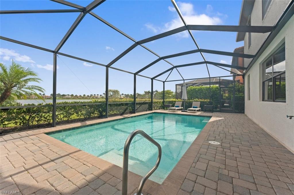 Welcome to this stunning Lennar Monte Carlo model home in the prestigious Artesia community of Naples, offering breathtaking lakefront views and spectacular sunsets. This spacious residence features 5 bedrooms + Bonus room, 3 bathrooms, a 3-car garage, family room, a cozy breakfast nook, dining room, living room, providing the perfect balance of elegance and comfort. The beautiful kitchen flows seamlessly into the living areas, creating an ideal space for entertaining. One bedroom and a full bathroom are conveniently located on the first floor, perfect for guests or multi-generational living. Enjoy the Florida lifestyle from the screened lanai and private pool overlooking the tranquil lake. Artesia is a highly sought-after, upscale community known for its prime location between Downtown Naples and Marco Island, its lush natural surroundings, low HOA fees, and vibrant, friendly atmosphere. Residents enjoy access to luxurious resort-style amenities including a clubhouse, resort-style pool, BBQ picnic areas, fitness center, yoga studio, theater, billiards, bocce courts, pickleball, dog park, hobby room, library, community park, and scenic walking paths with streetlights and underground utilities. Just minutes away, you will discover Naples’ and Marco Island breathtaking white-sand beaches, perfect for swimming, sunbathing, and experiencing some of the most beautiful sunsets on Mexico’s Gulf Coast. With a generous lot size of 0.17 acres, this home offers the perfect combination of privacy, space, and an extraordinary lifestyle close to the finest beaches, shopping, dining, and entertainment Naples has to offer. Revese Osmosis System in the kitchen installed February 2025. Don’t miss the opportunity to make this lakefront gem your next home in Naples!